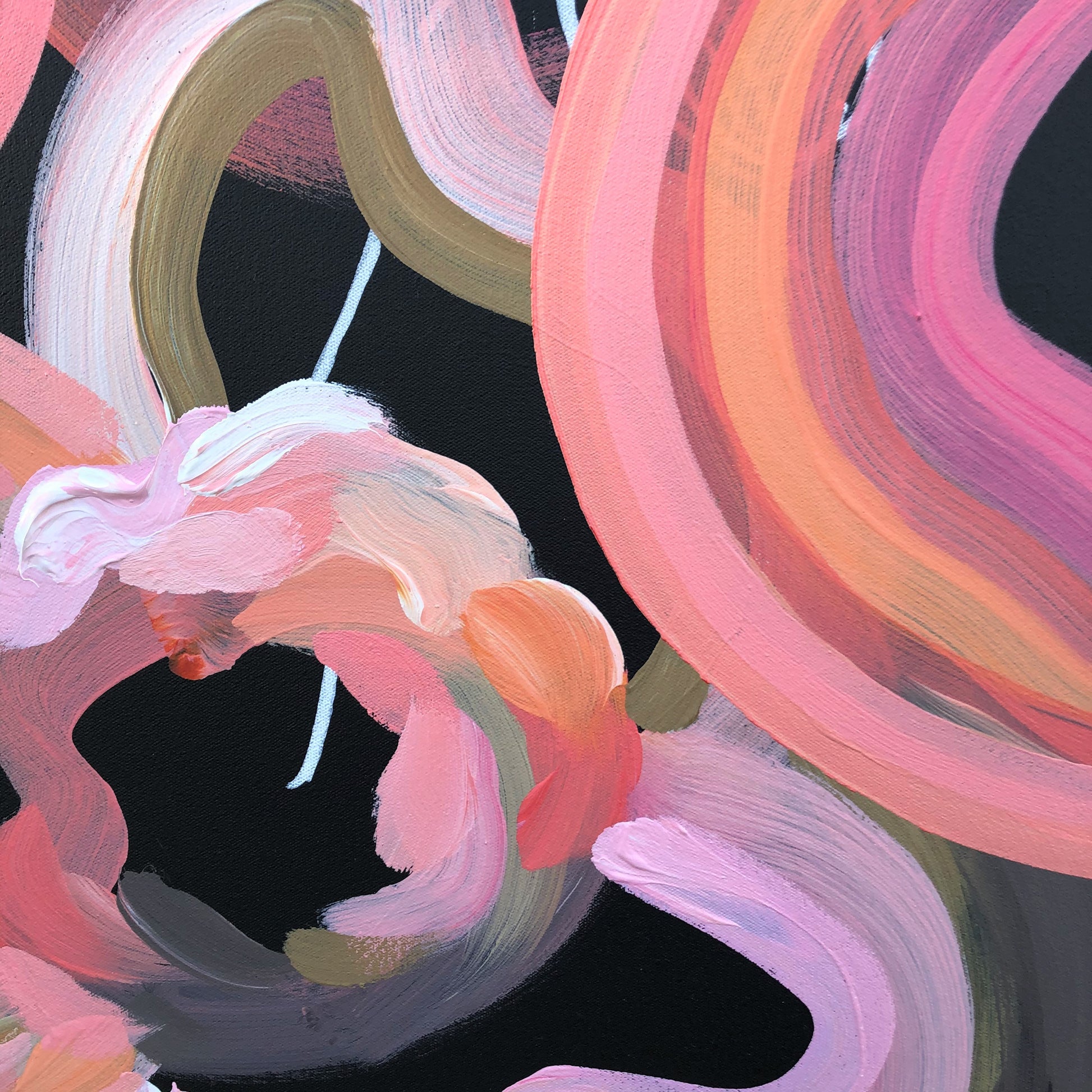 Crazy Love You is a bright, bold and really happy flower abstract with colours inspired by the petals of flowers in my garden along with a splash of warm earth tones. This painting has expressive individual brushstrokes that bring it to life!