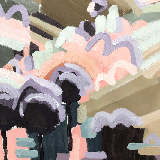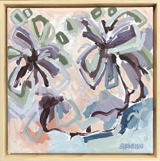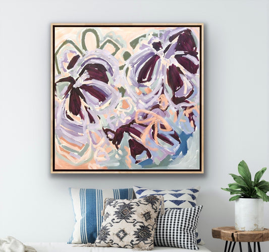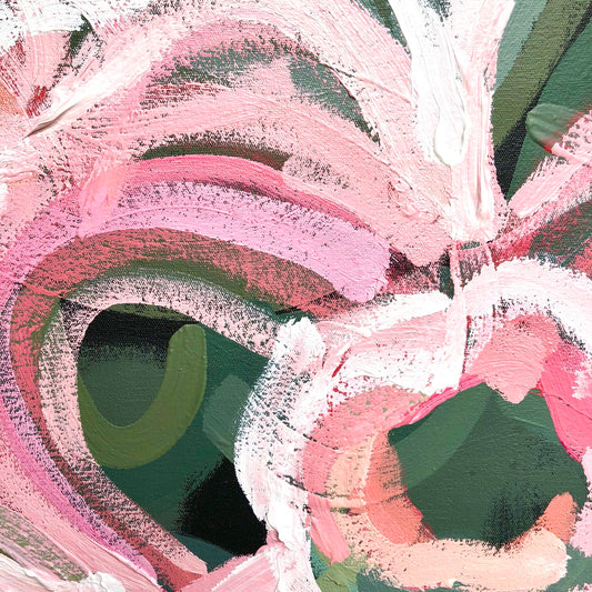Pink Bliss 205x102cm FRAMED in natural timber float style frame.