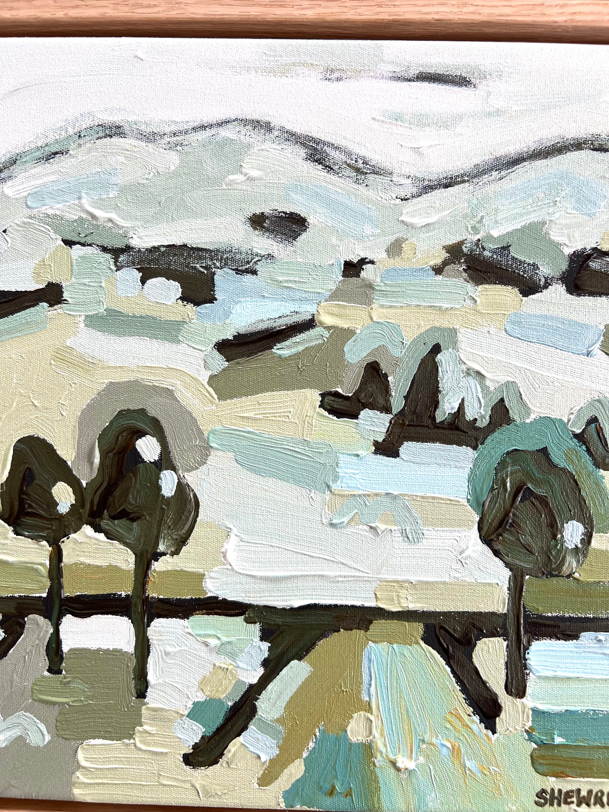 Capturing the warmth of the day and the peaceful feeling of immersing yourself into the countryside this artwork has been painted with expressive brushstrokes in a palette of beautiful lush greens that bring it to life!