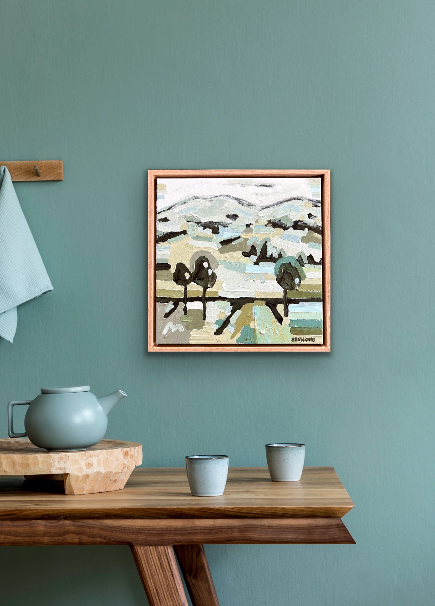 33 x 33 cm Framed in natural timber frame (canvas 30 x 30 cm) Sold