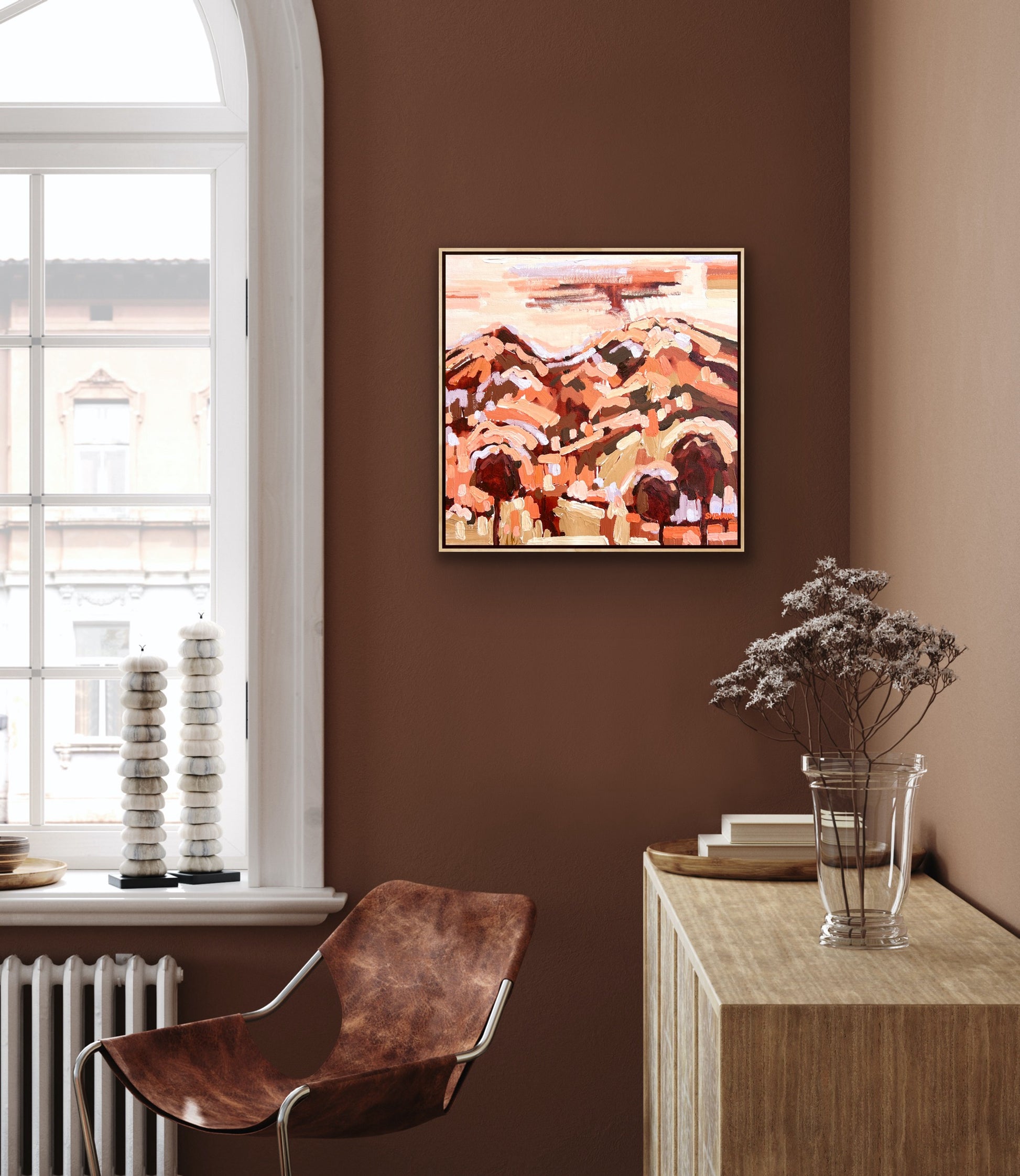48 x 48 cm Framed in natural timber oak float frame (canvas 45 x 45 cm) Sold