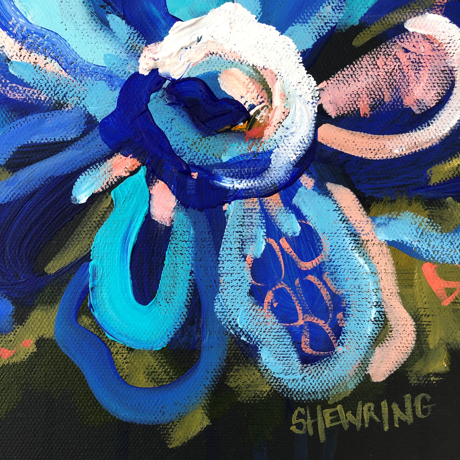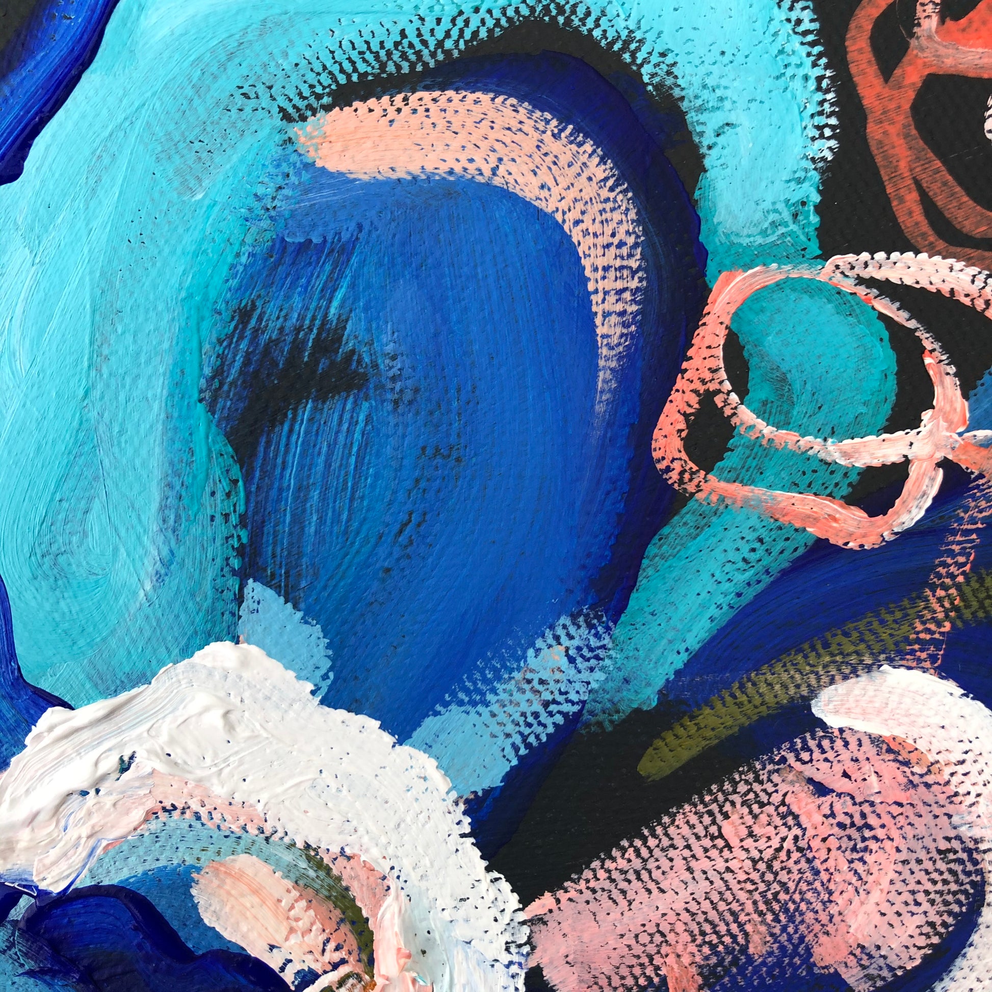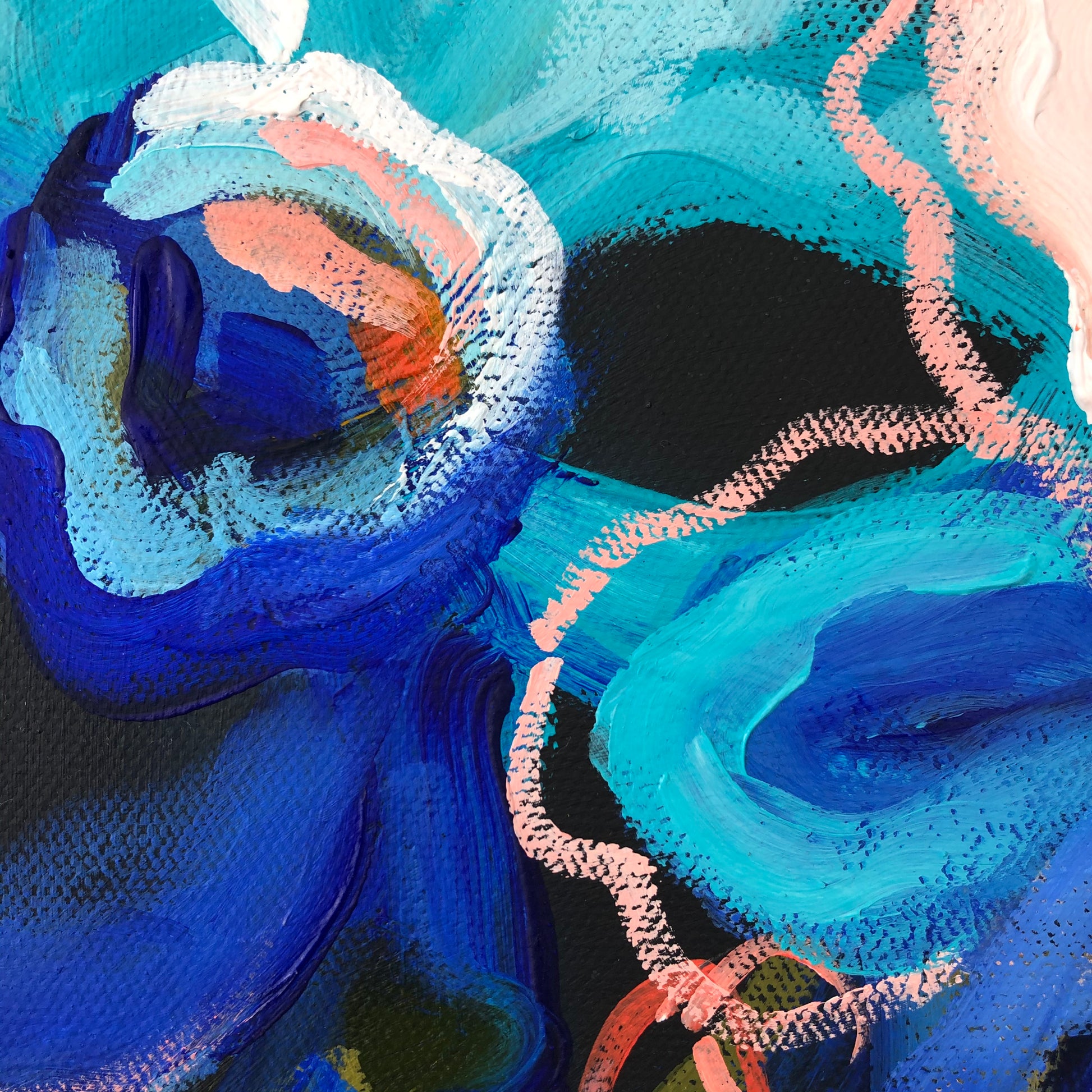 I am obsessed with colour and nature! Outside in the natural environment is where I spend my time sketching the organic forms that surround me. I take them back to my studio where I abstract the beauty and vibrancy of the experience into my paintings. What excites me is creating compositions using a luminous mix of rich colours and texture bringing the outdoors inside feeling happiness from connecting with nature.