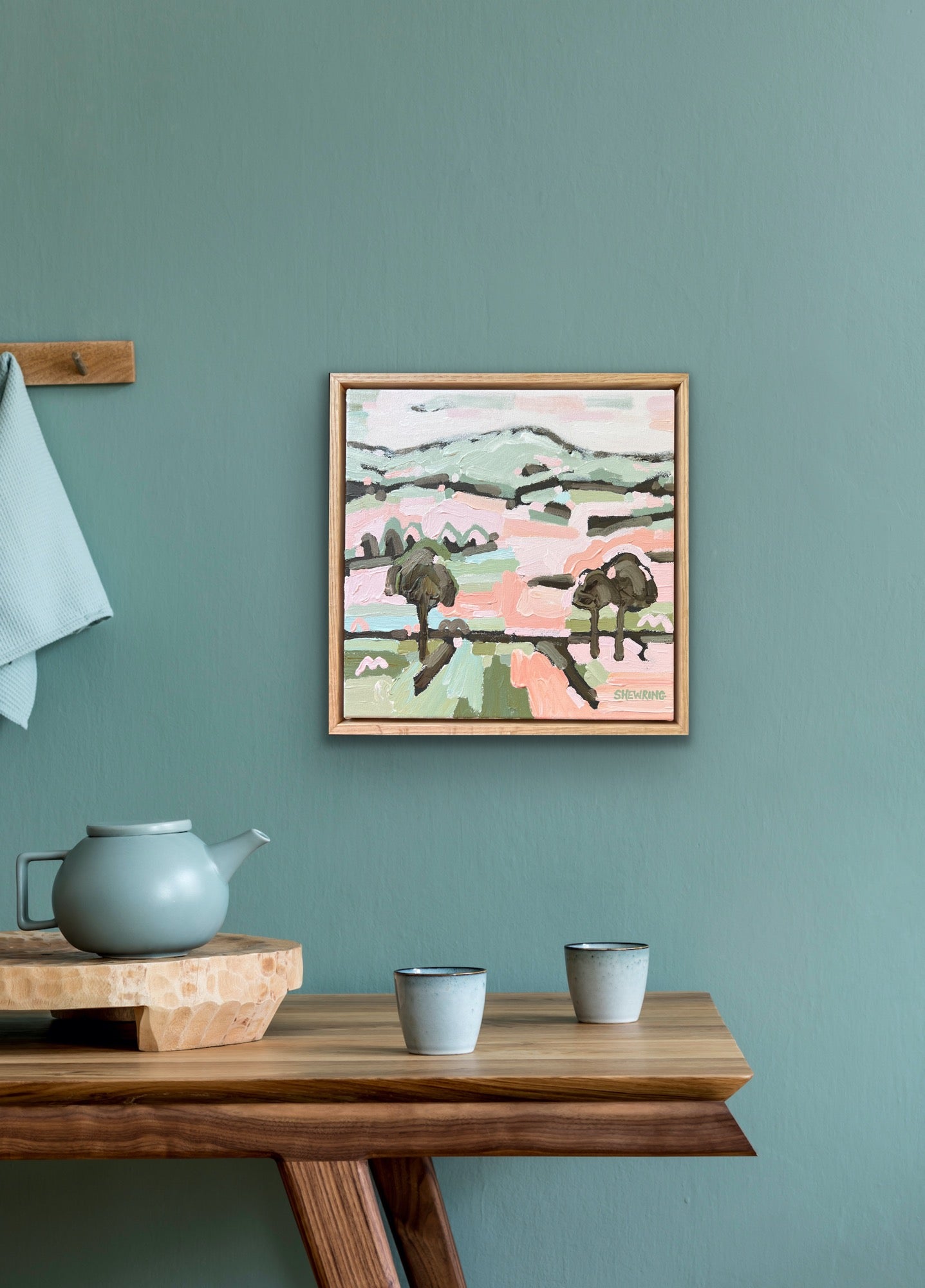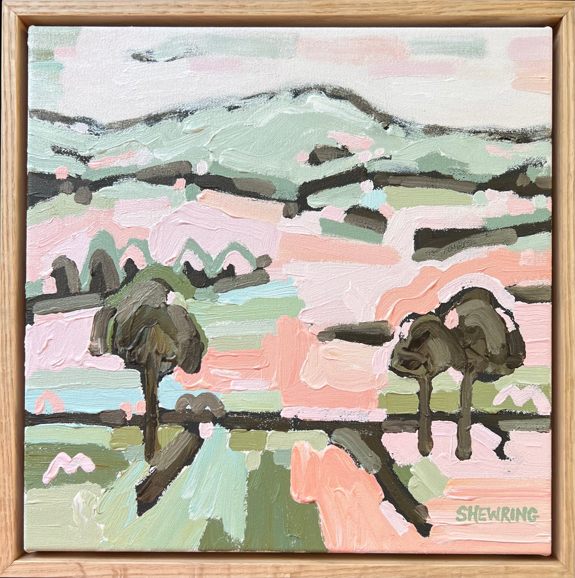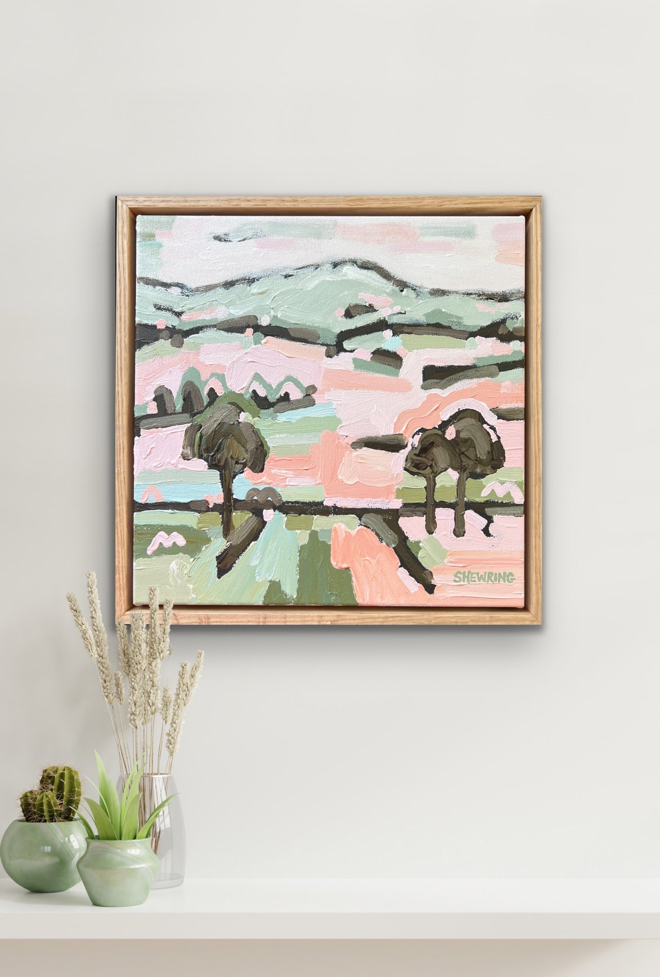 Capturing the warmth of the day and the peaceful feeling of immersing yourself into the countryside this artwork has been painted with expressive brushstrokes in a palette of beautiful lush greens and gorgeous pinks that bring it to life!