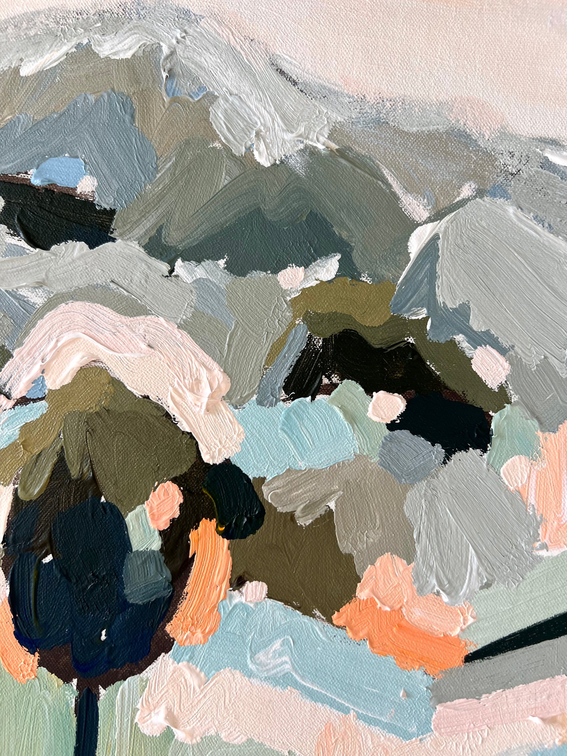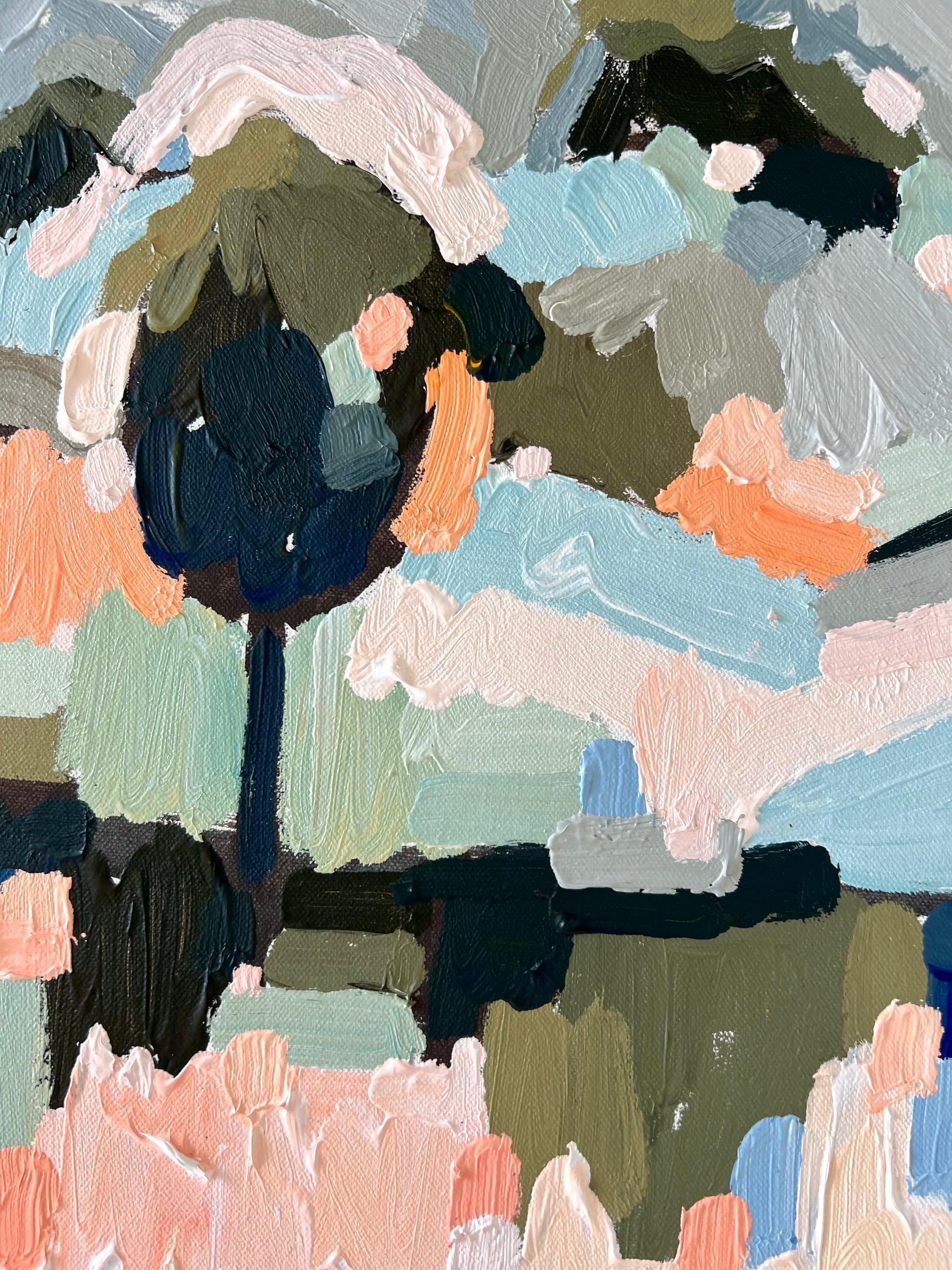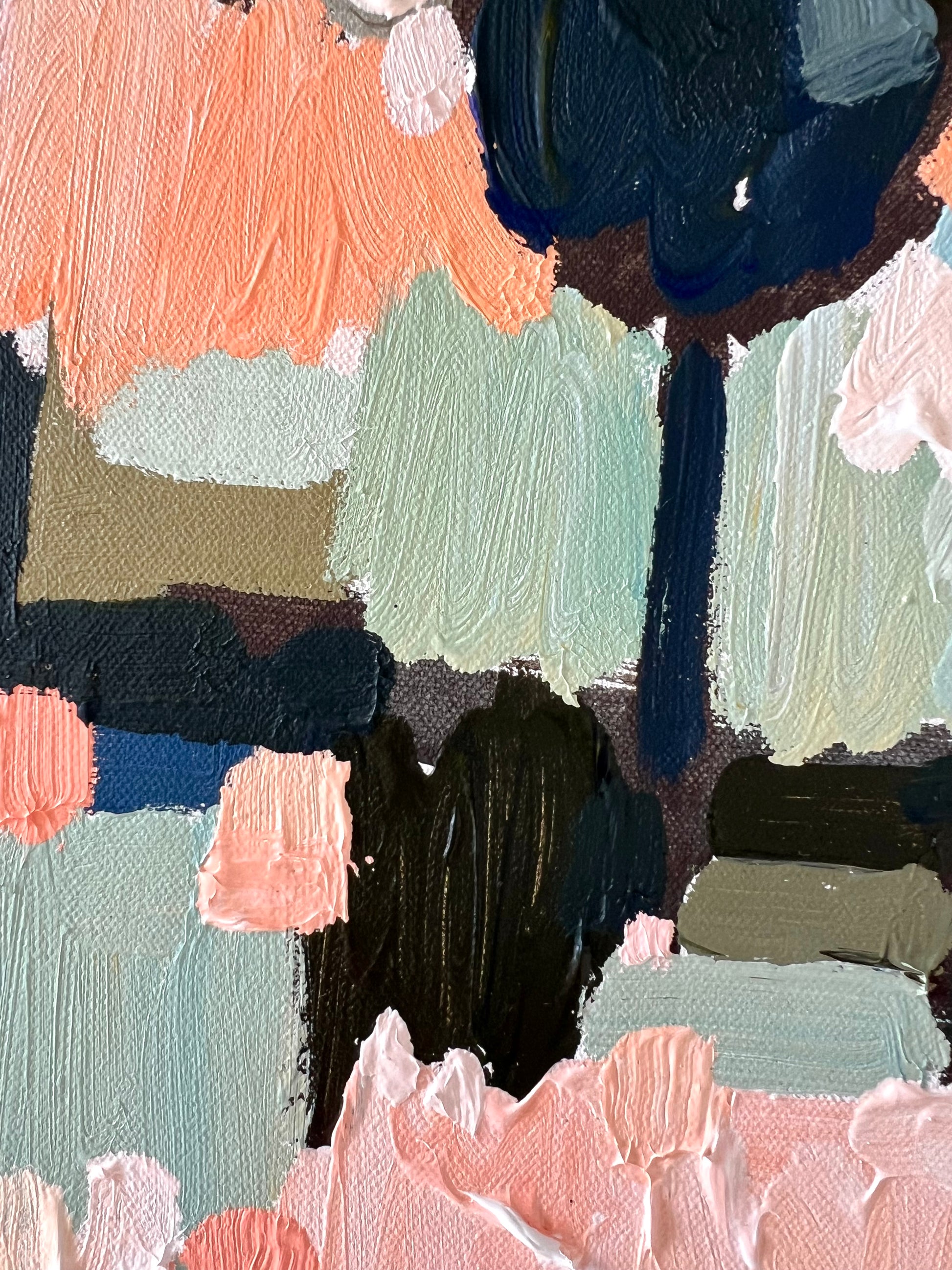 I am obsessed with colour and nature! Outside in the natural environment is where I spend my time sketching the organic forms that surround me. I take them back to my studio where I abstract the beauty and vibrancy of the experience into my paintings. What excites me is creating compositions using a luminous mix of rich colours and texture bringing the outdoors inside feeling happiness from connecting with nature.