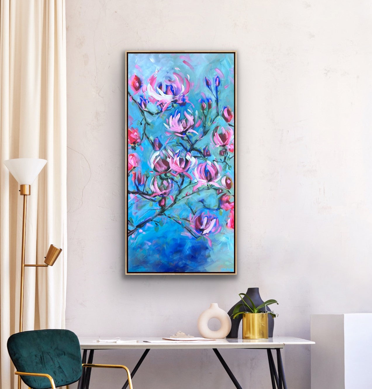 My aim is to create happiness with a lovely fresh floral artwork that makes a statement on your wall and will bring a smile to your face every morning.
