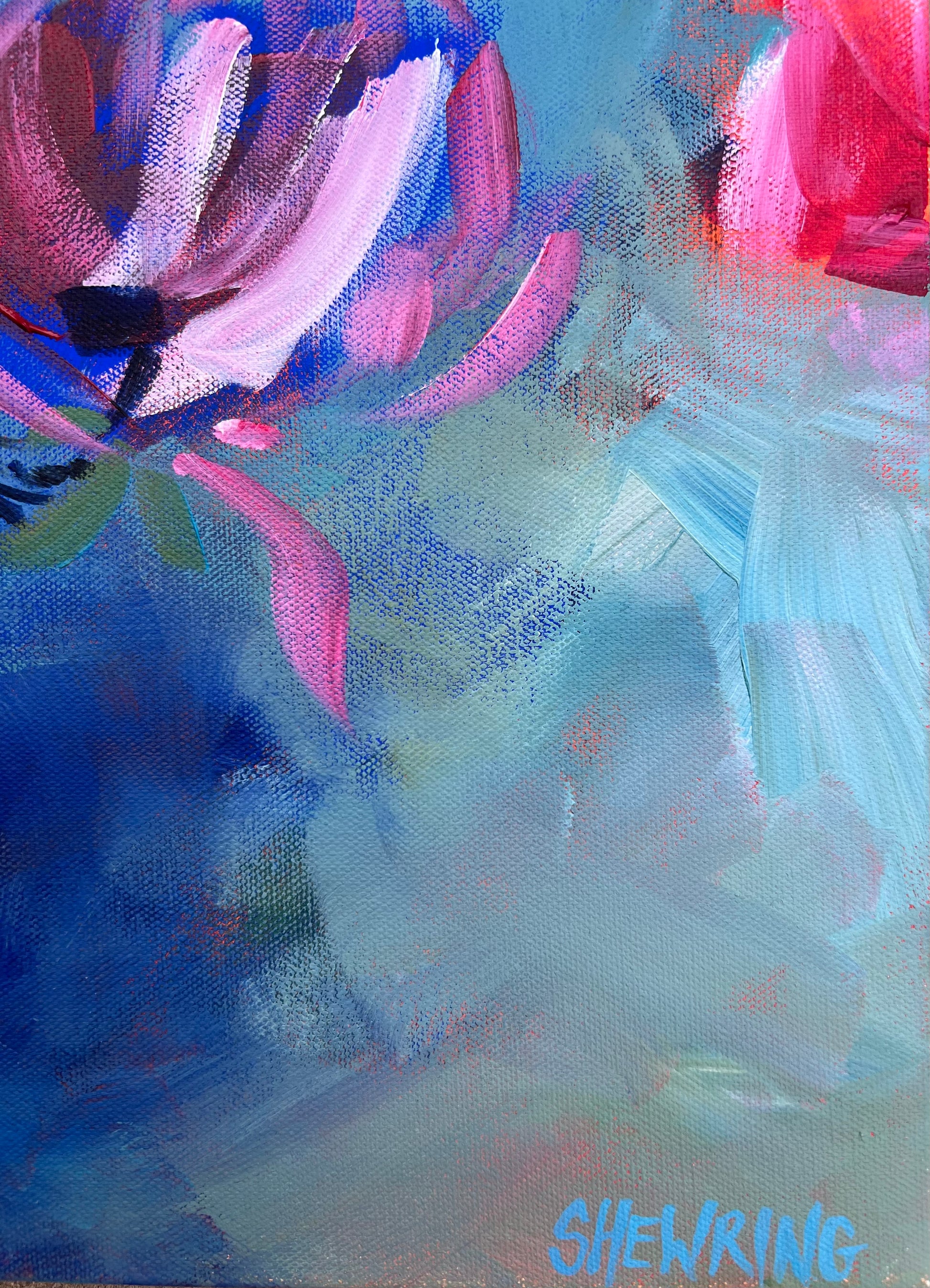 Blue Horizons is a beautifully textured flower abstract. This painting has expressive individual brushstrokes that bring it to life!