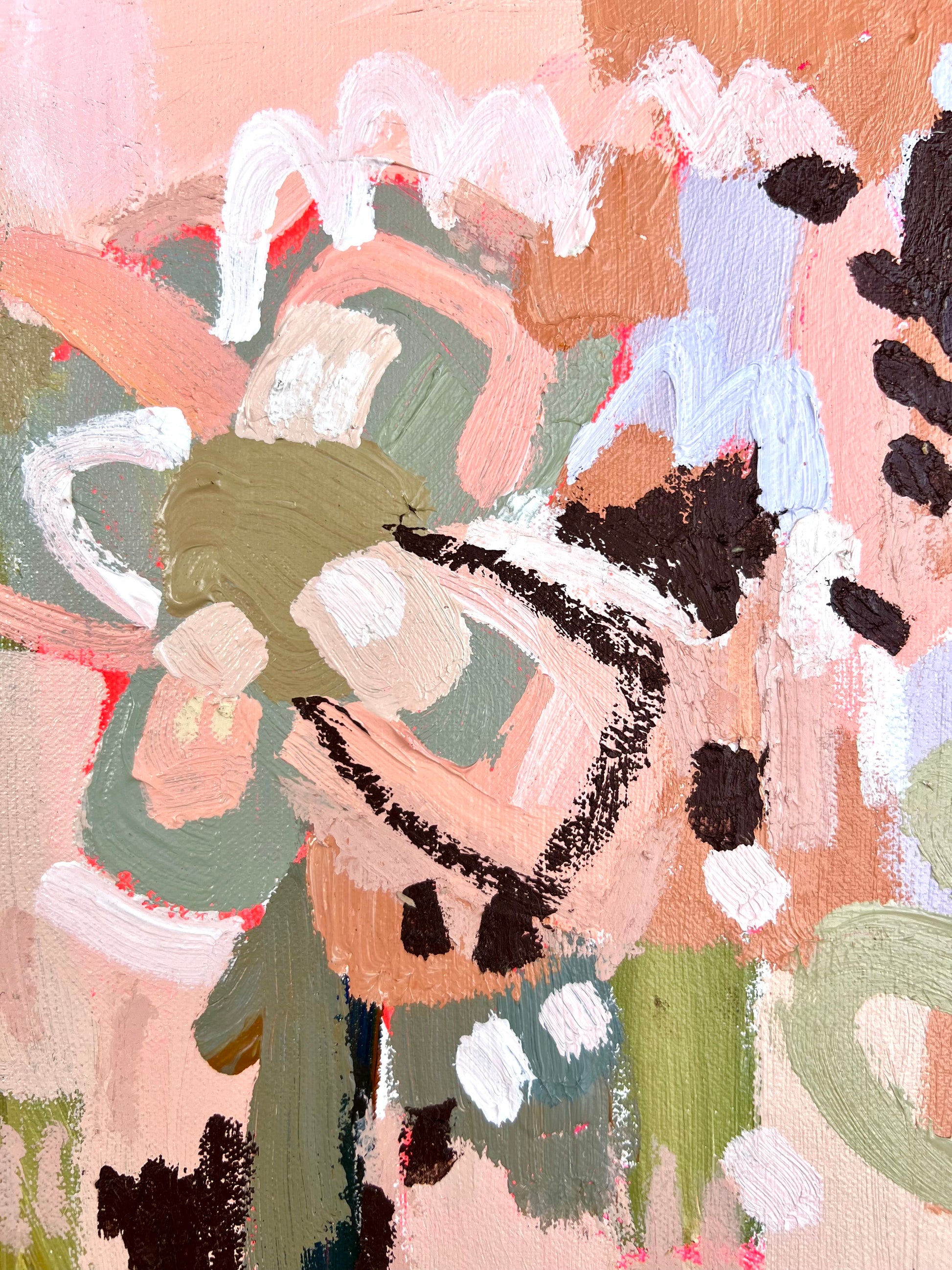 I am obsessed with colour and nature! Outside in the natural environment is where I spend my time sketching the organic forms that surround me. I take them back to my studio where I abstract the beauty and vibrancy of the experience into my paintings. What excites me is creating compositions using a luminous mix of rich colours and texture bringing the outdoors inside feeling happiness from connecting with nature.