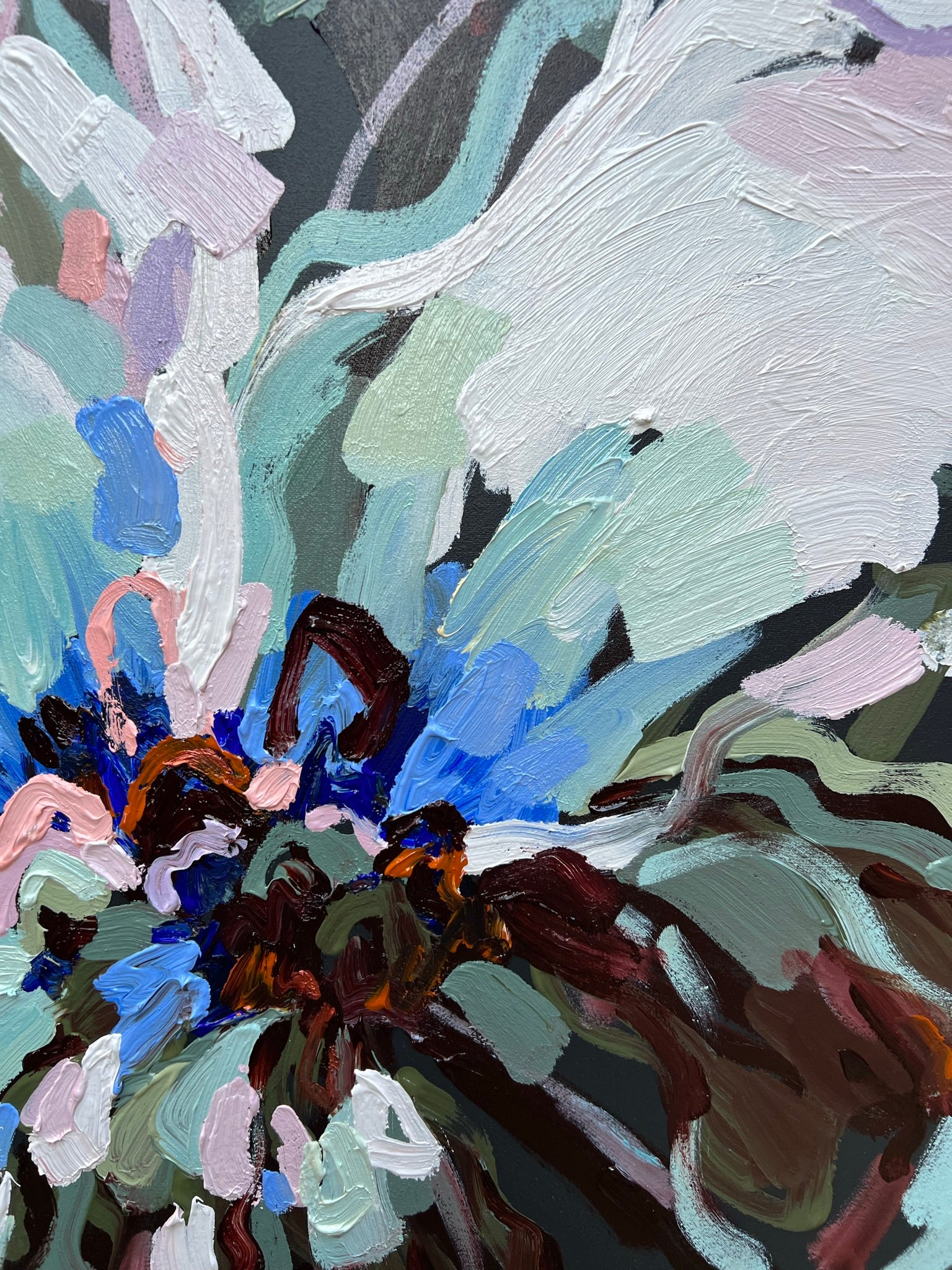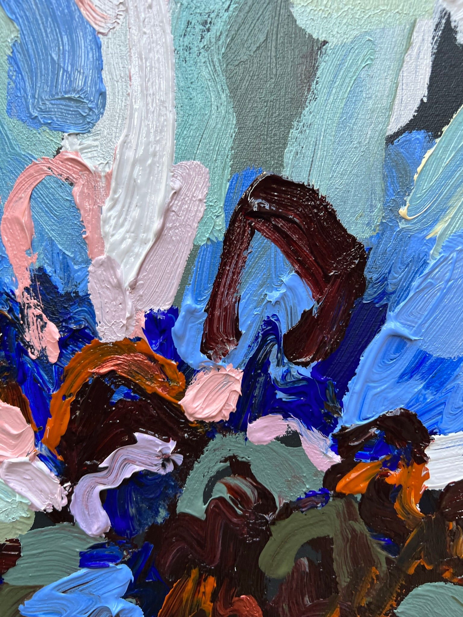 I am obsessed with colour and nature! Outside in the natural environment is where I spend my time sketching the organic forms that surround me. I take them back to my studio where I abstract the beauty and vibrancy of the experience into my paintings. What excites me is creating compositions using a luminous mix of rich colours and texture bringing the outdoors inside feeling happiness from connecting with nature.