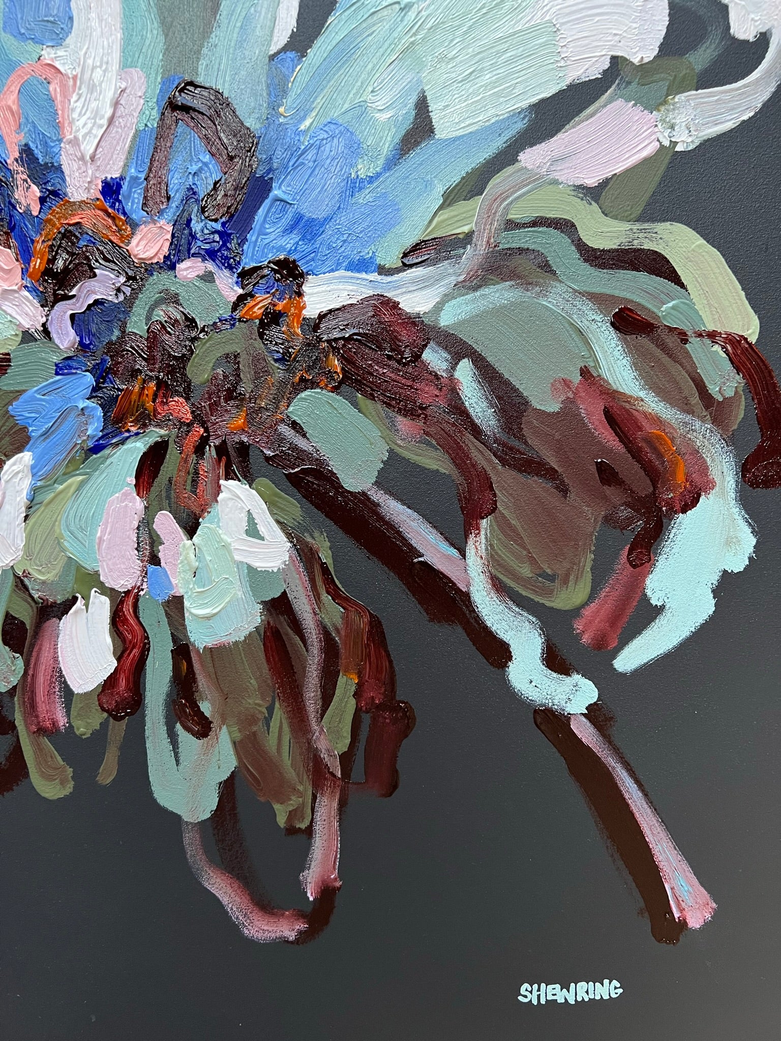 This art print onto canvas is full of life, movement and colour with a joyous flower.