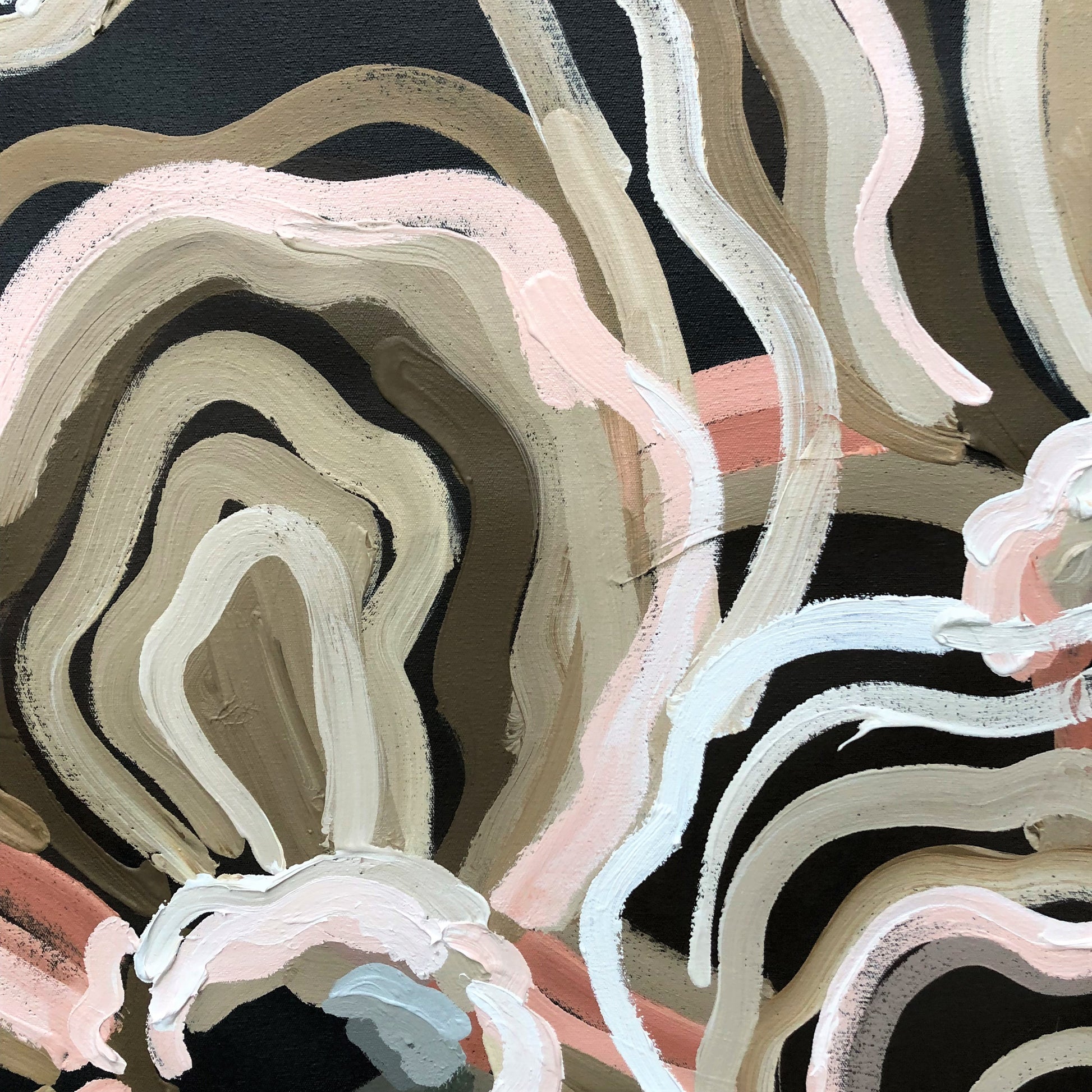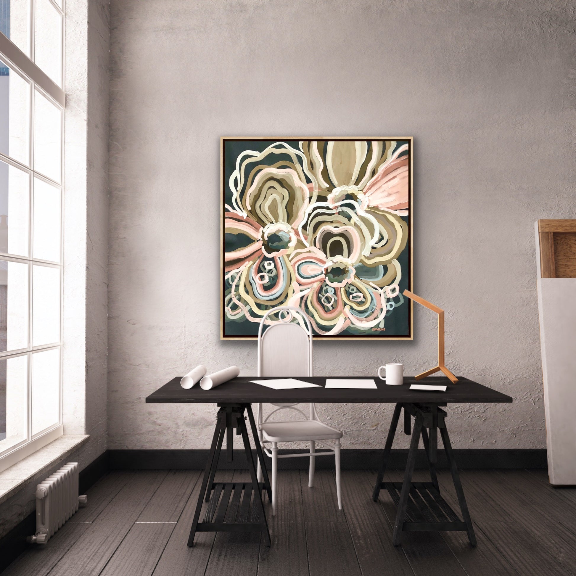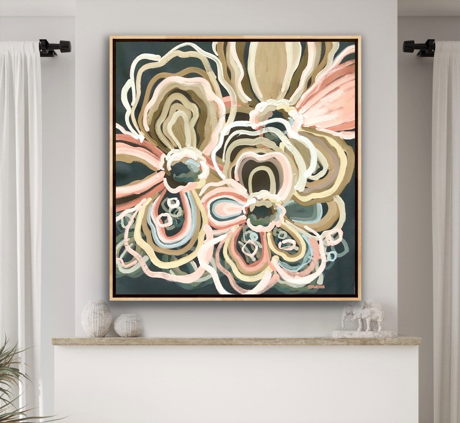Coffee Time was inspired by the warm earth tones of the Australian landscape. I painted the flowers in an abstract expressive style in coffee tones with bursts of soft terracotta pink and warm greys. This painting would suit a range of different decors.