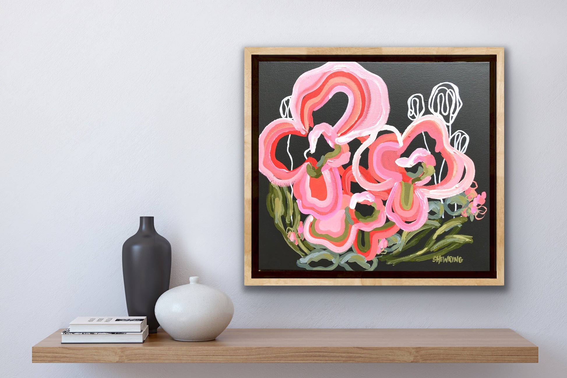 - This painting is on stretched artist quality canvas and framed in Tasmanian oak wooden float frame.