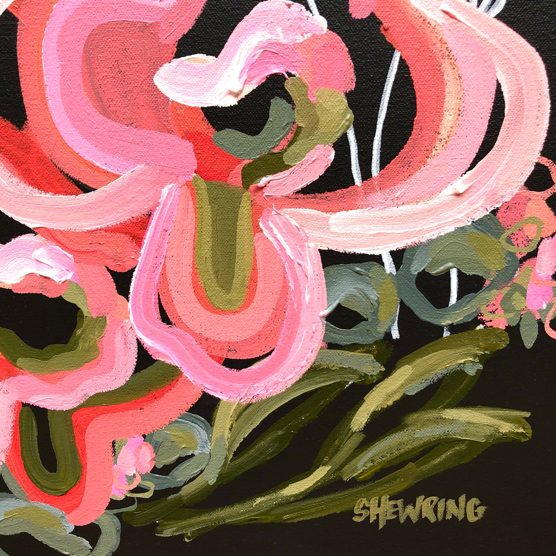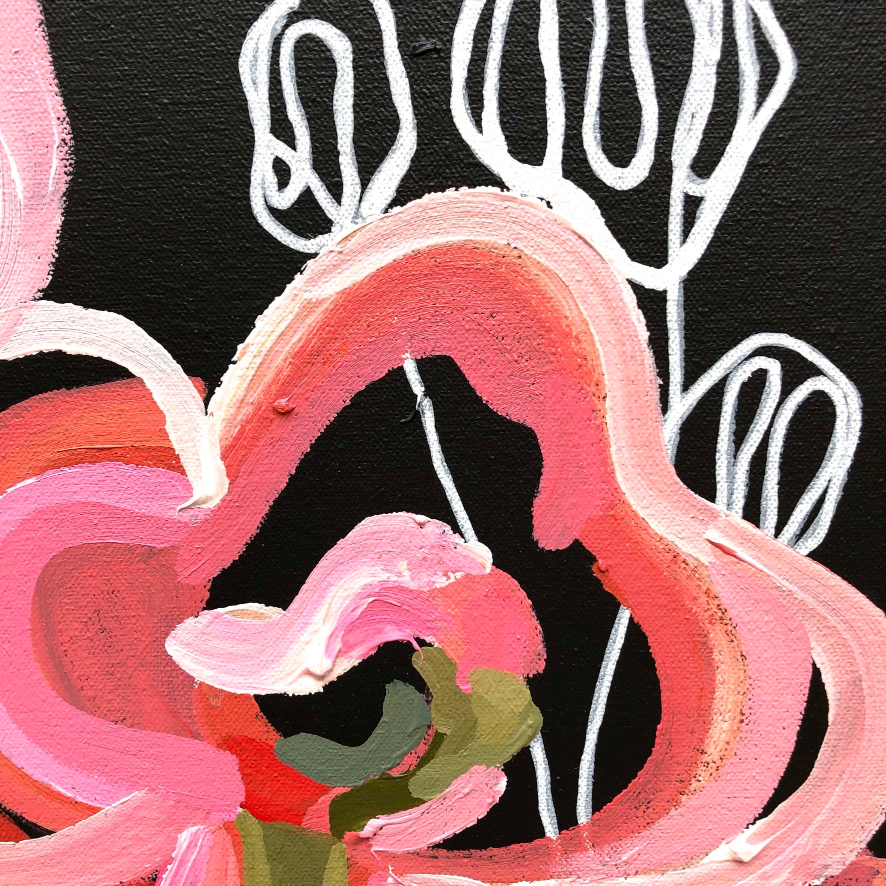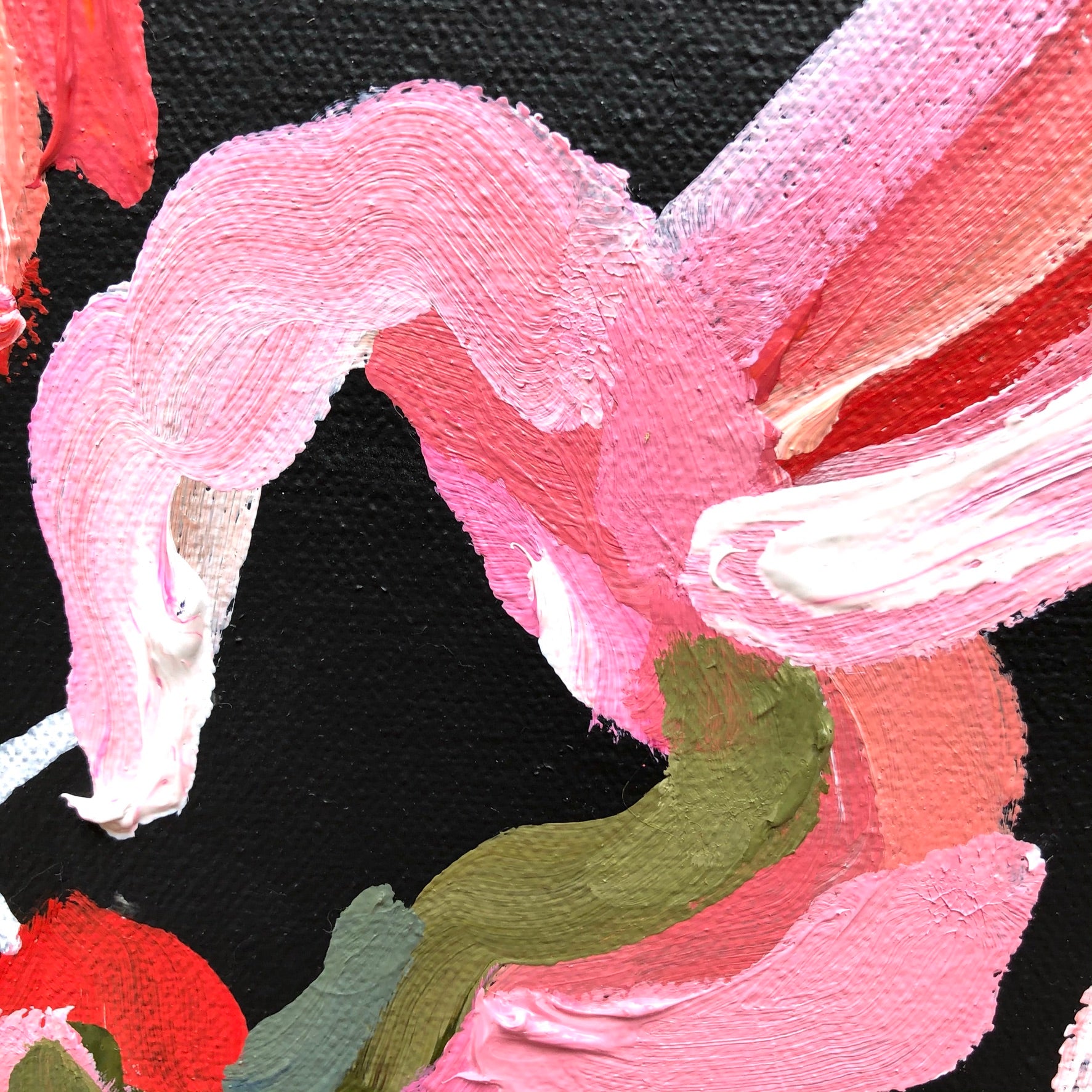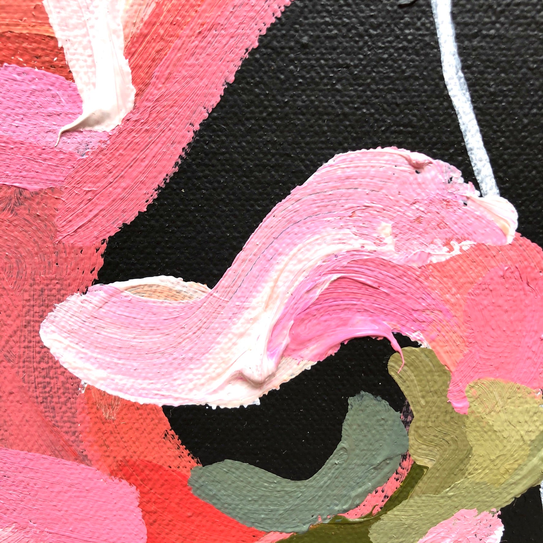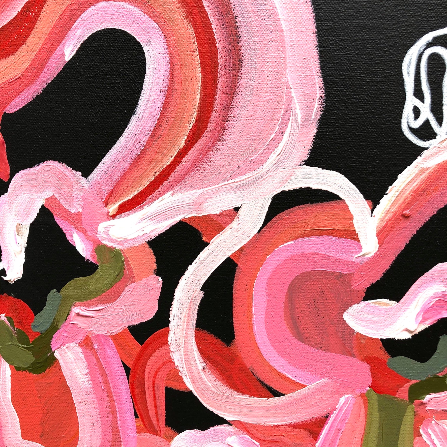 Tropic Vibe is a bright and bold flower abstract inspired by the delicious summer colours of melons, strawberries and raspberries. This painting has expressive individual brushstrokes that bring it to life!