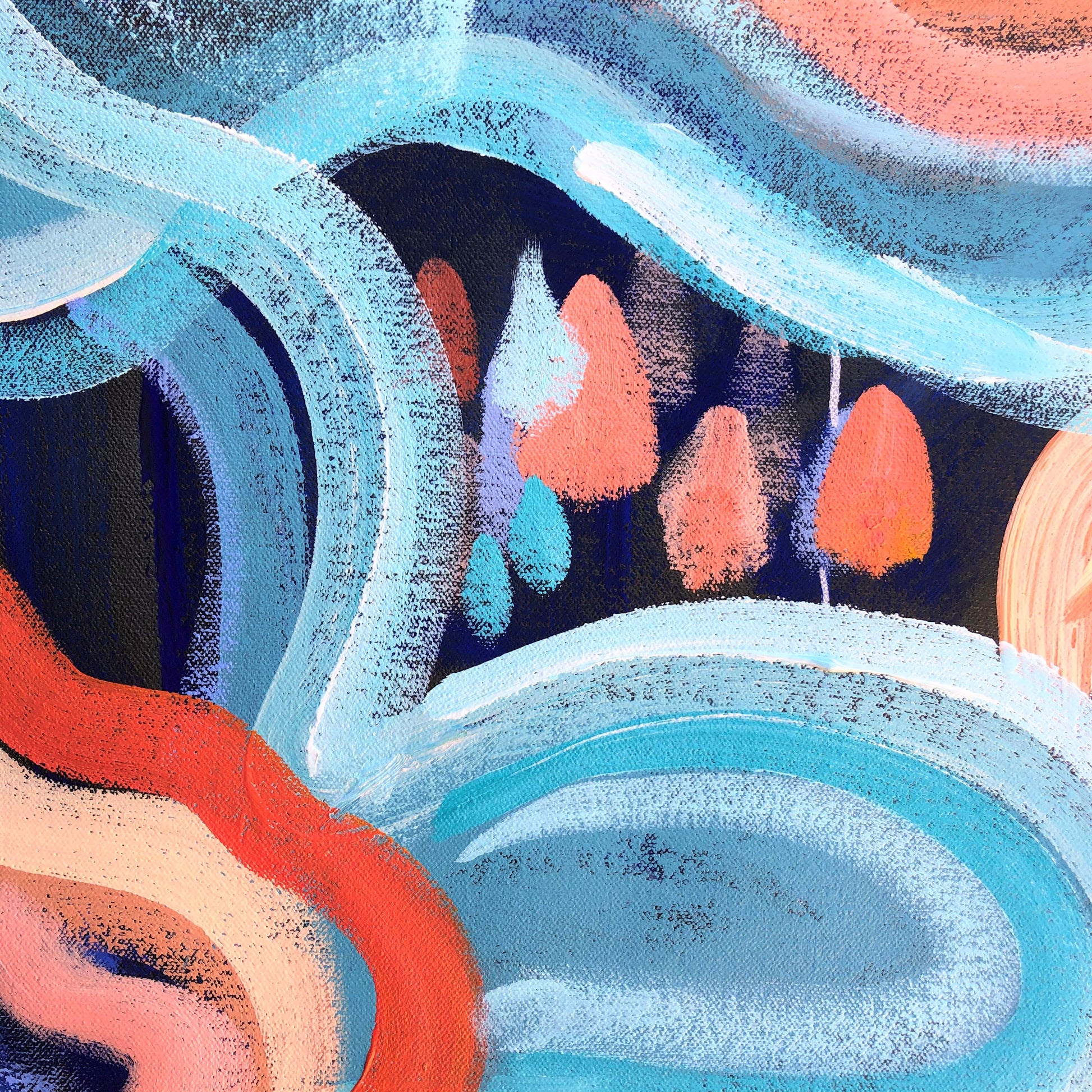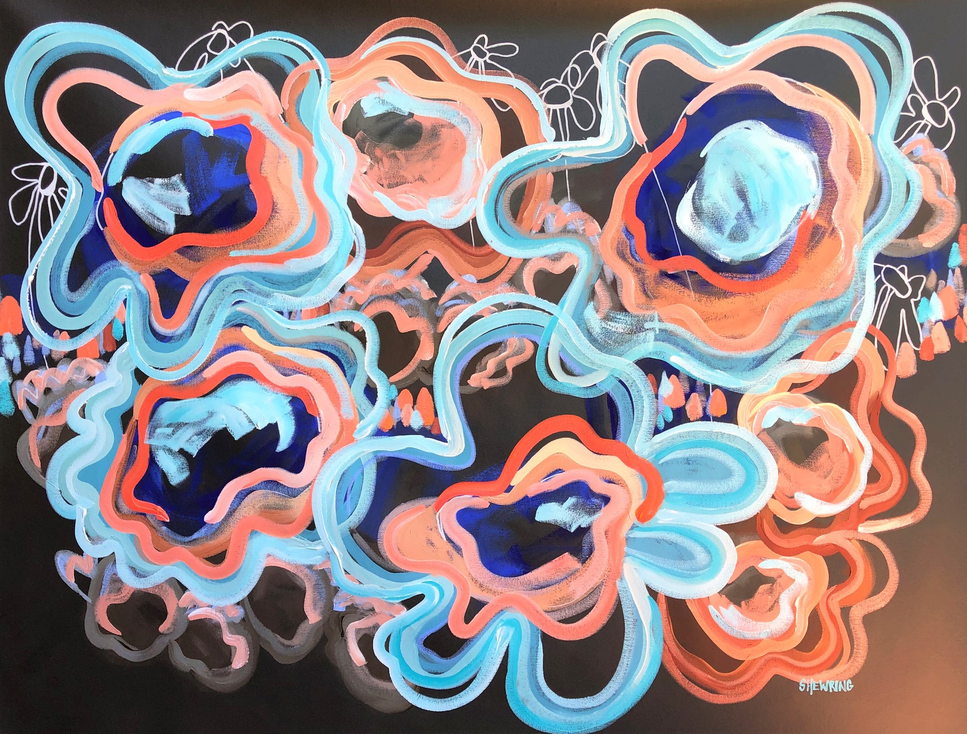 I am obsessed with colour and nature! Outside in the natural environment is where I spend my time sketching the organic forms that surround me. I take them back to my studio where I abstract the beauty and vibrancy of the experience into my paintings. What excites me is creating compositions using a luminous mix of rich colours and texture bringing the outdoors inside feeling happiness from connecting with nature.