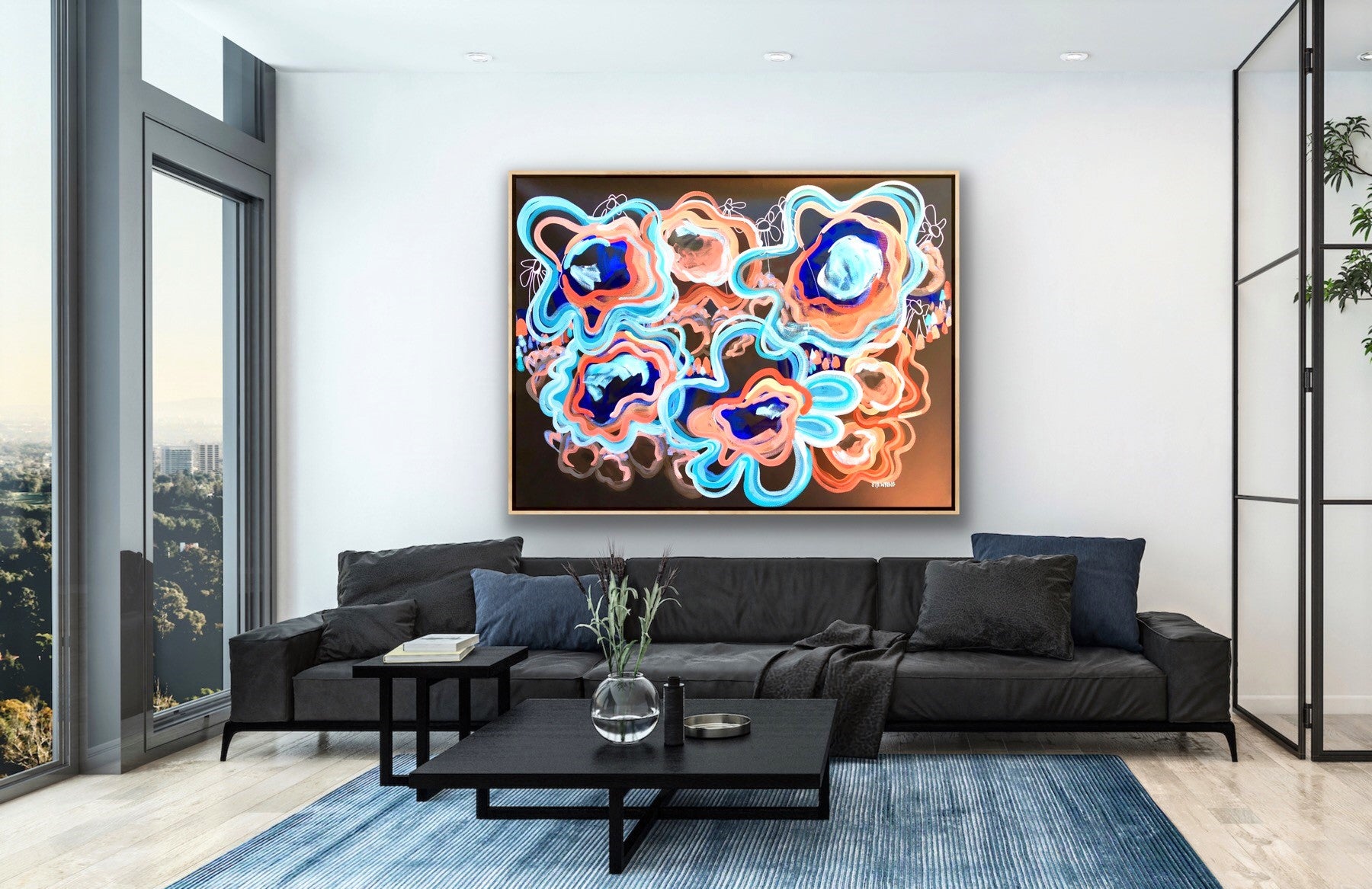 - This artwork would look great framed in an oak timber or black floating frame as shown in the photo.