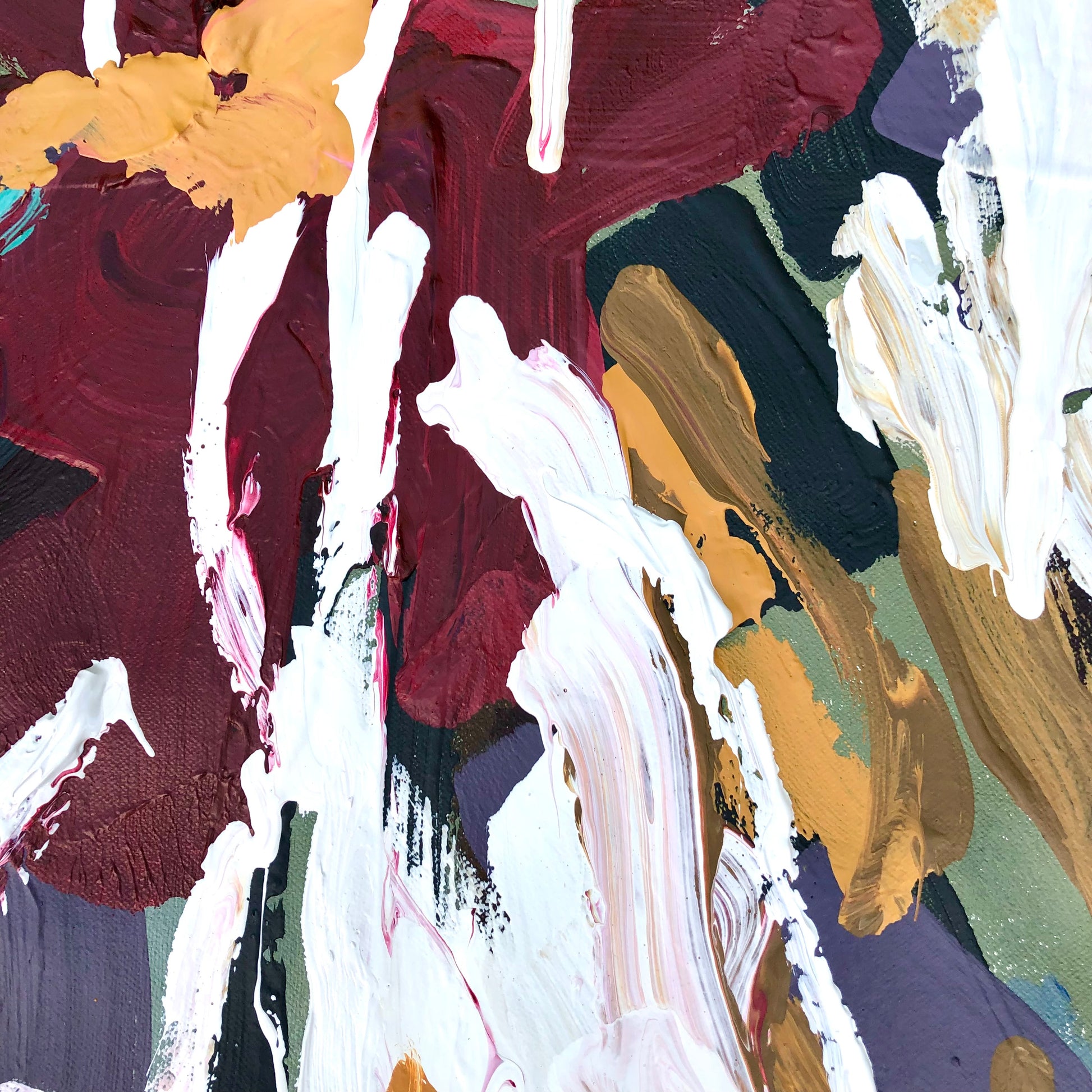 I've used the technique of layering paint to reveal both the contrasting and complementary colours underneath. The colours sparkle alongside each other and it has expressive individual and textured brushstrokes that bring it to life!