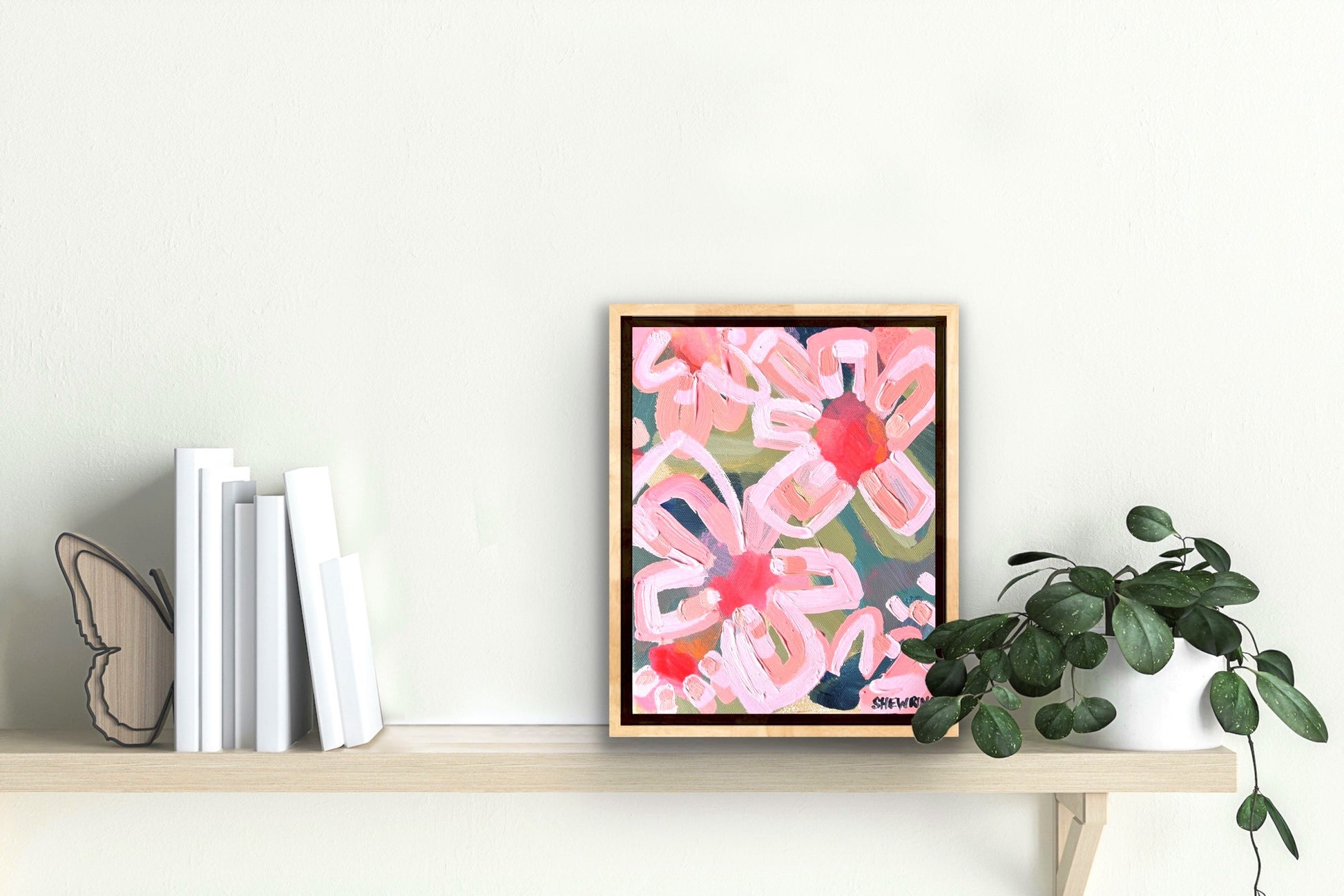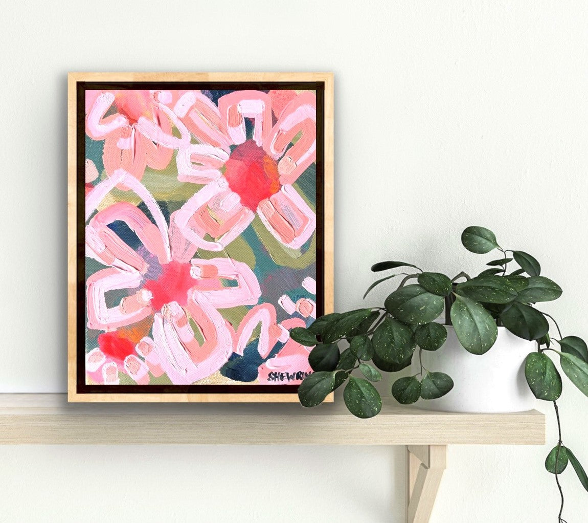 Love You #3 is a bright and bold flower abstract inspired by the delicious colours of melons, strawberries and raspberries complimented with shades of gorgeous greens and blues. This painting has the passionate colours of love!