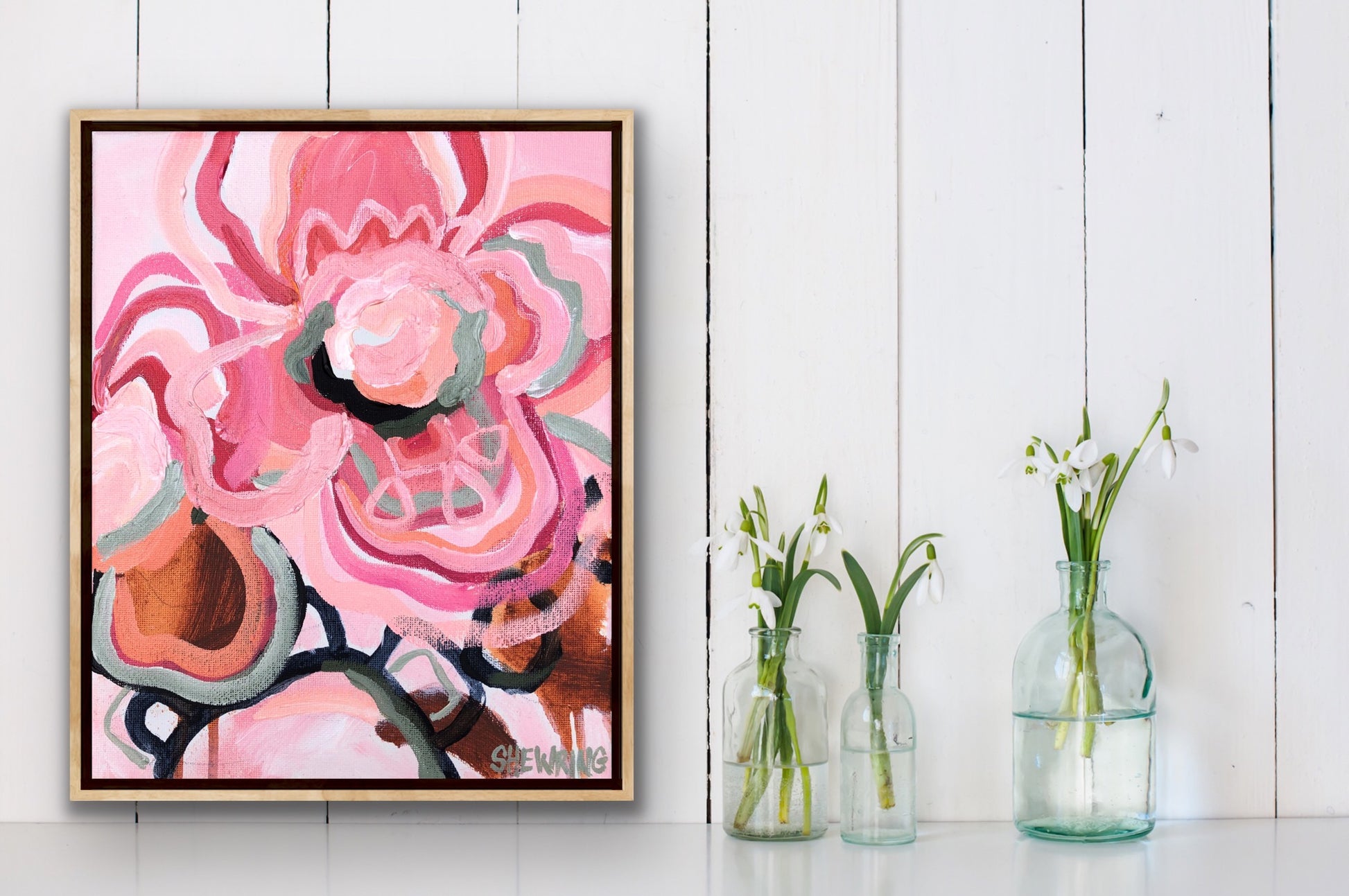 Union In Pink is a bright and bold flower abstract inspired by the delicious summer colours of melons, strawberries and raspberries. This painting has the passionate colours of love!