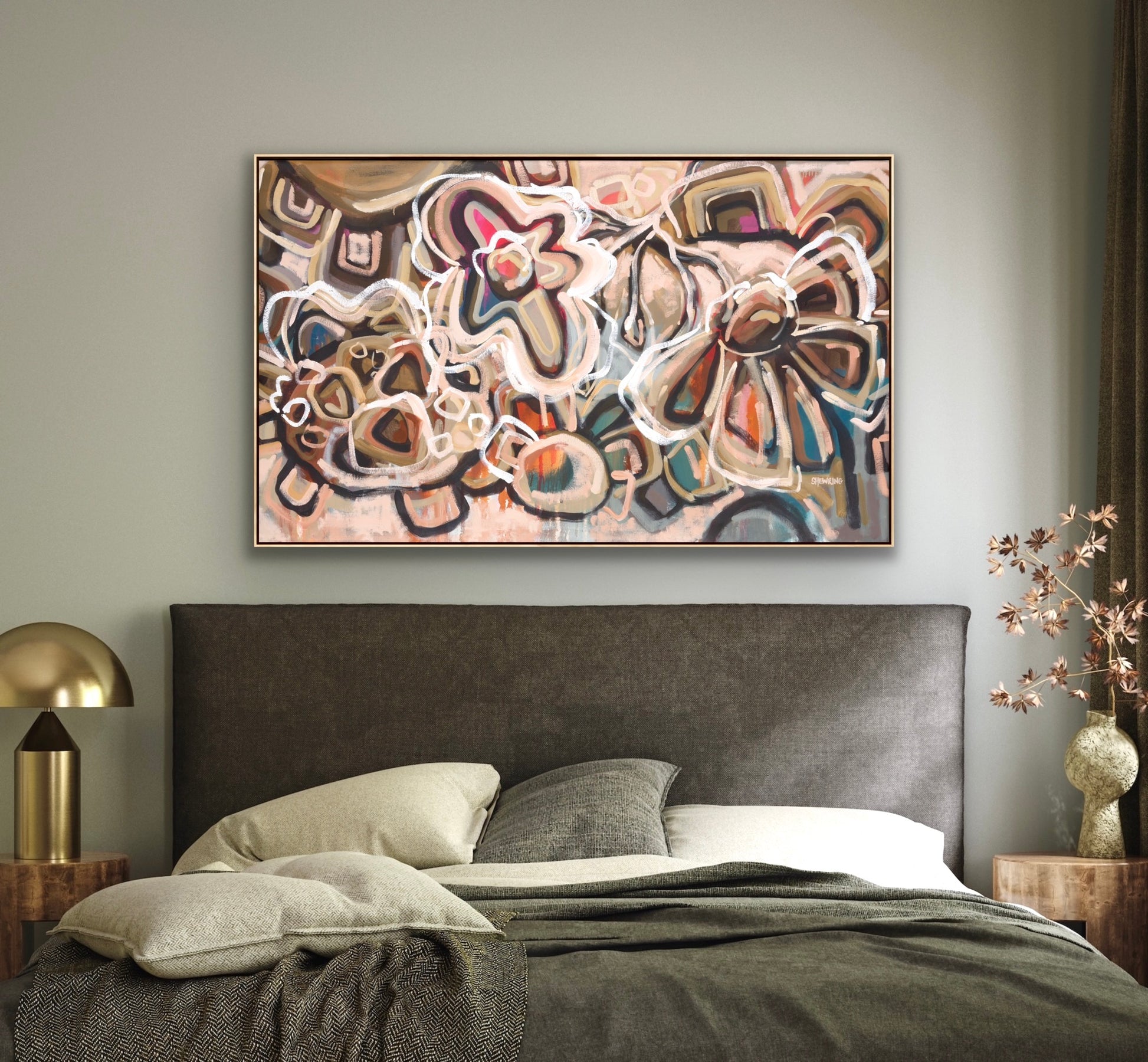 I am obsessed with colour and nature! Outside in the natural environment is where I spend my time sketching the organic forms that surround me. I take them back to my studio where I abstract the beauty and vibrancy of the experience into my paintings. What excites me is creating compositions using a luminous mix of rich colours and texture bringing the outdoors inside feeling happiness from connecting with nature.