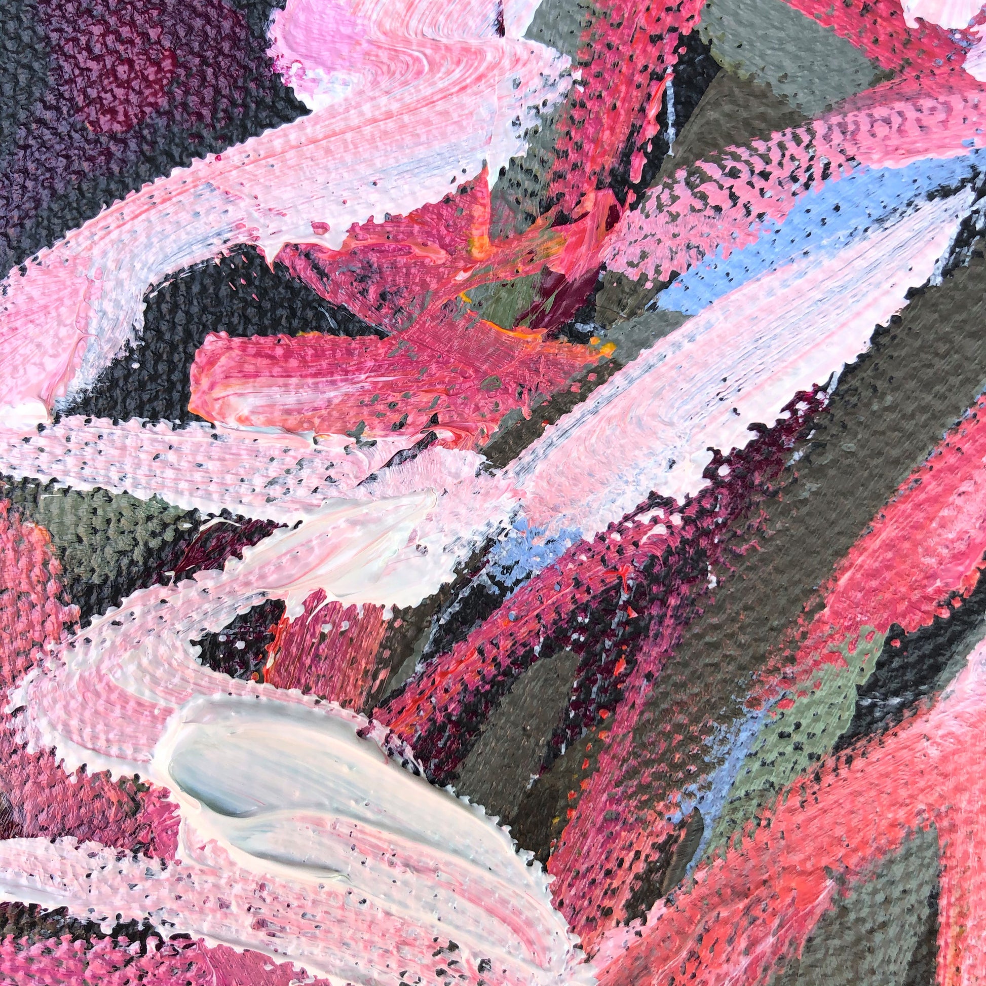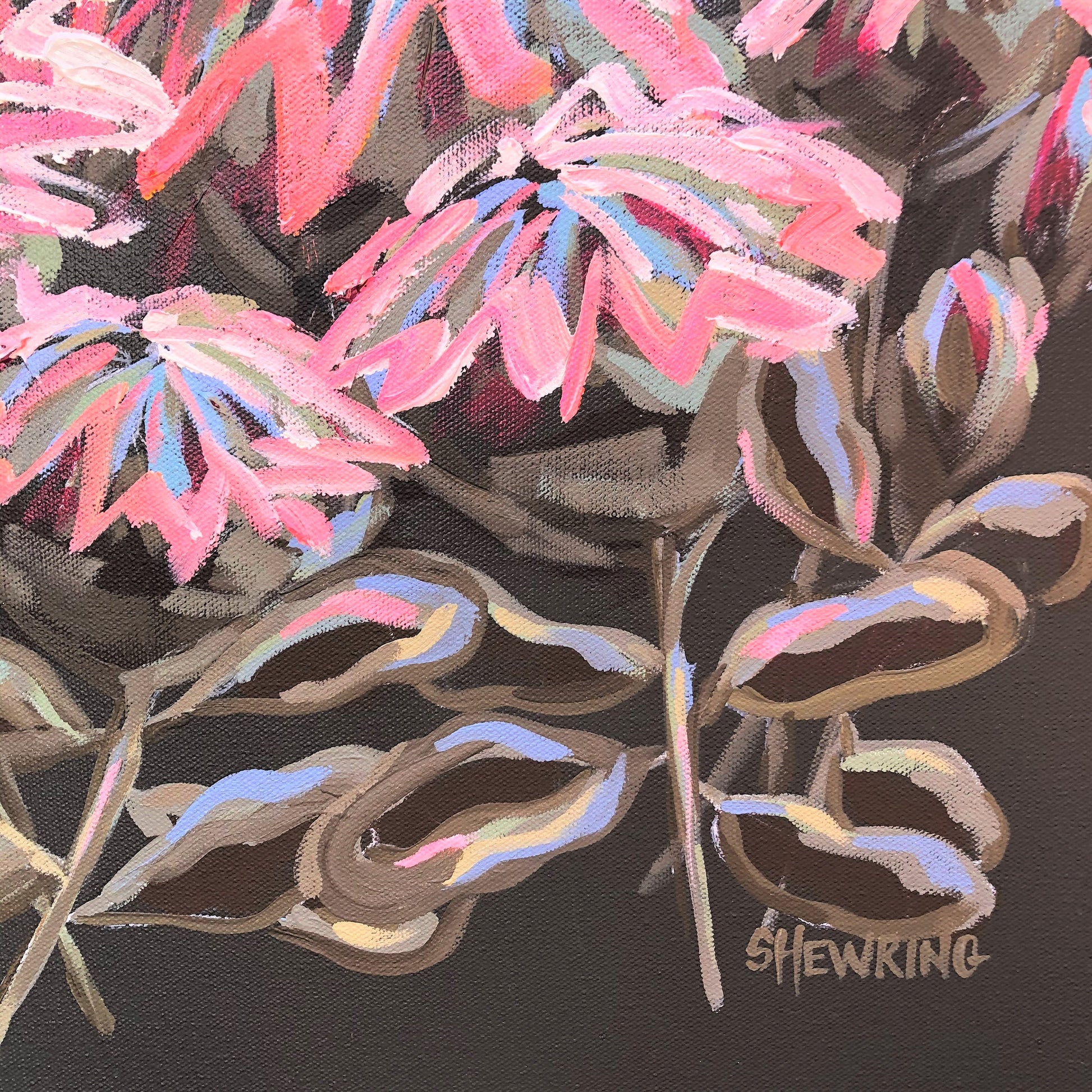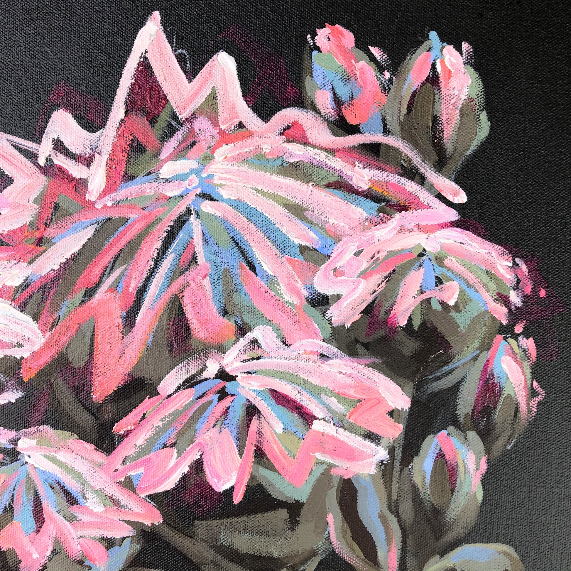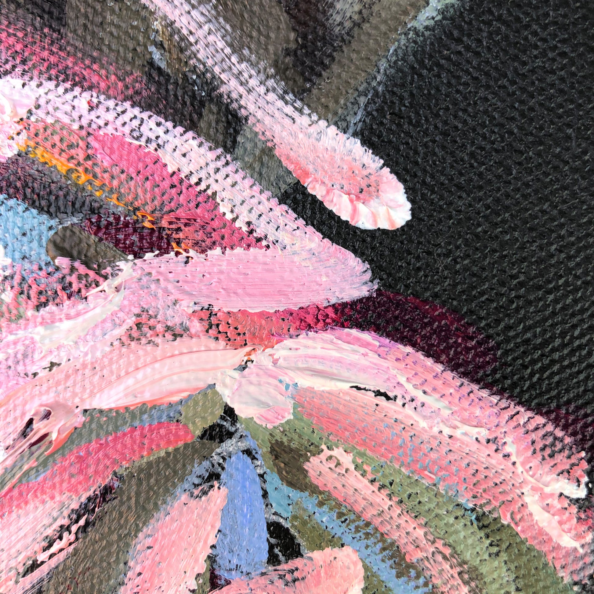 Painting abstract flowers and foliage is such a passion of mine, I adore their awesome colours. In this painting I place their beauty over a dramatic charcoal background.