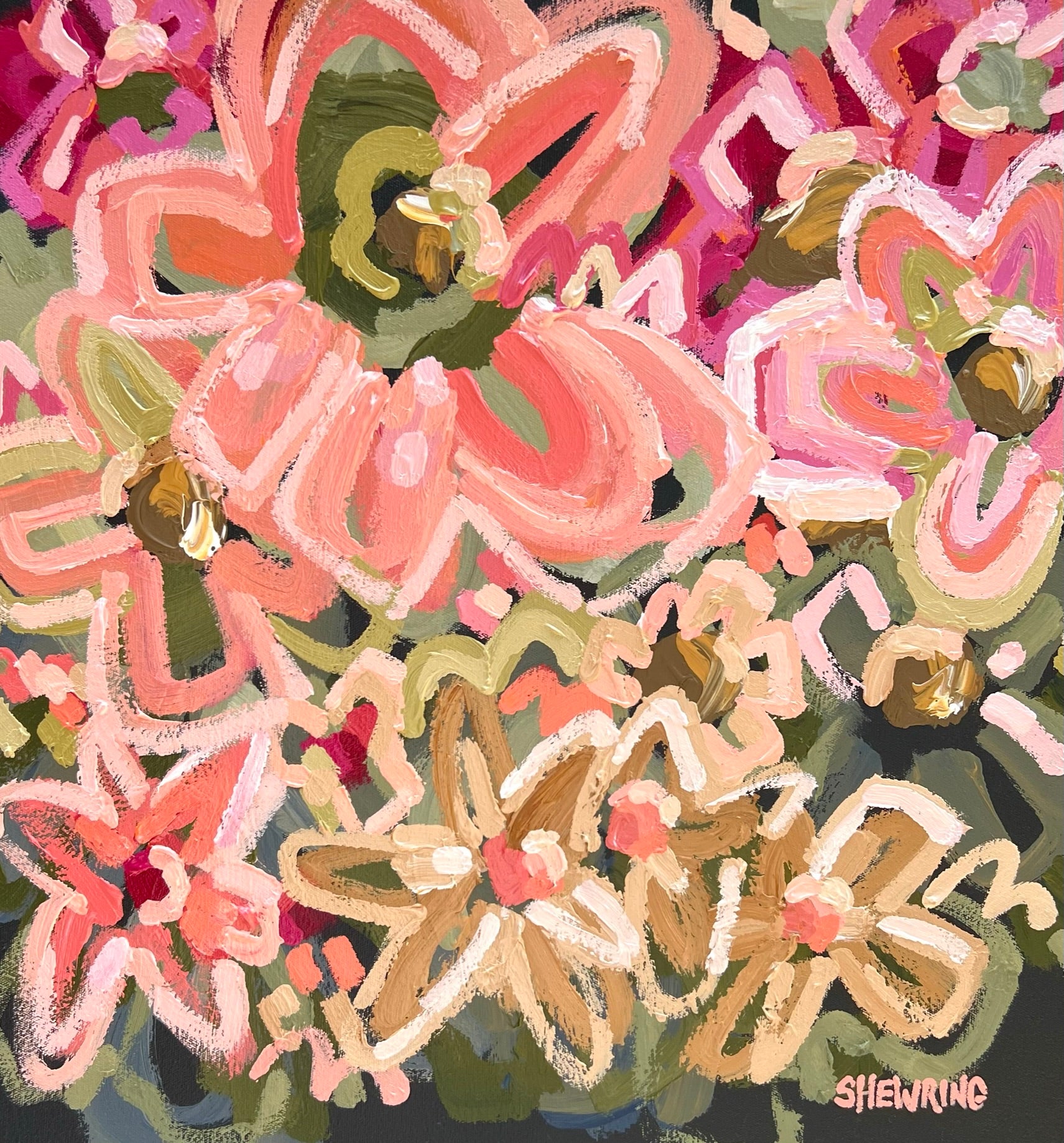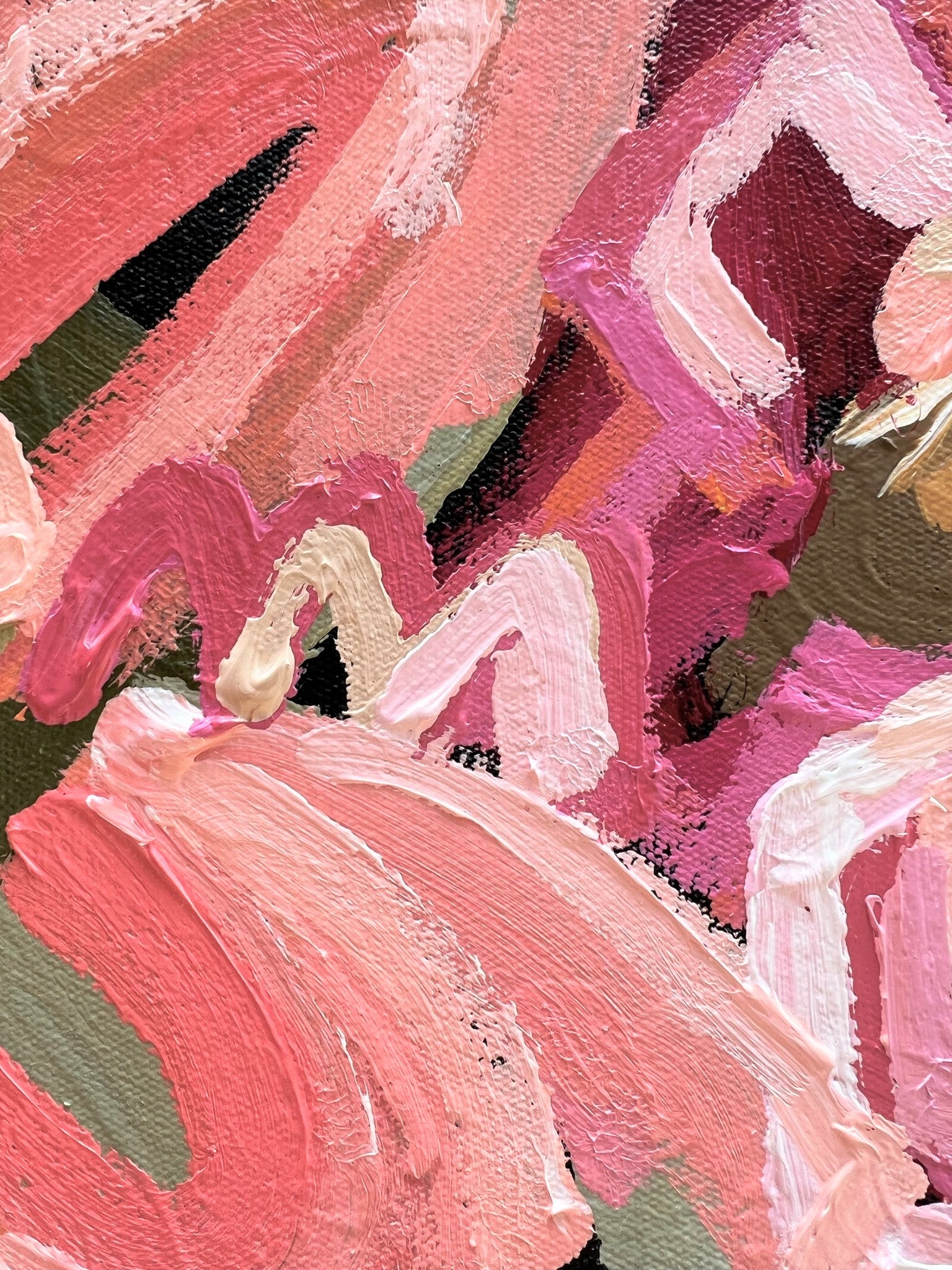 All Of My Heart is a happy and bright piece inspired by the beautiful colour of fresh flowers basking in the morning sunshine of my local gardens of Melbourne, Australia. The colours are so pretty and vibrant.