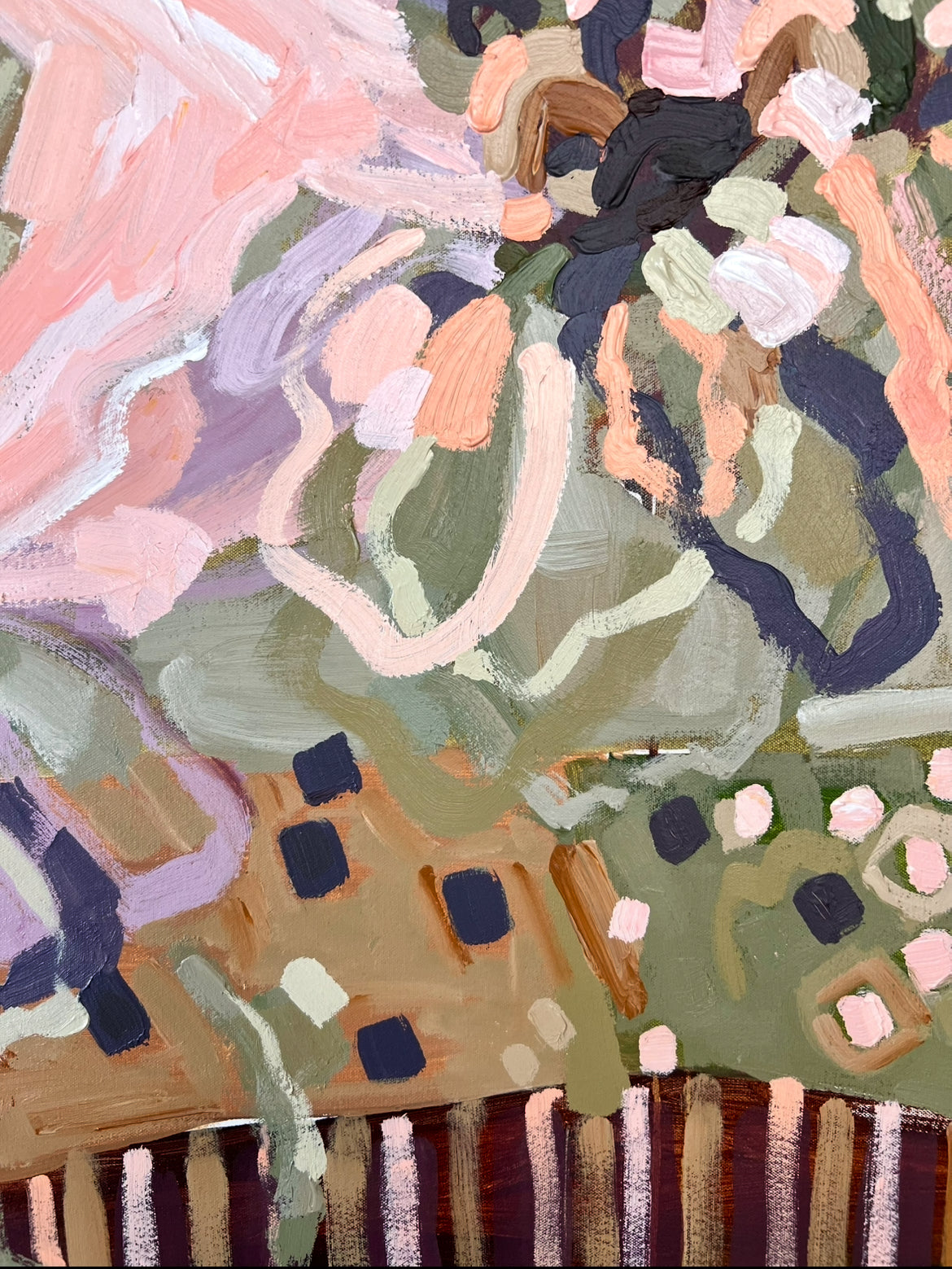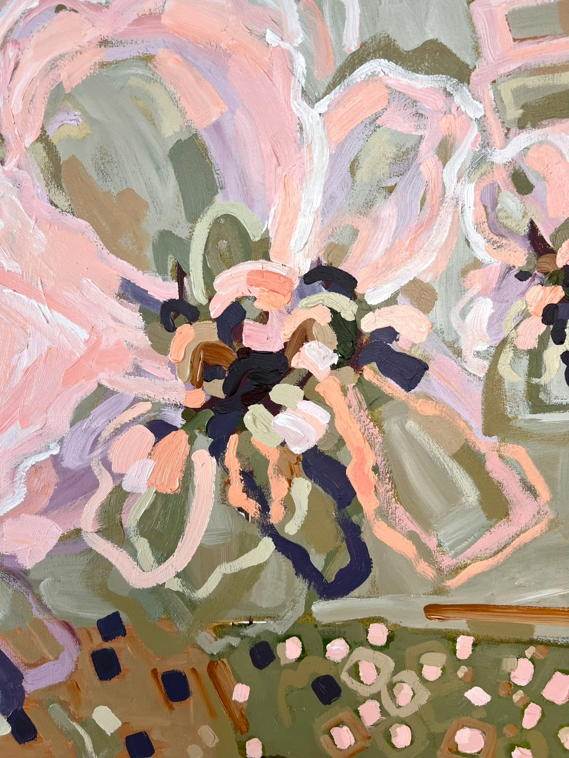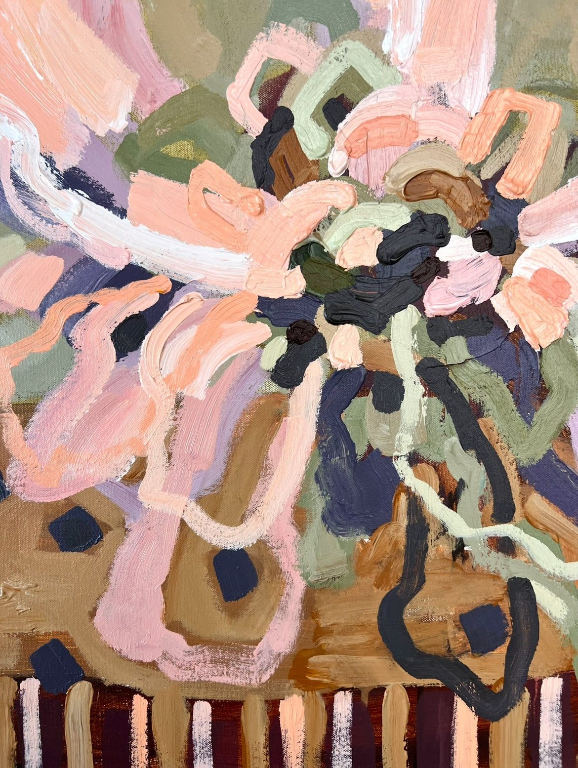 Lovers Sunlit Flowers is a beautifully textured floral abstract. This painting has expressive individual brushstrokes that bring it to life!