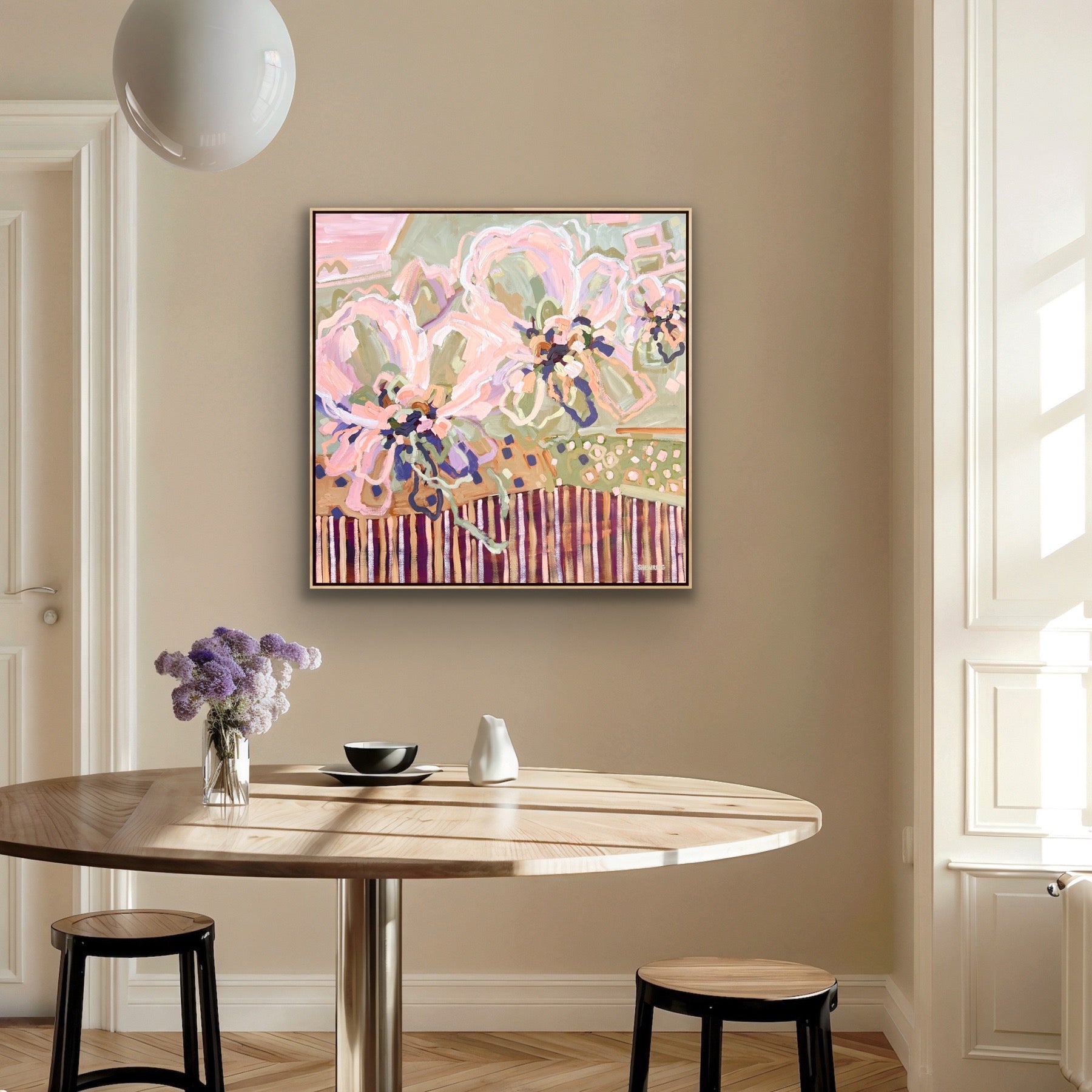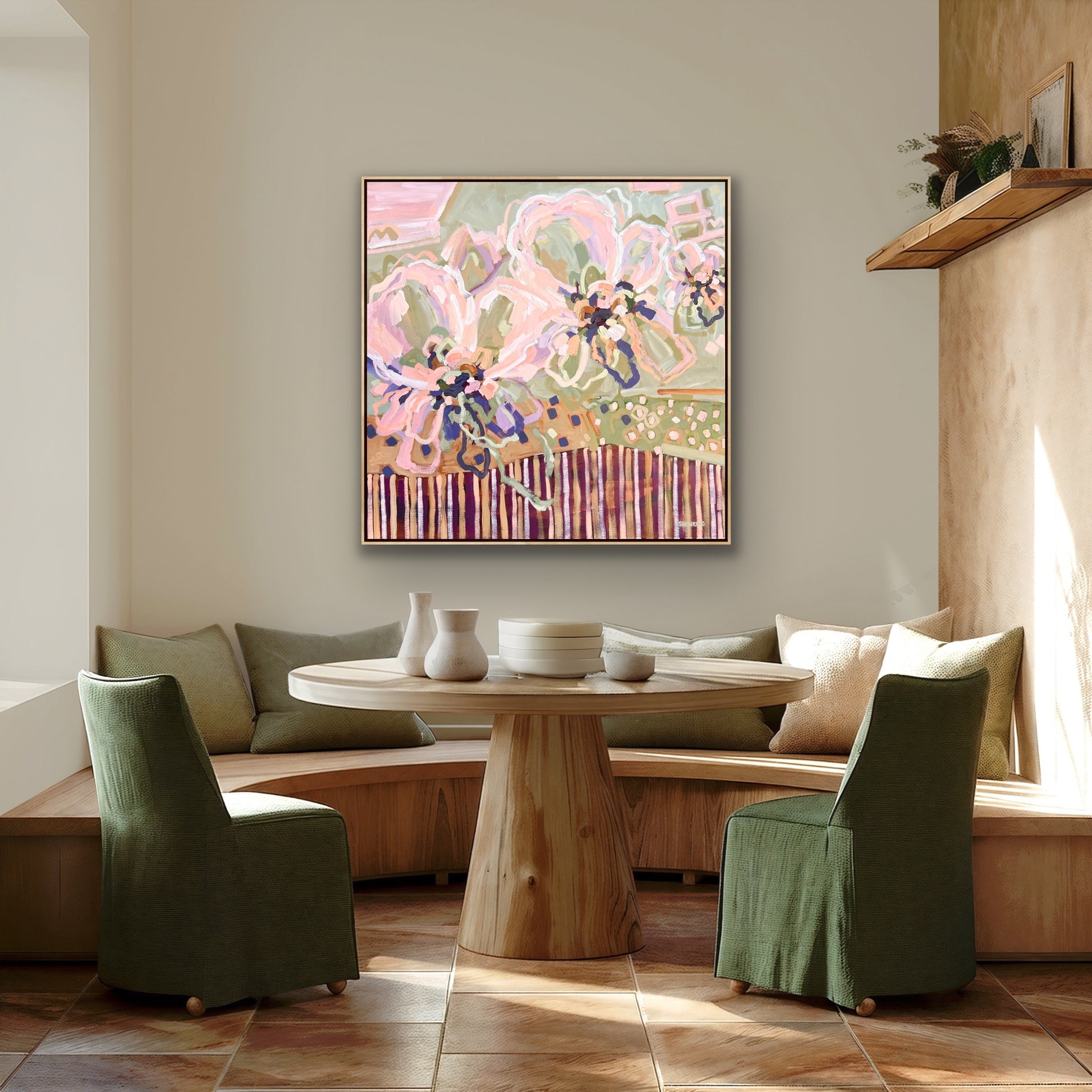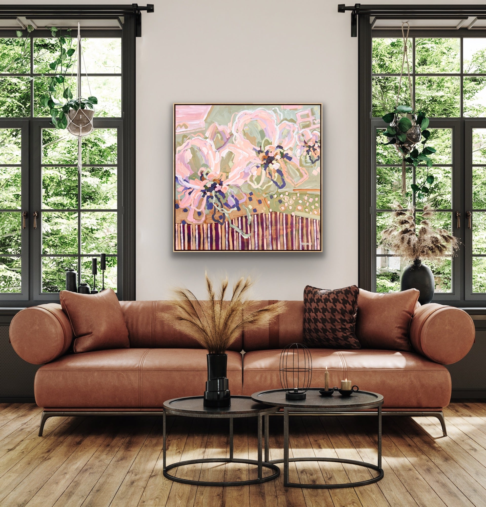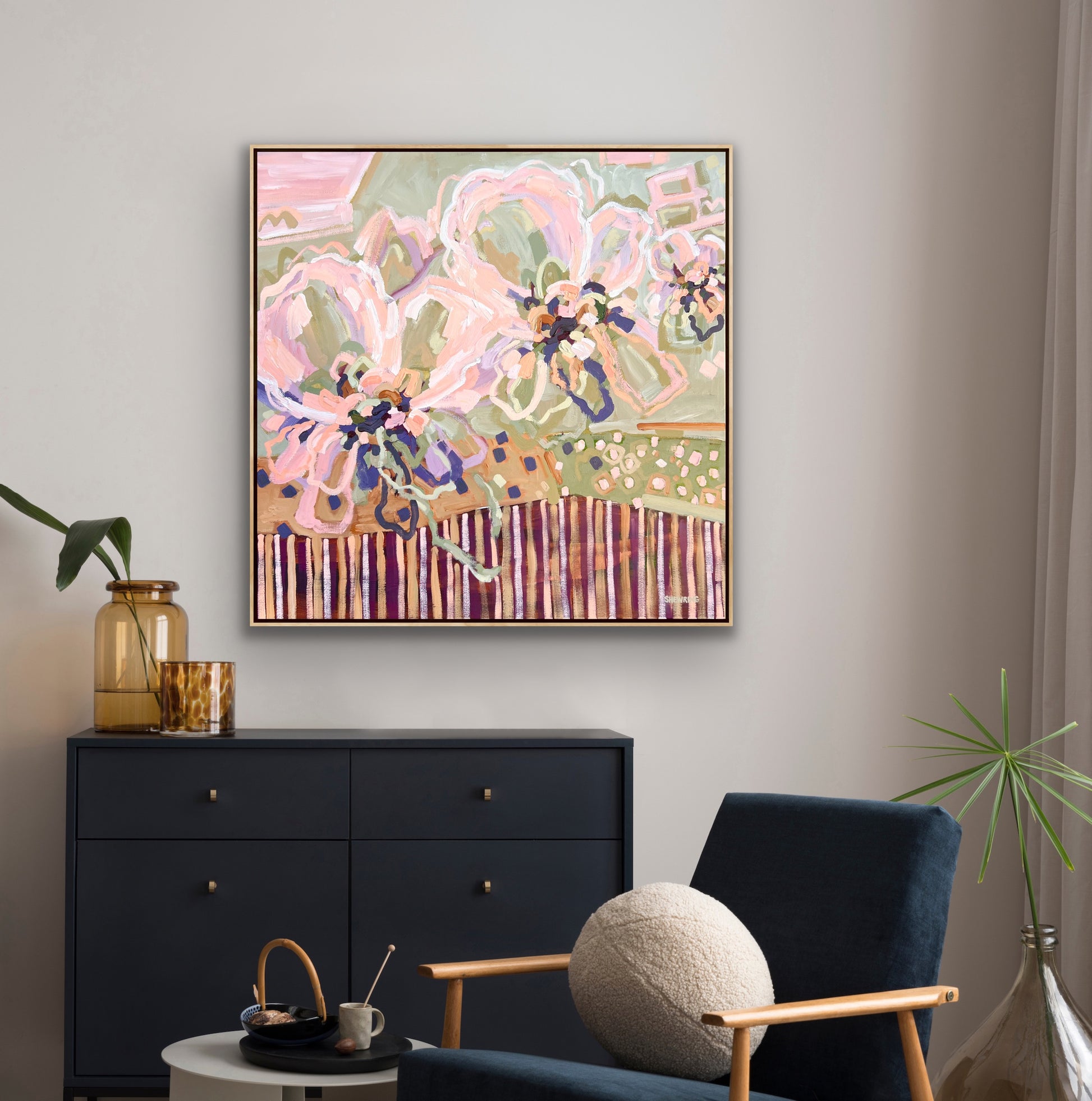 103 x 103 cm Framed in natural timber float frame (canvas 100 x 100 cm)