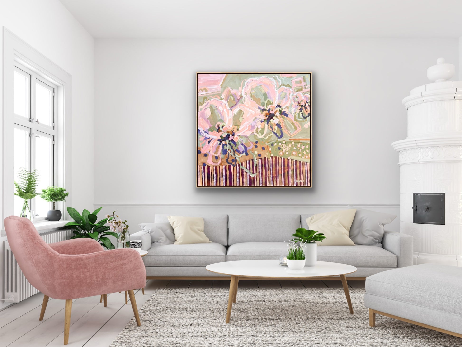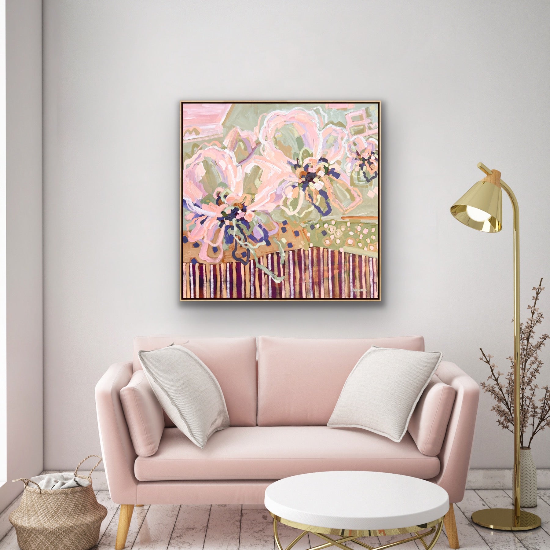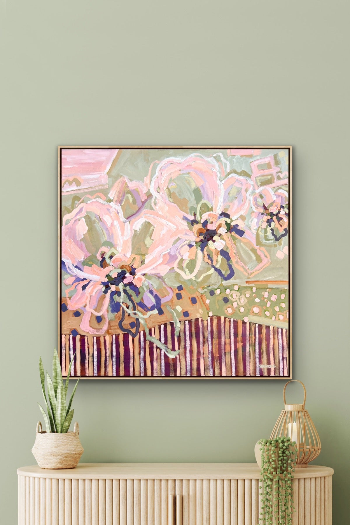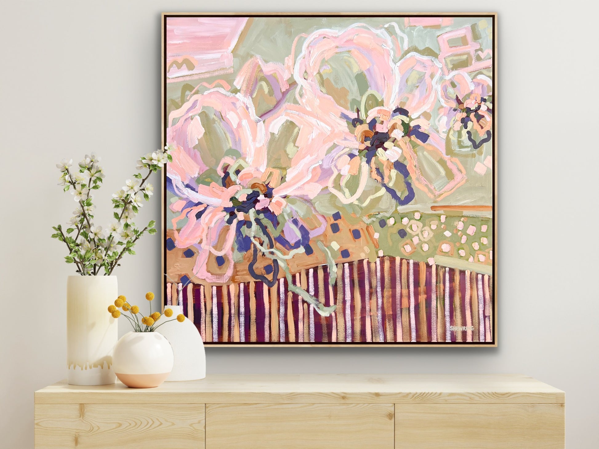 103 x 103 cm Framed in natural timber float frame (canvas 100 x 100 cm)