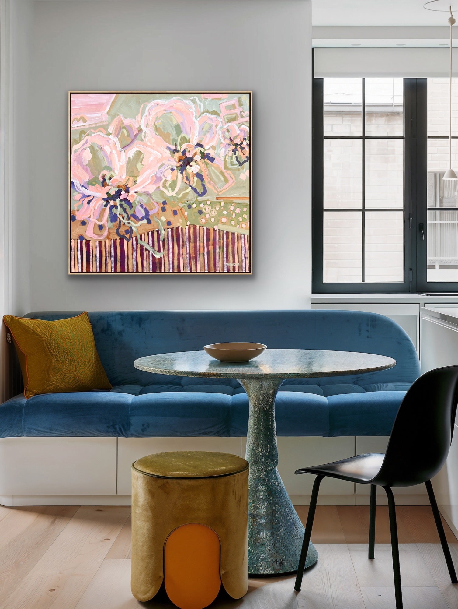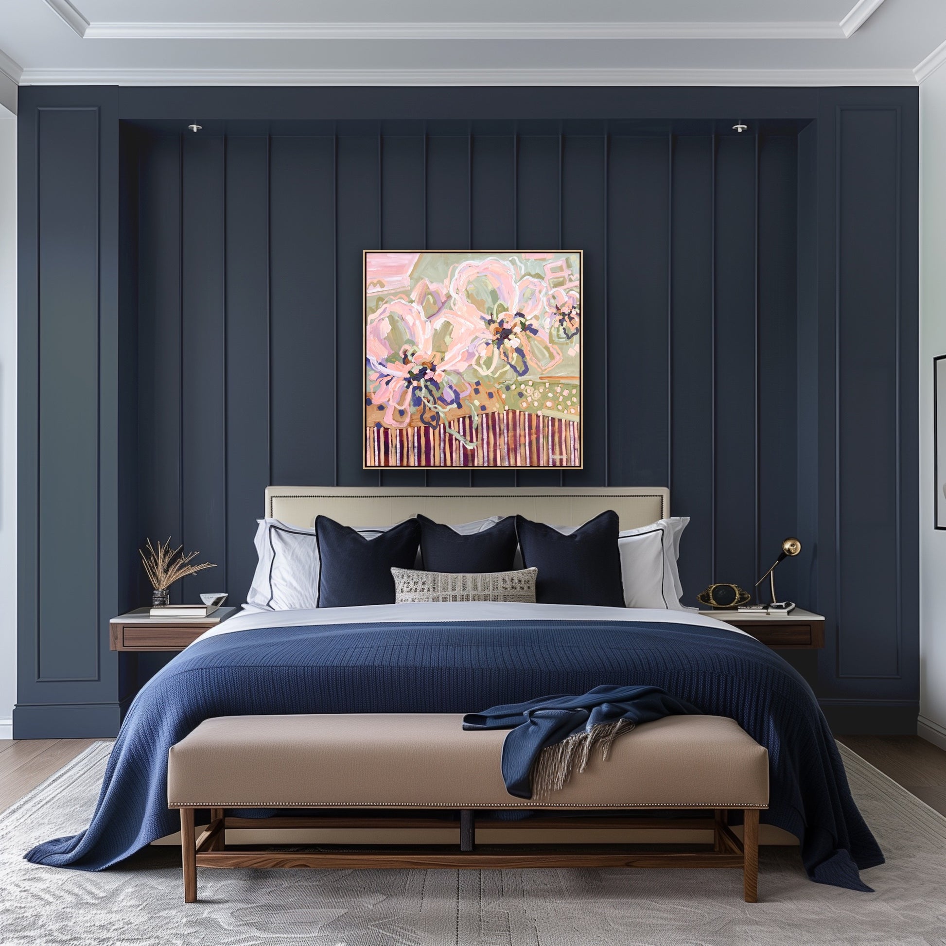 Jen produces stunning on trend paintings and has paintings in the corporate market and in private collections in Australia and overseas. Jen's work was chosen and displayed in 4 homes on the hit TV series 'THE BLOCK' and she was labelled as one of the top 10 Australian Artists To Watch by two major galleries. Her artwork was published in Grand Designs Magazine.