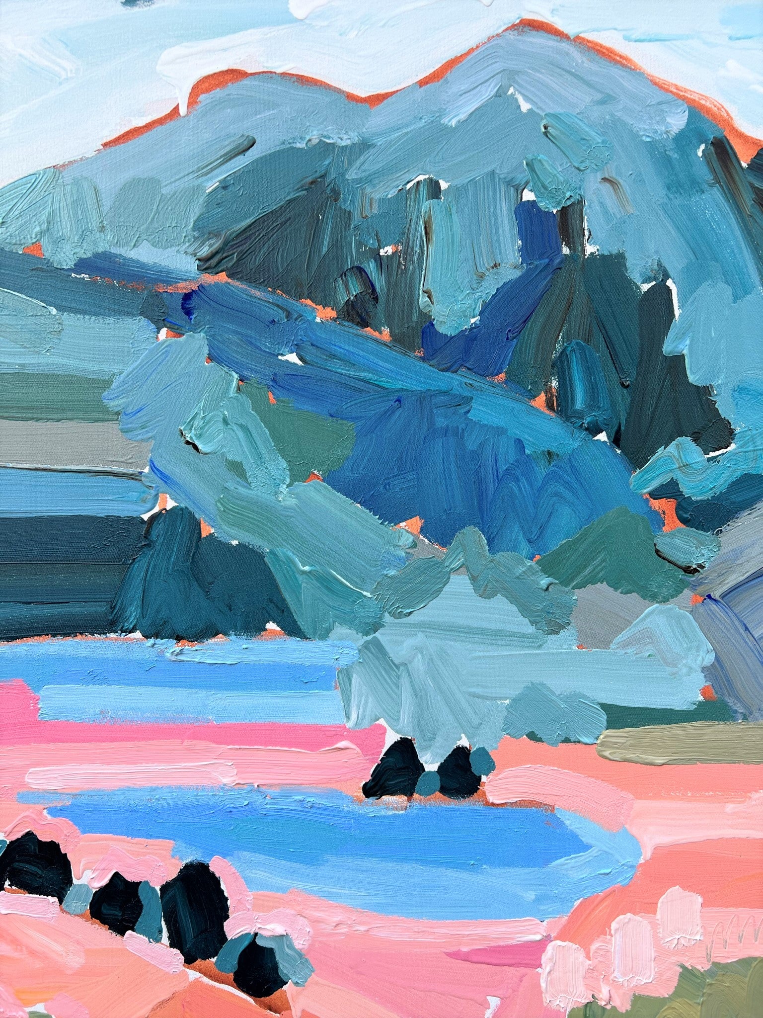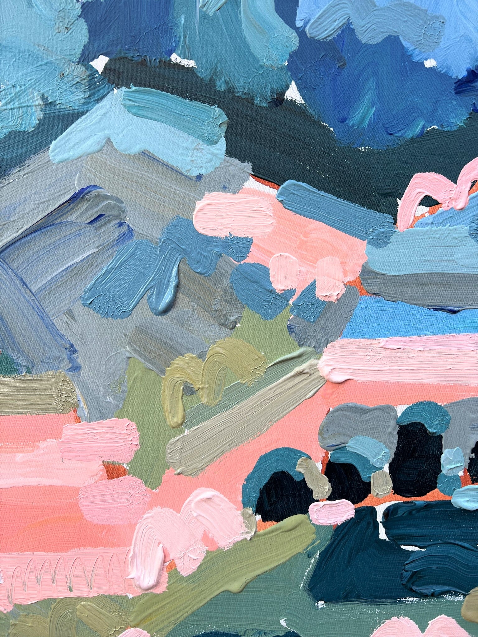 I am obsessed with colour and nature! Outside in the natural environment is where I spend my time sketching the organic forms that surround me. I take them back to my studio where I abstract the beauty and vibrancy of the experience into my paintings. What excites me is creating compositions using a luminous mix of rich colours and texture bringing the outdoors inside feeling happiness from connecting with nature.