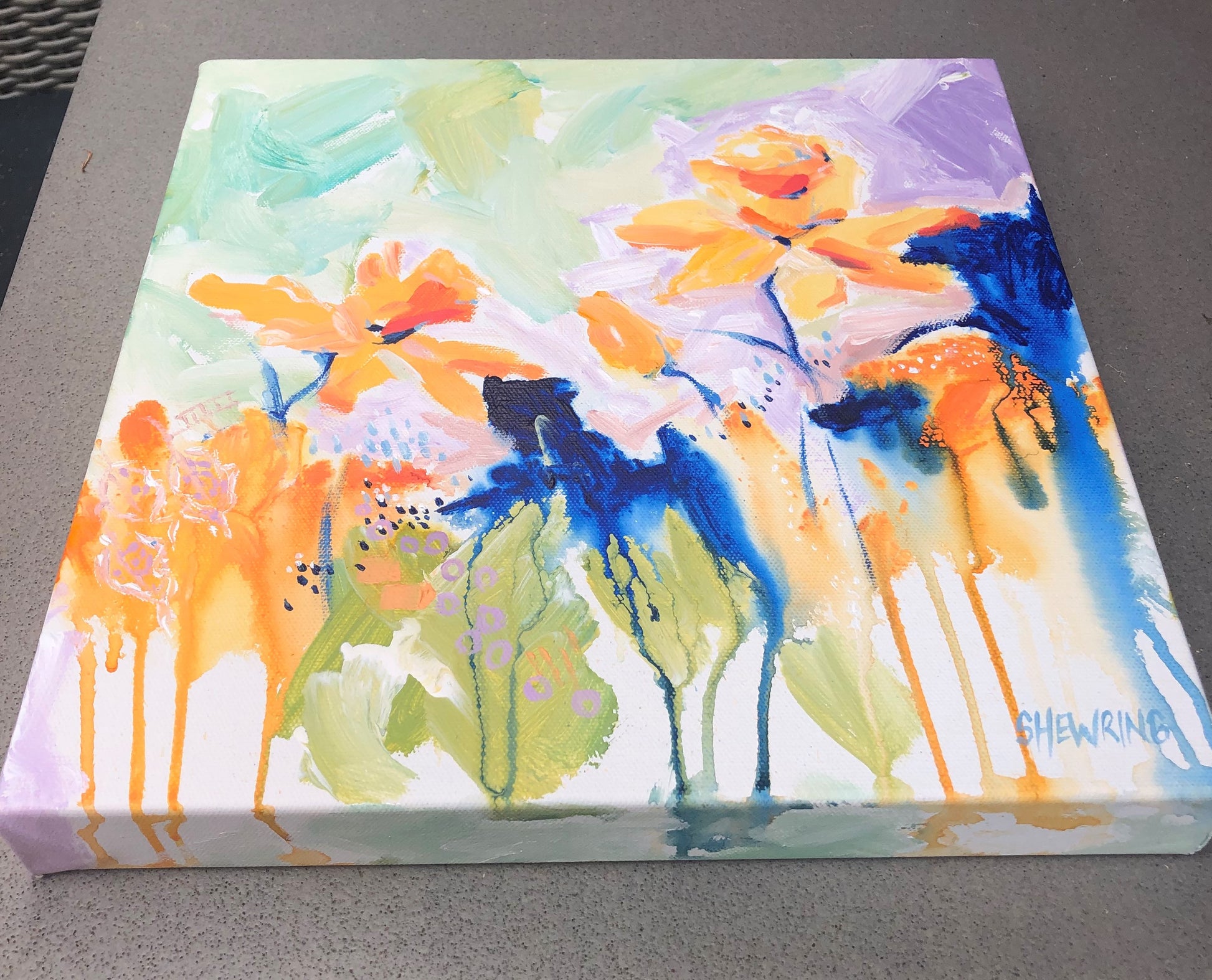 - This painting is on stretched artist quality canvas with an external and internal wooden frame.