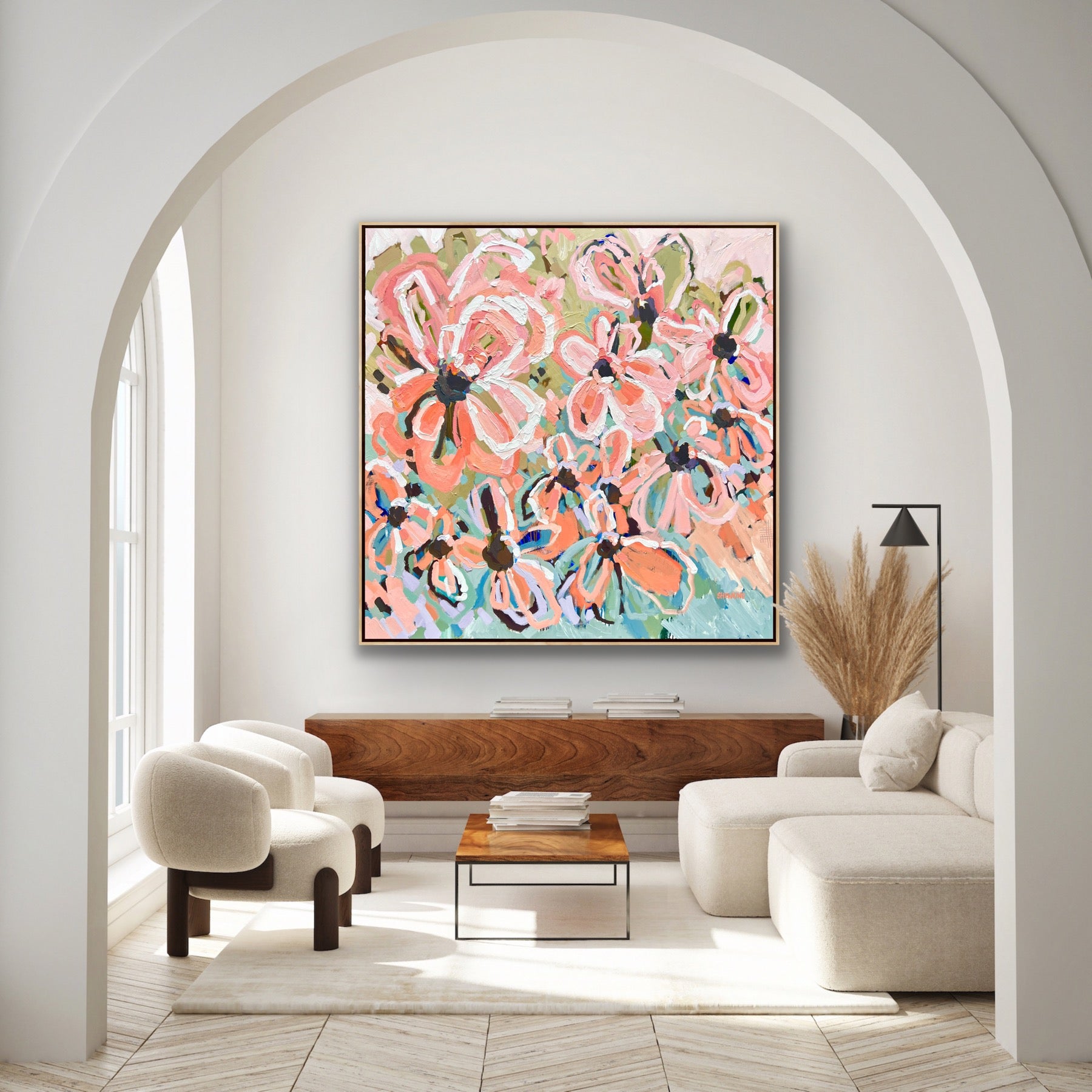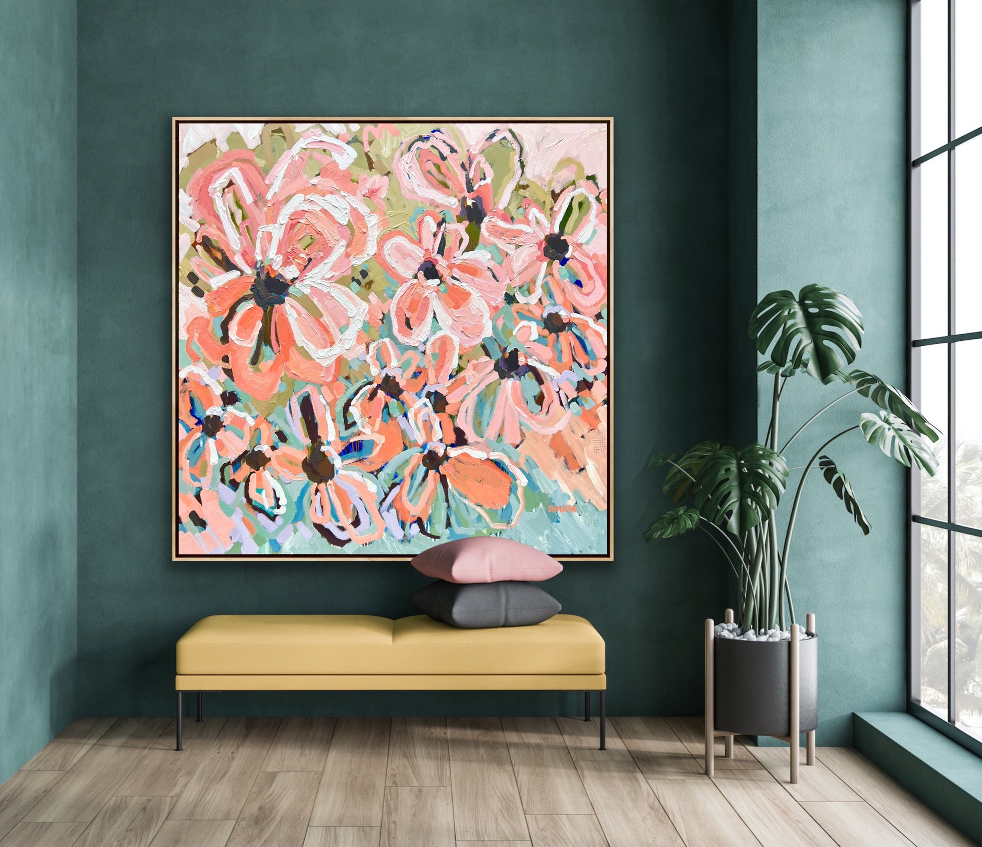 Endless Summer is a BIG happy and bright piece inspired by the beautiful colour of fresh flowers basking in the morning sunshine of my local gardens of Melbourne, Australia. The colours are so pretty and vibrant.