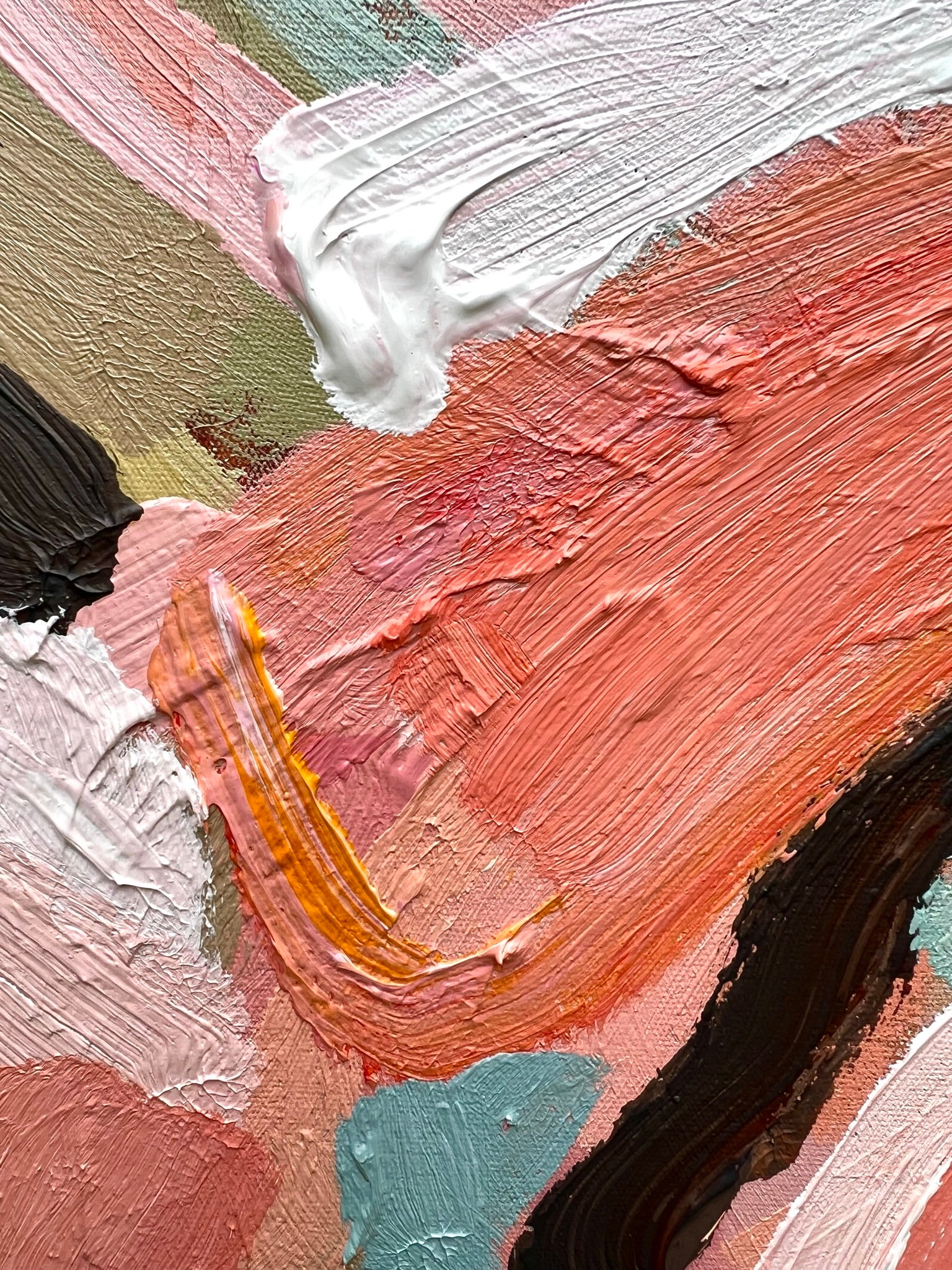 I am obsessed with colour and nature! Outside in the natural environment is where I spend my time sketching the organic forms that surround me. I take them back to my studio where I abstract the beauty and vibrancy of the experience into my paintings. What excites me is creating compositions using a luminous mix of rich colours and texture bringing the outdoors inside feeling happiness from connecting with nature.