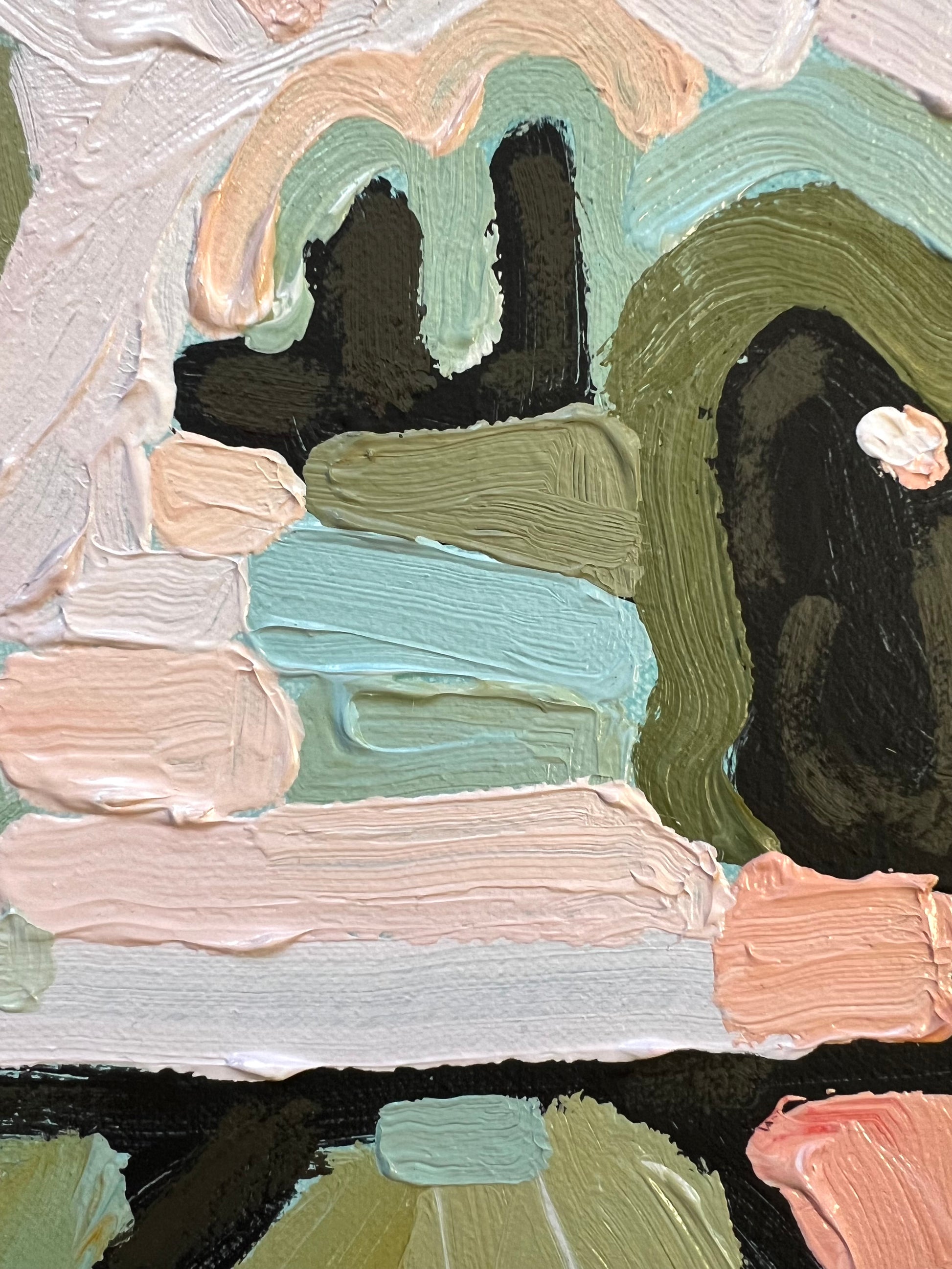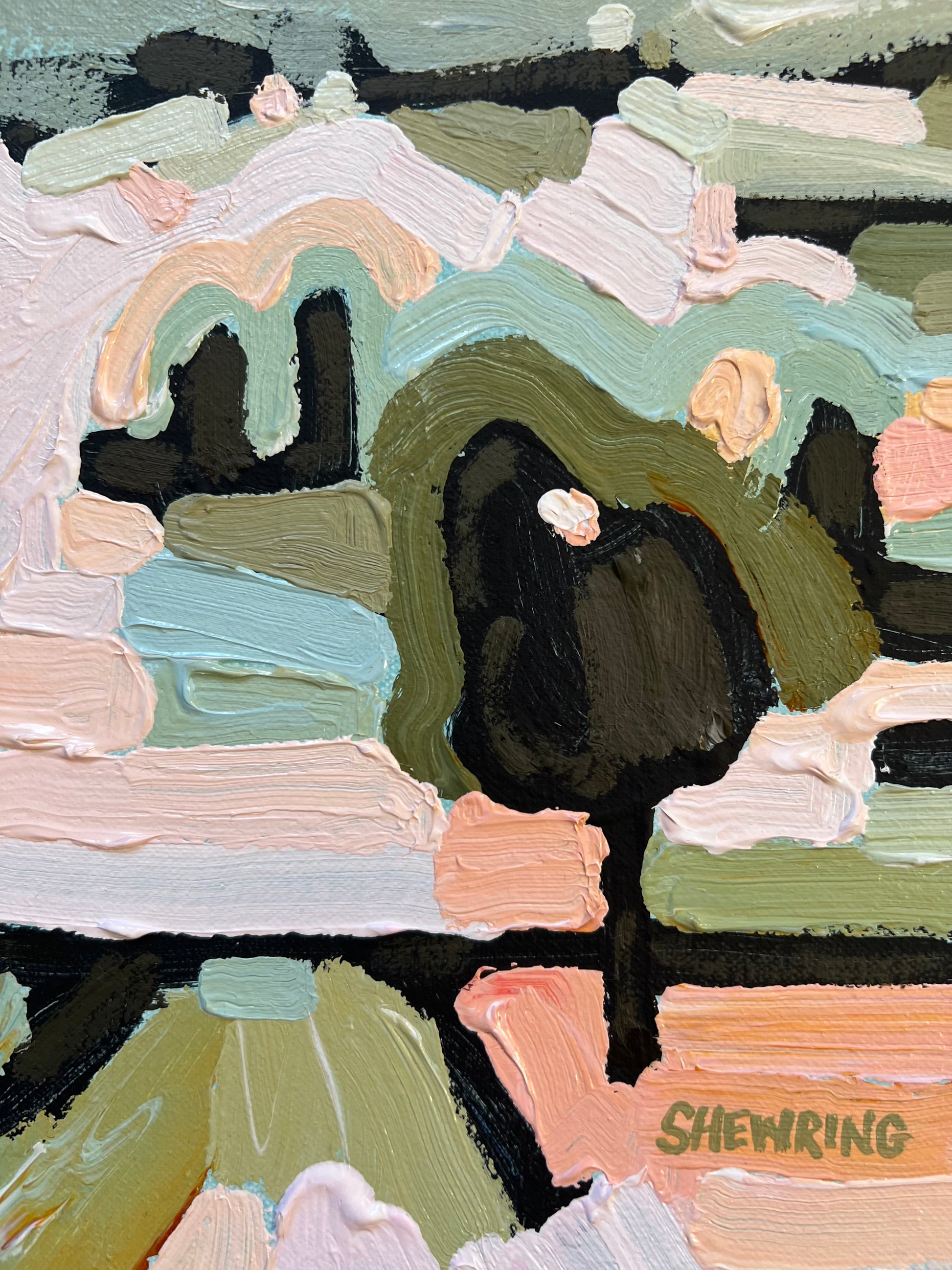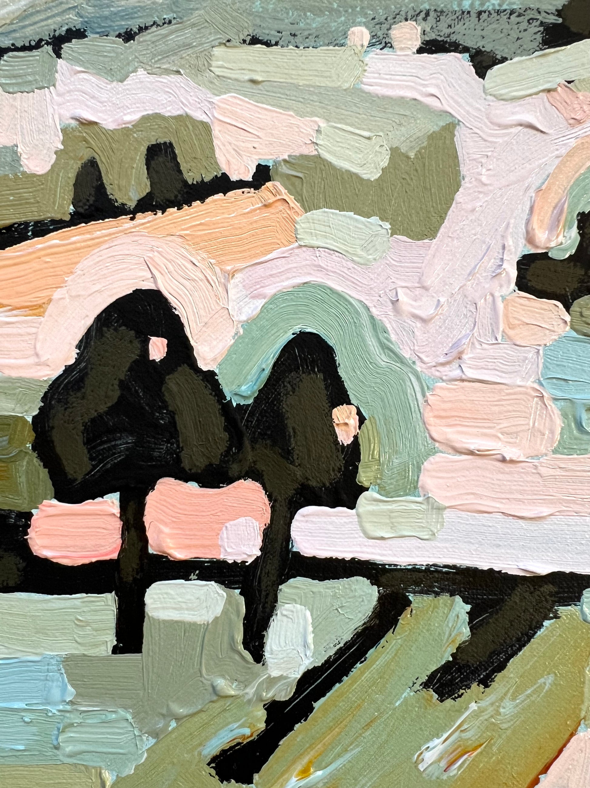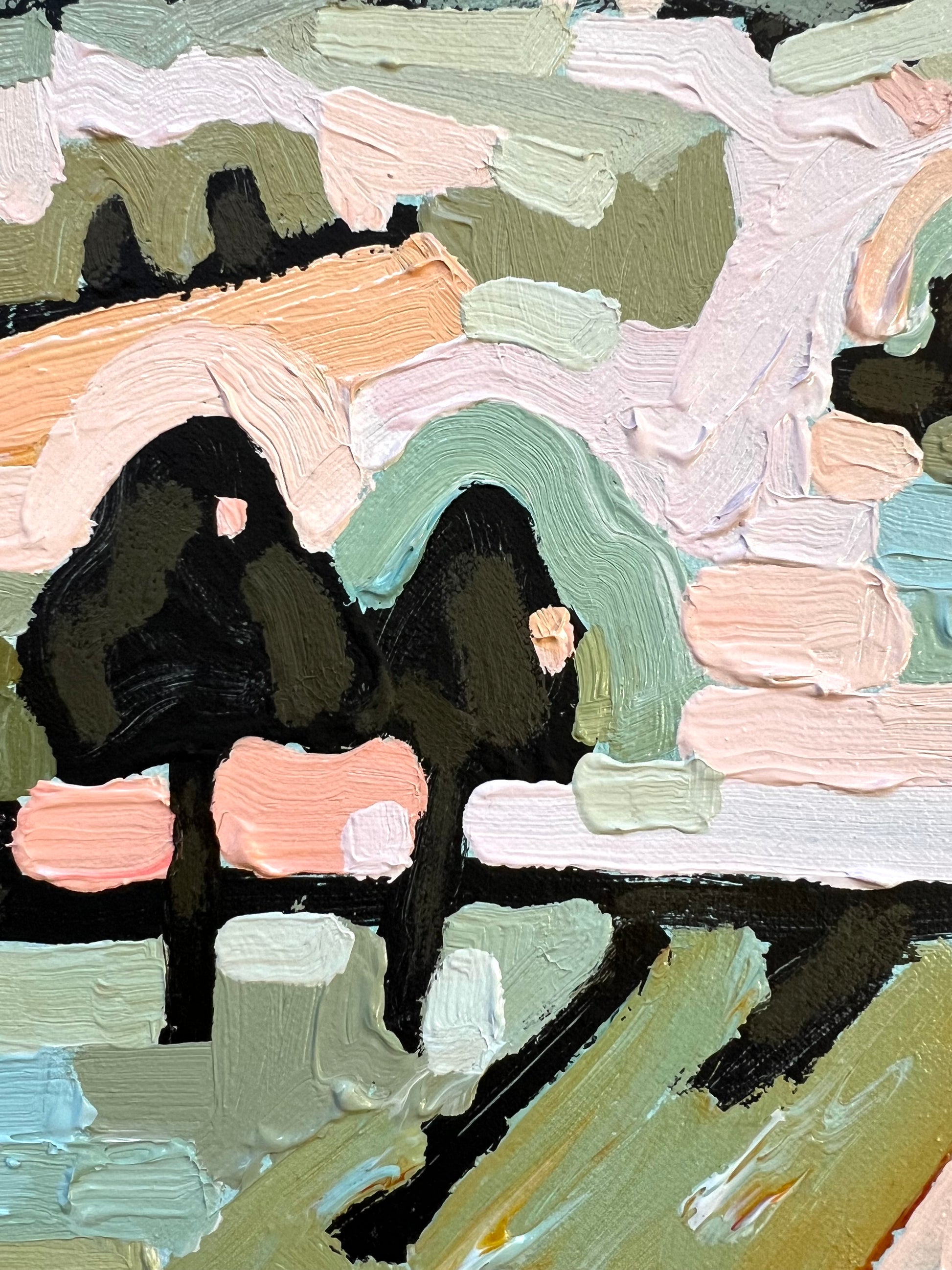 Capturing the warmth of the day and the peaceful feeling of immersing yourself into the countryside this artwork has been painted with expressive brushstrokes that bring it to life!