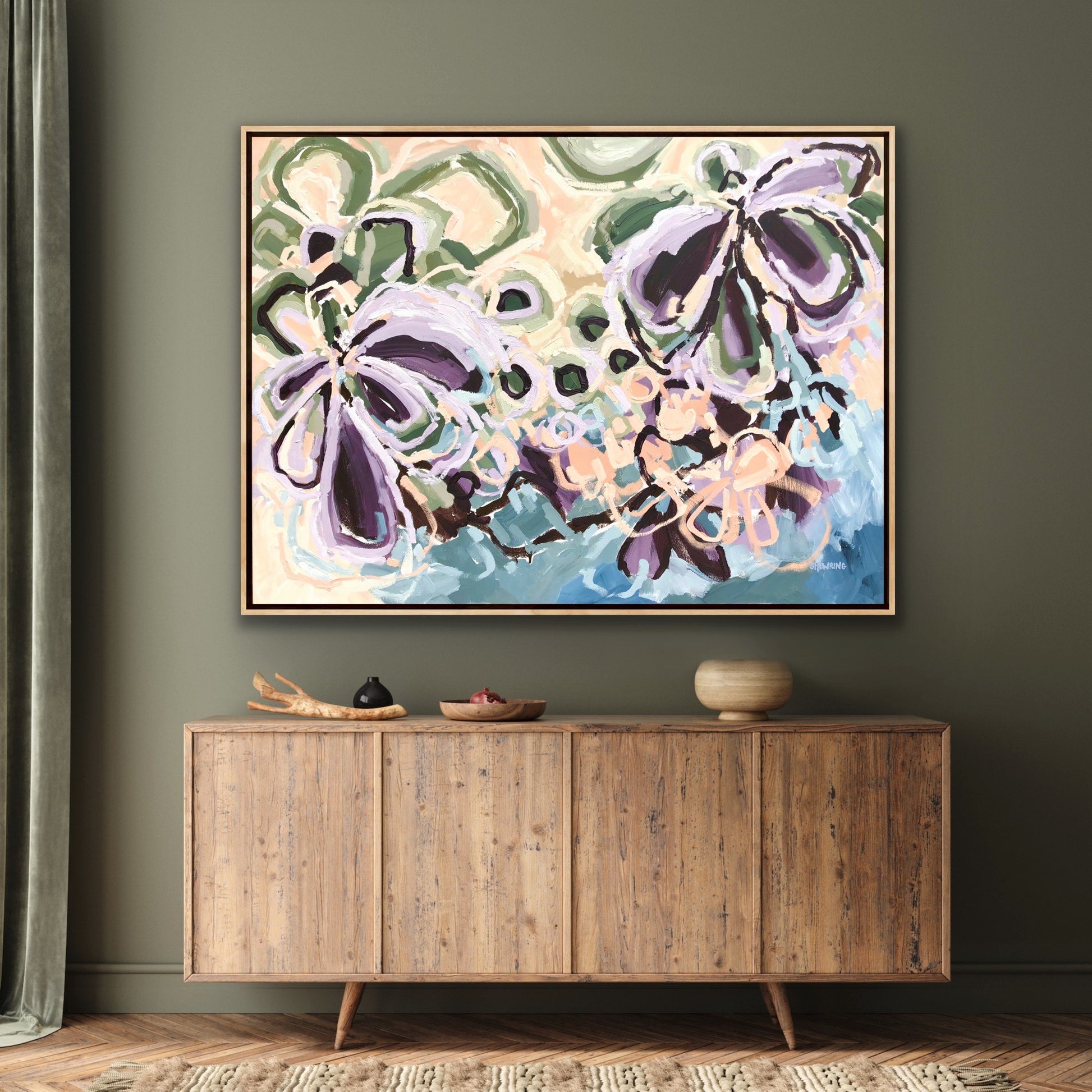 The abstracted flowers and foliage are painted in an expressive style with individual brushstrokes and textured surface to suit a range of different decors.