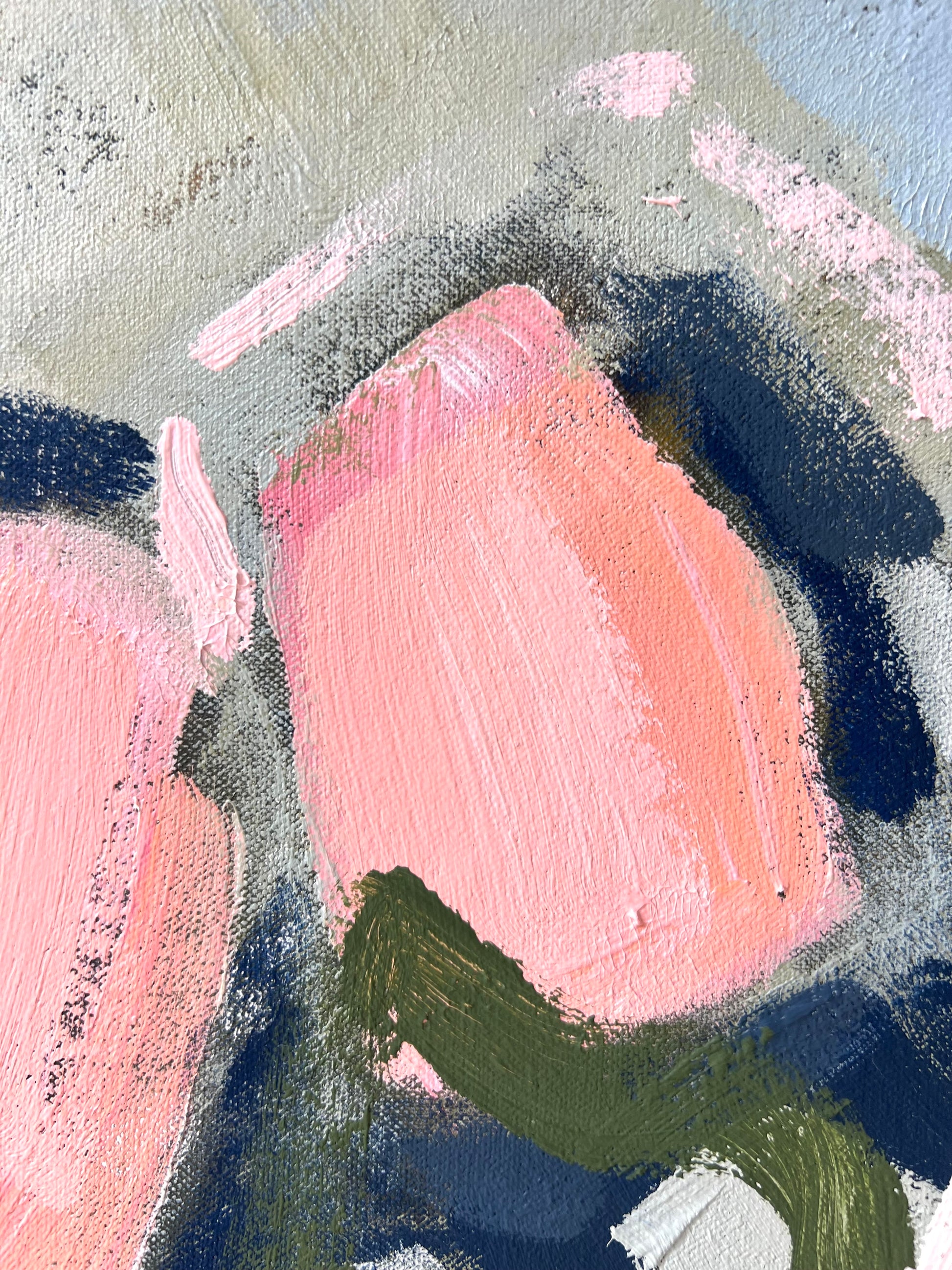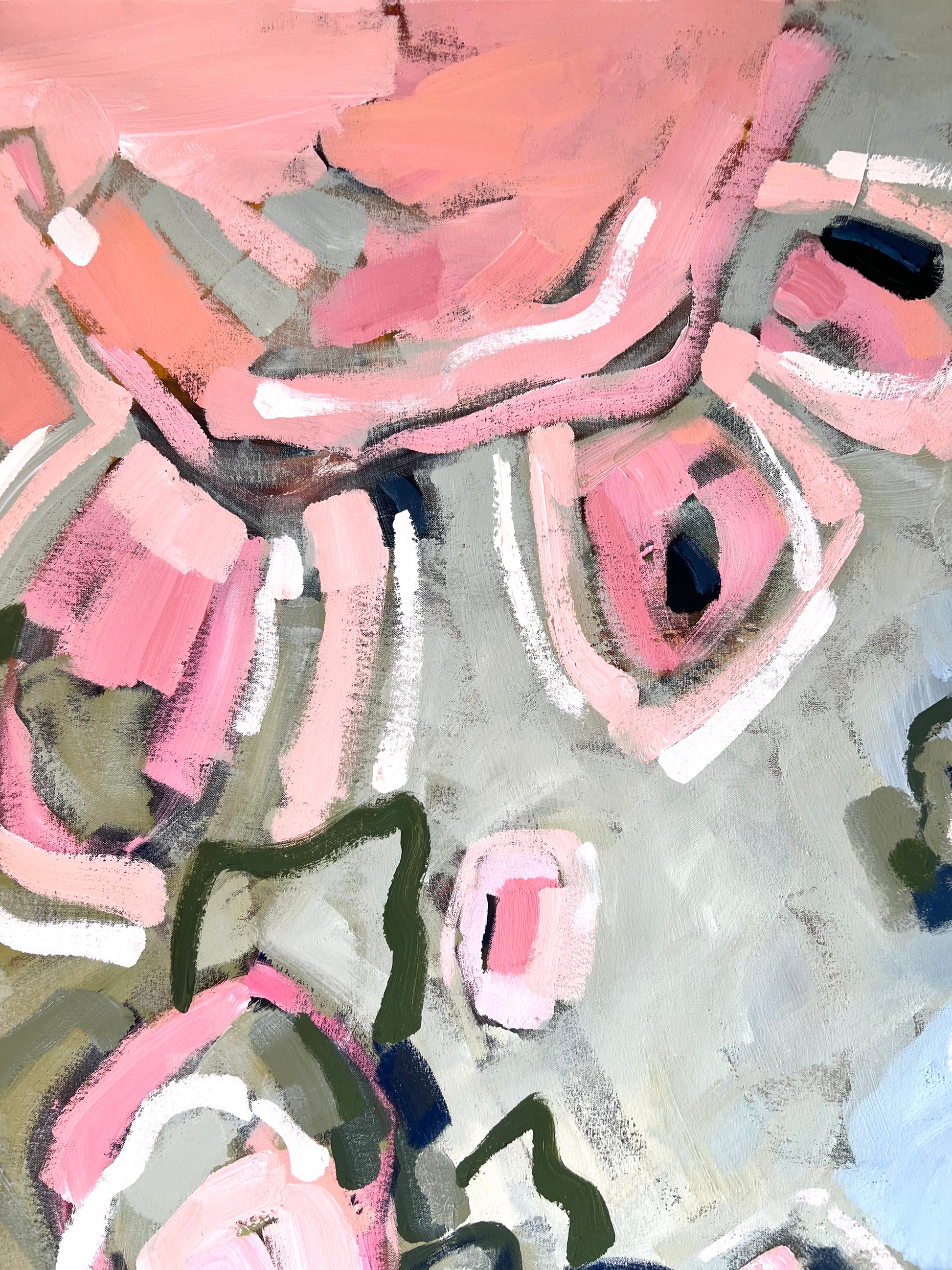 I am obsessed with colour and nature! Outside in the natural environment is where I spend my time sketching the organic forms that surround me. I take them back to my studio where I abstract the beauty and vibrancy of the experience into my paintings. What excites me is creating compositions using a luminous mix of rich colours and texture bringing the outdoors inside feeling happiness from connecting with nature.