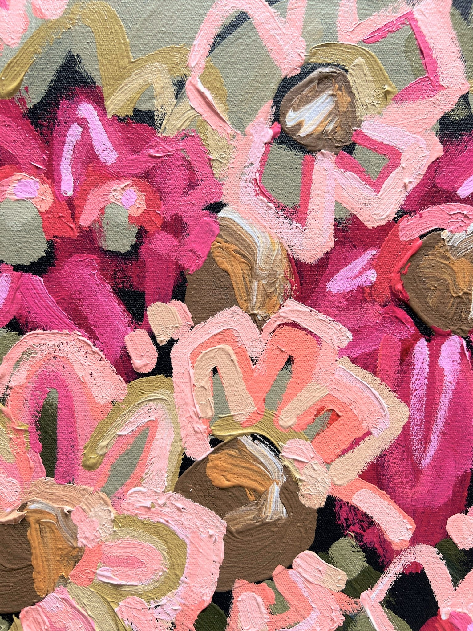 Everyday I Love You More is a happy and bright piece inspired by the beautiful colour of fresh flowers basking in the morning sunshine of my local gardens of Melbourne, Australia. The colours are so pretty and vibrant.