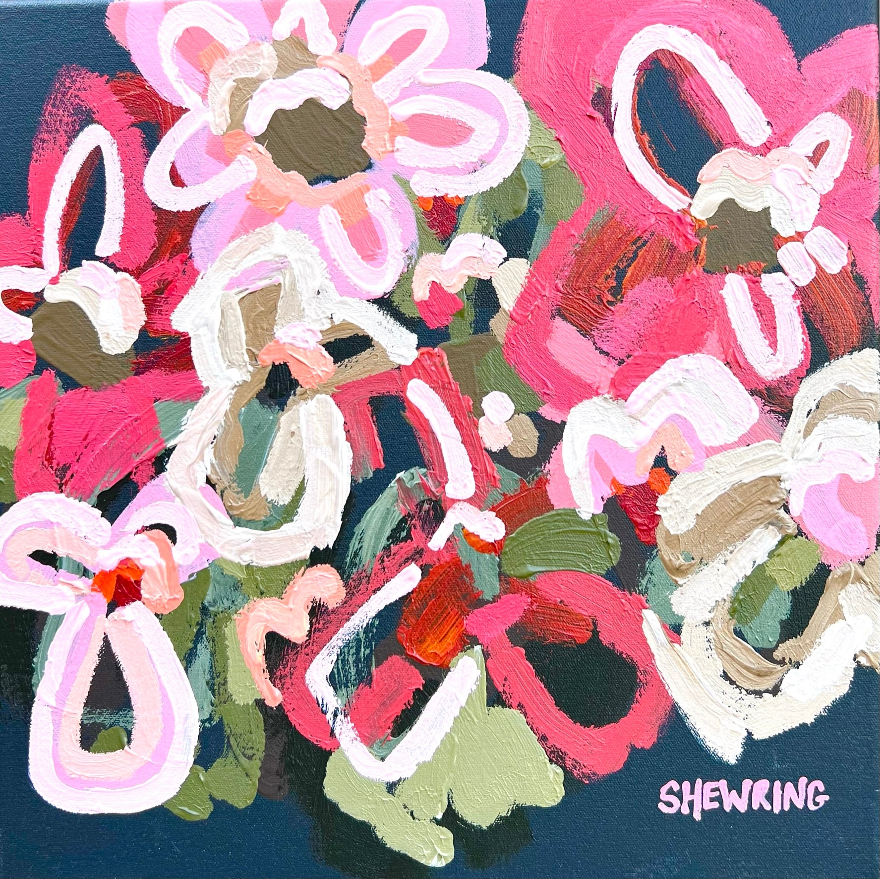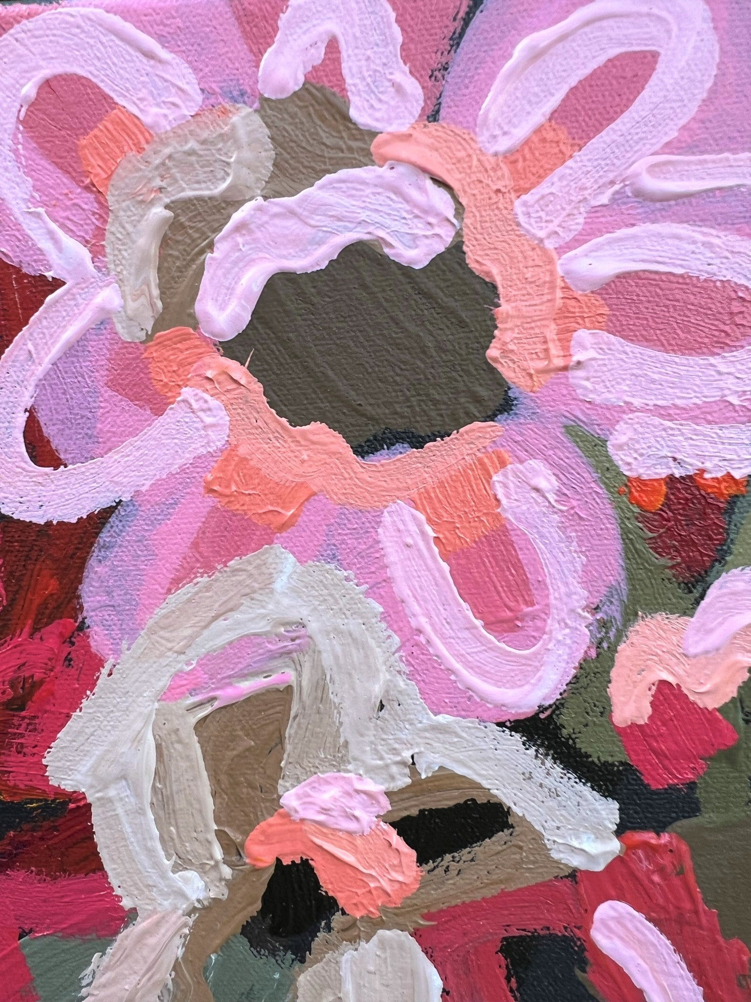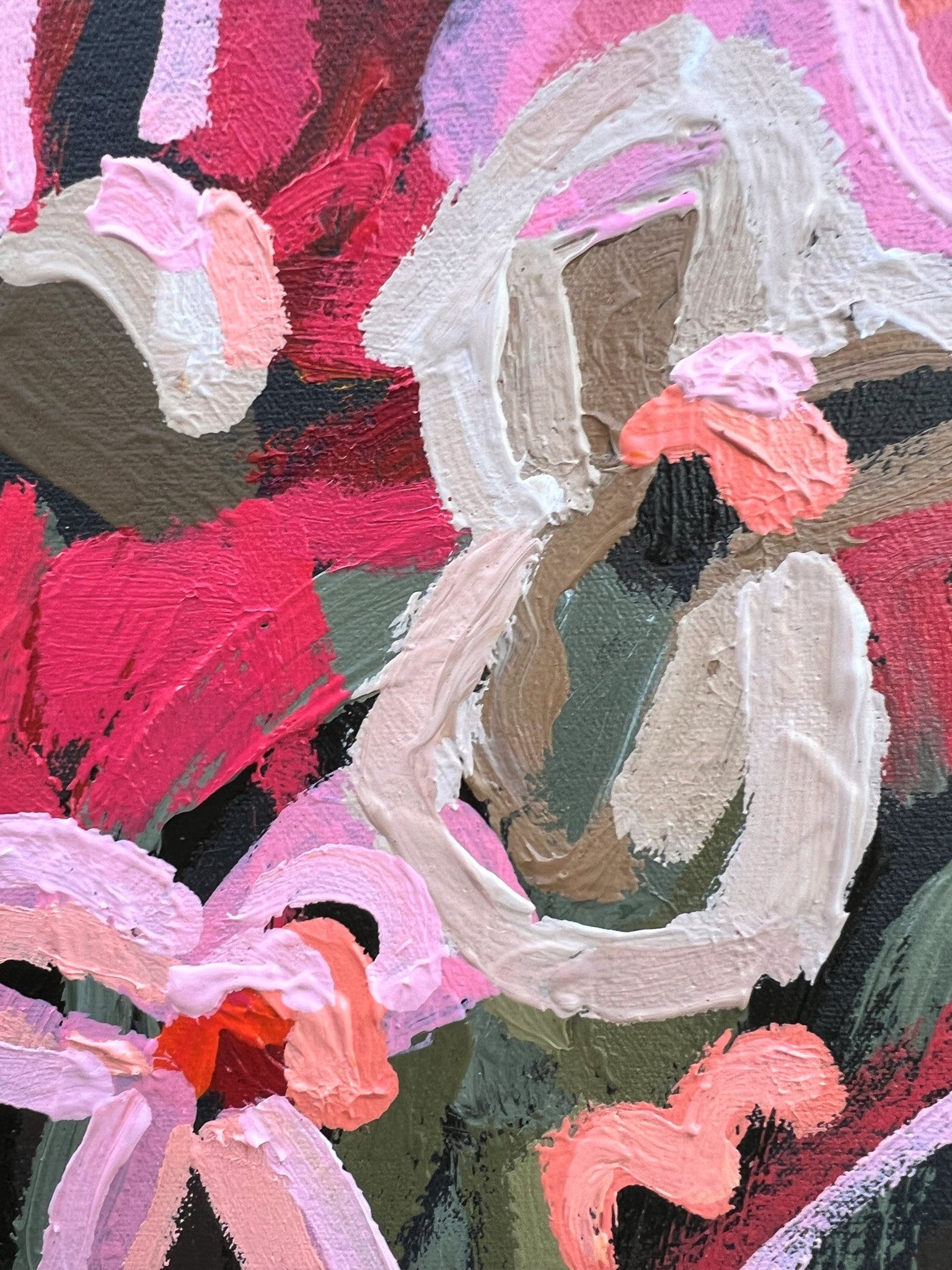 These flowers are painted with texture in an expressive style in vibrant pinks, delicious apricots, peaches, melons, sage and olive green and a touch of soft earthy tones that would suit a range of different decors