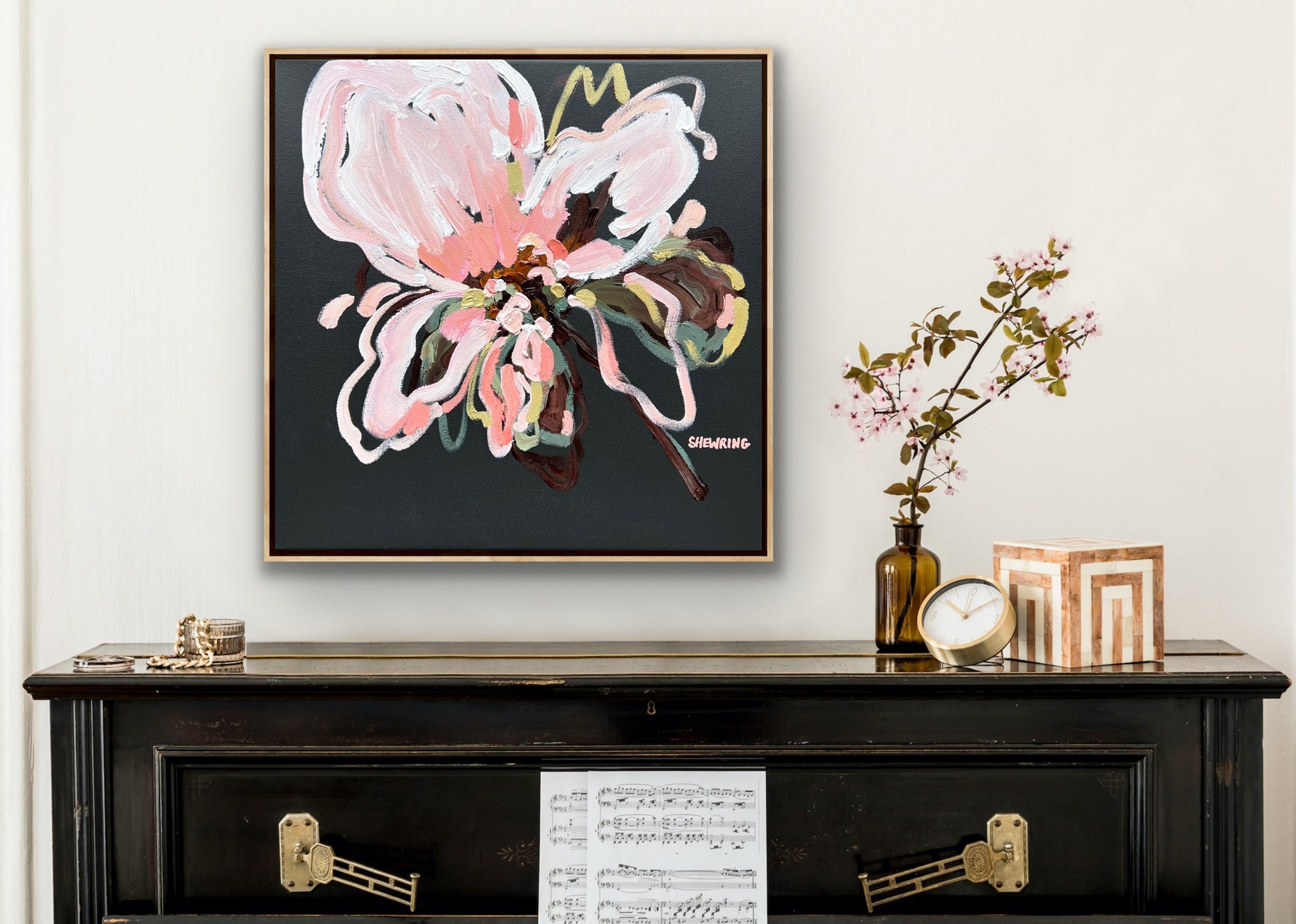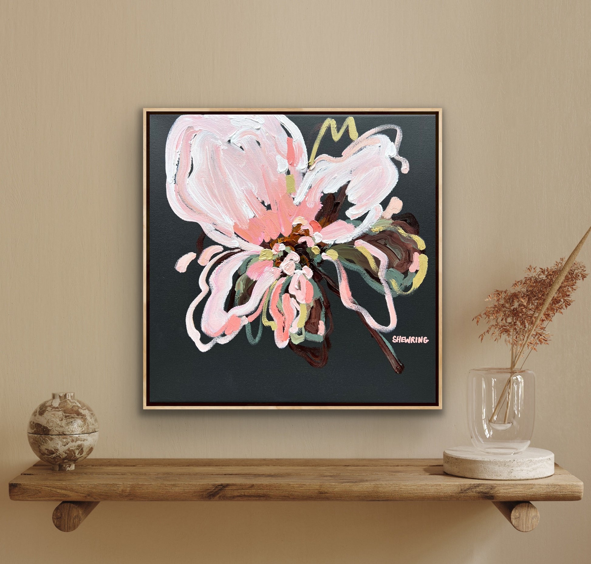 - Painted onto artist professional quality stretched canvas with a natural timber float frame and wire on the back so it is ready to hang.