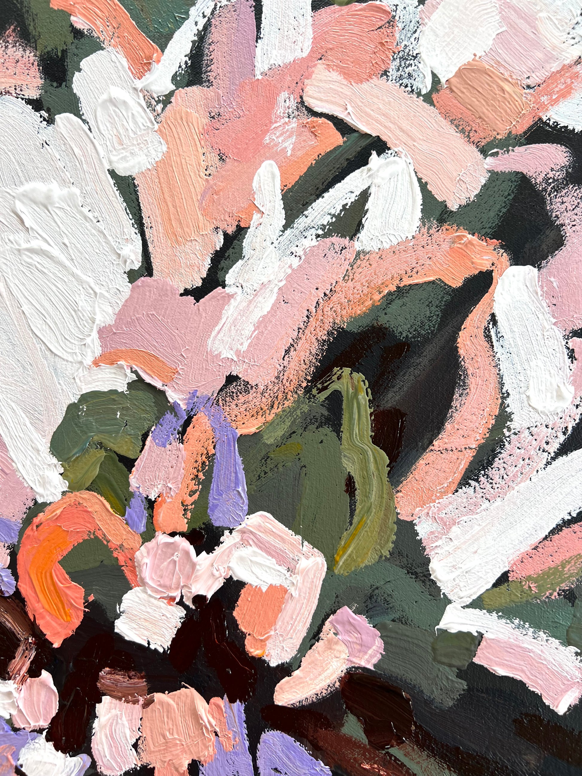Our Pure Promise is a beautifully textured flower abstract. This painting has expressive individual brushstrokes that bring it to life!