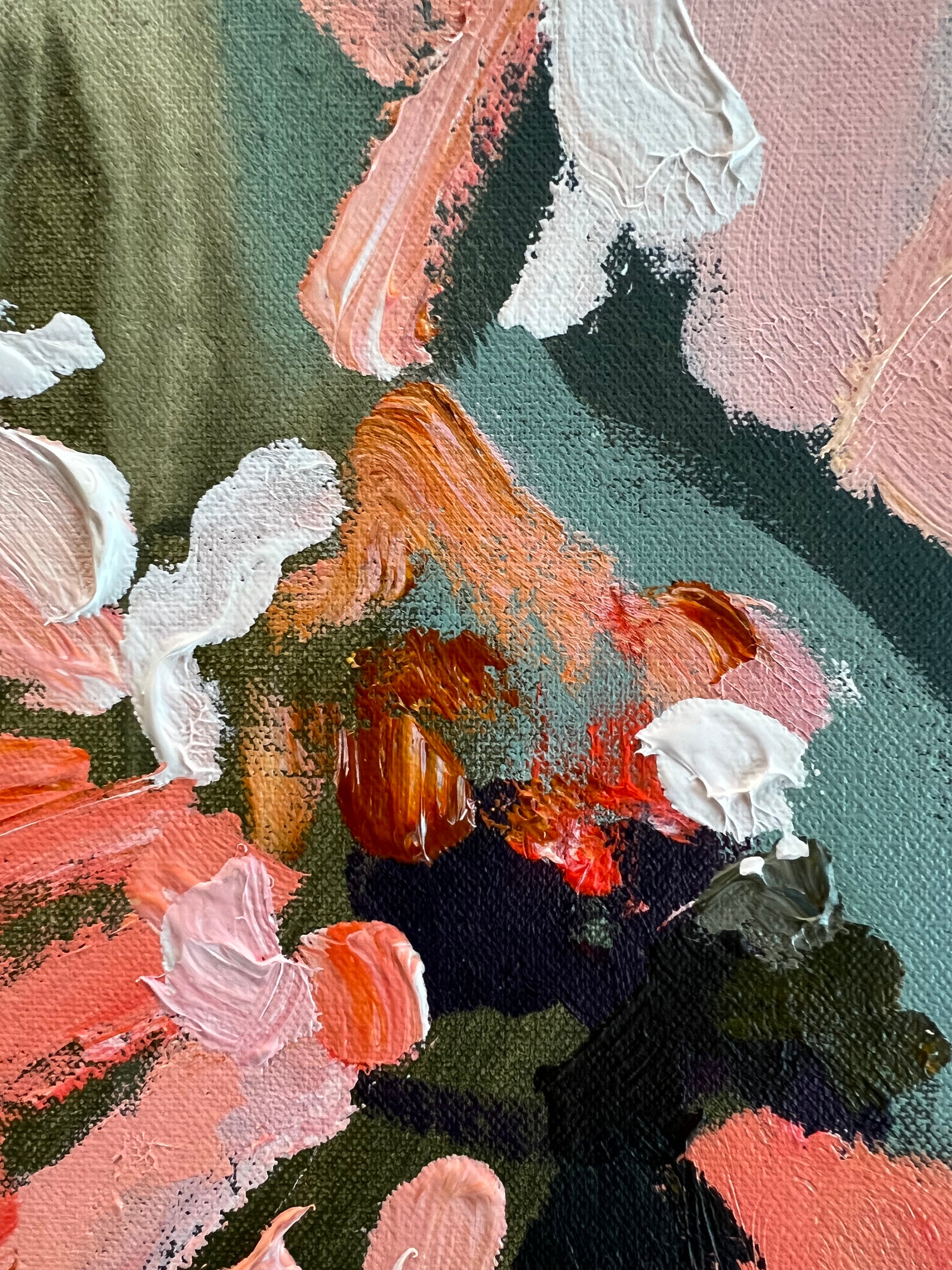 Flowers Of Love is a beautifully textured flower abstract. This painting has expressive individual brushstrokes that bring it to life!