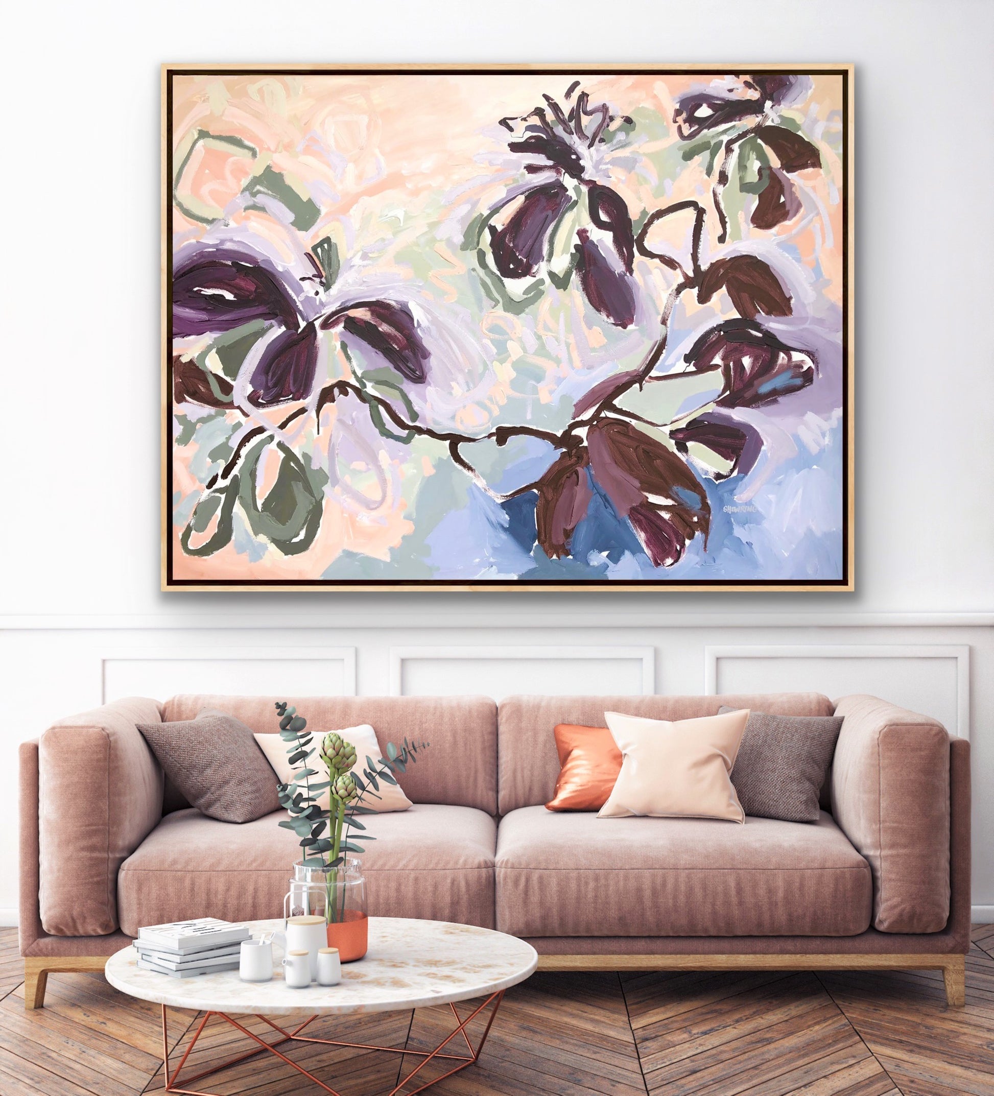 Jen produces stunning on trend paintings and has paintings in the corporate market and in private collections in Australia and overseas. Jen's work was chosen and displayed in 4 homes on the hit TV series 'THE BLOCK' and she was labelled as one of the top 10 Australian Artists To Watch by two major galleries. Her artwork was published in Grand Designs Magazine.
