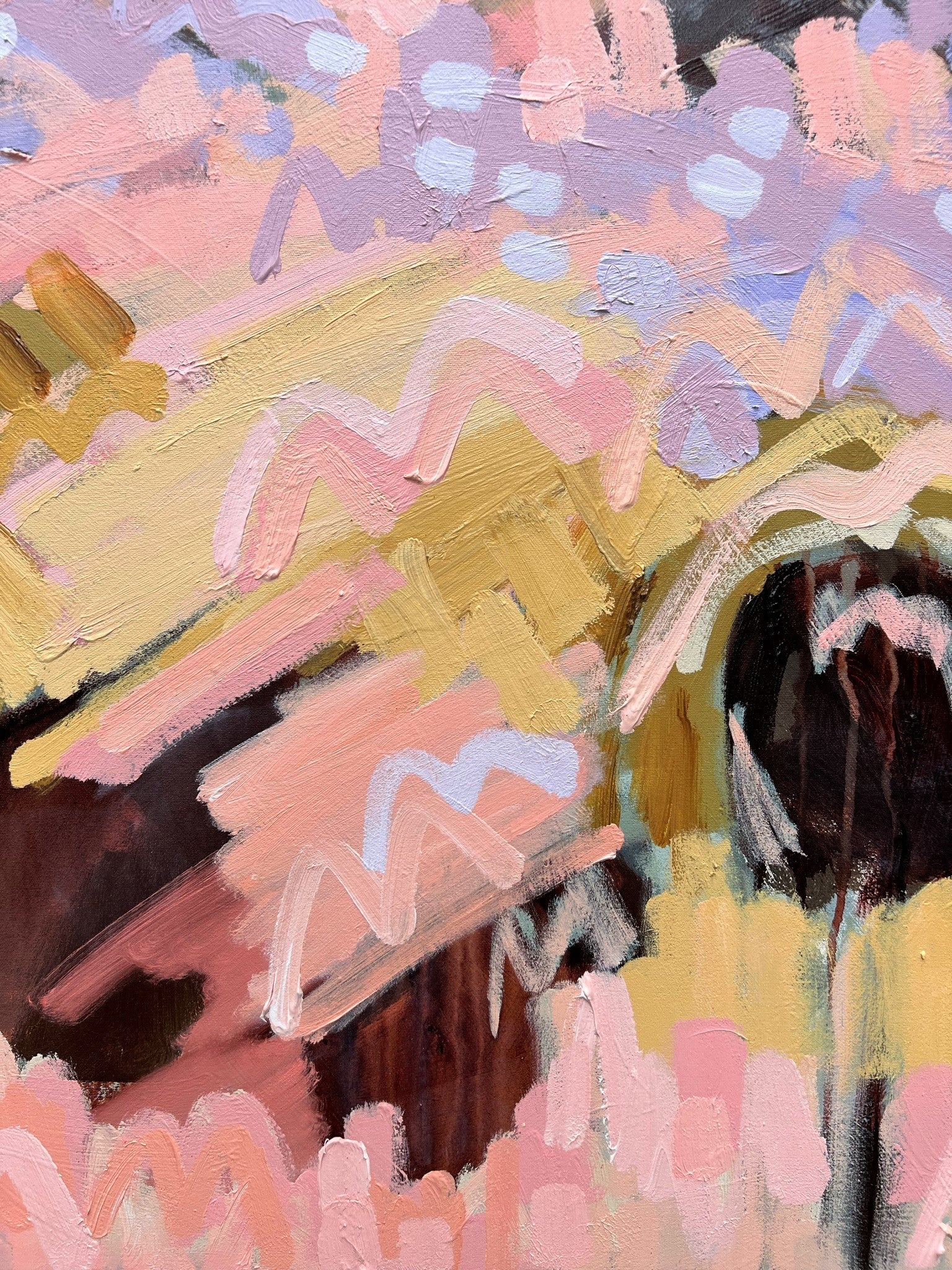 I am obsessed with colour and nature! Outside in the natural environment is where I spend my time sketching the organic forms that surround me. I take them back to my studio where I abstract the beauty and vibrancy of the experience into my paintings. What excites me is creating compositions using a luminous mix of rich colours and texture bringing the outdoors inside feeling happiness from connecting with nature.