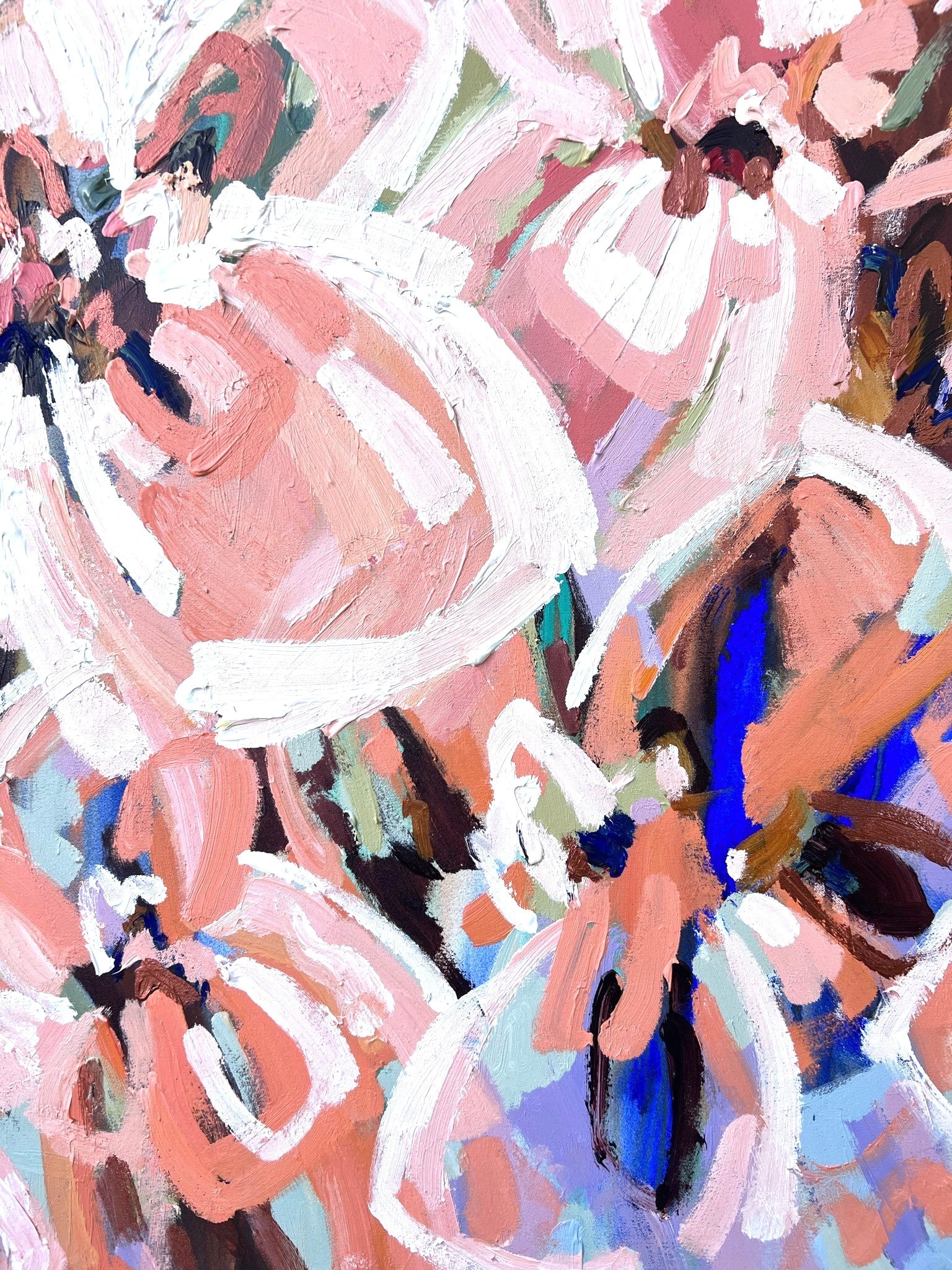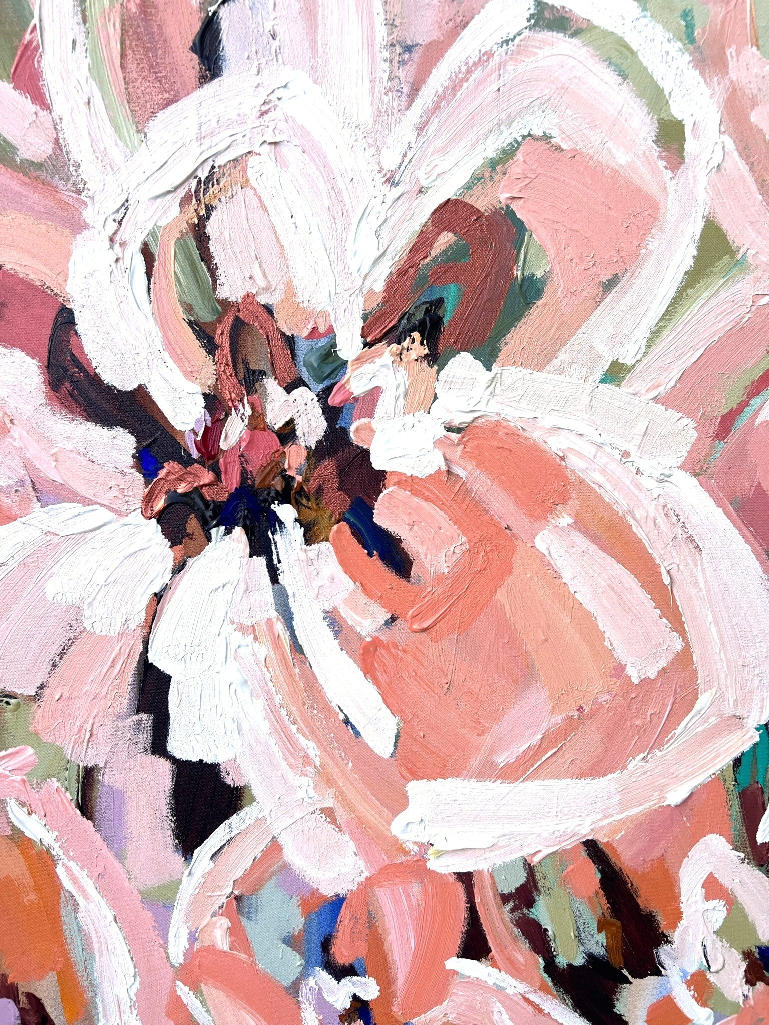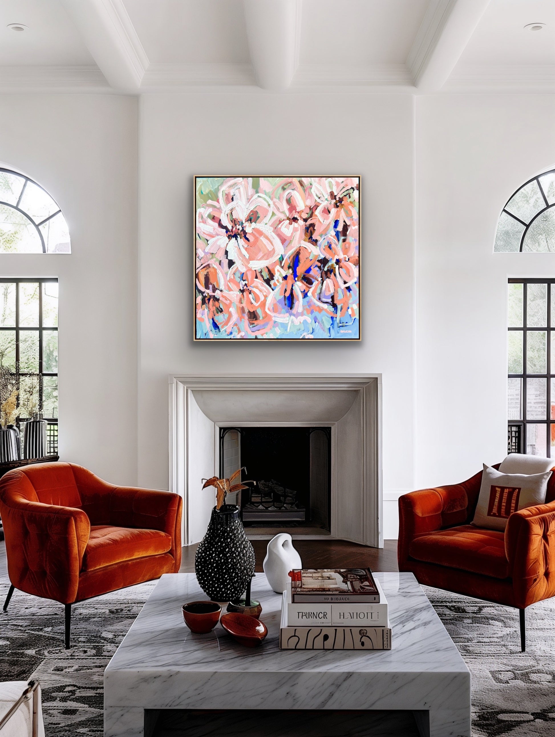 Forever Your Love is a bright and bold flower abstract with chunky paint texture inspired by the delicious summer colours of melons, strawberries and raspberries complimented with shades of gorgeous greens and blues and a touch of bronze. This painting has the passionate colours of love!