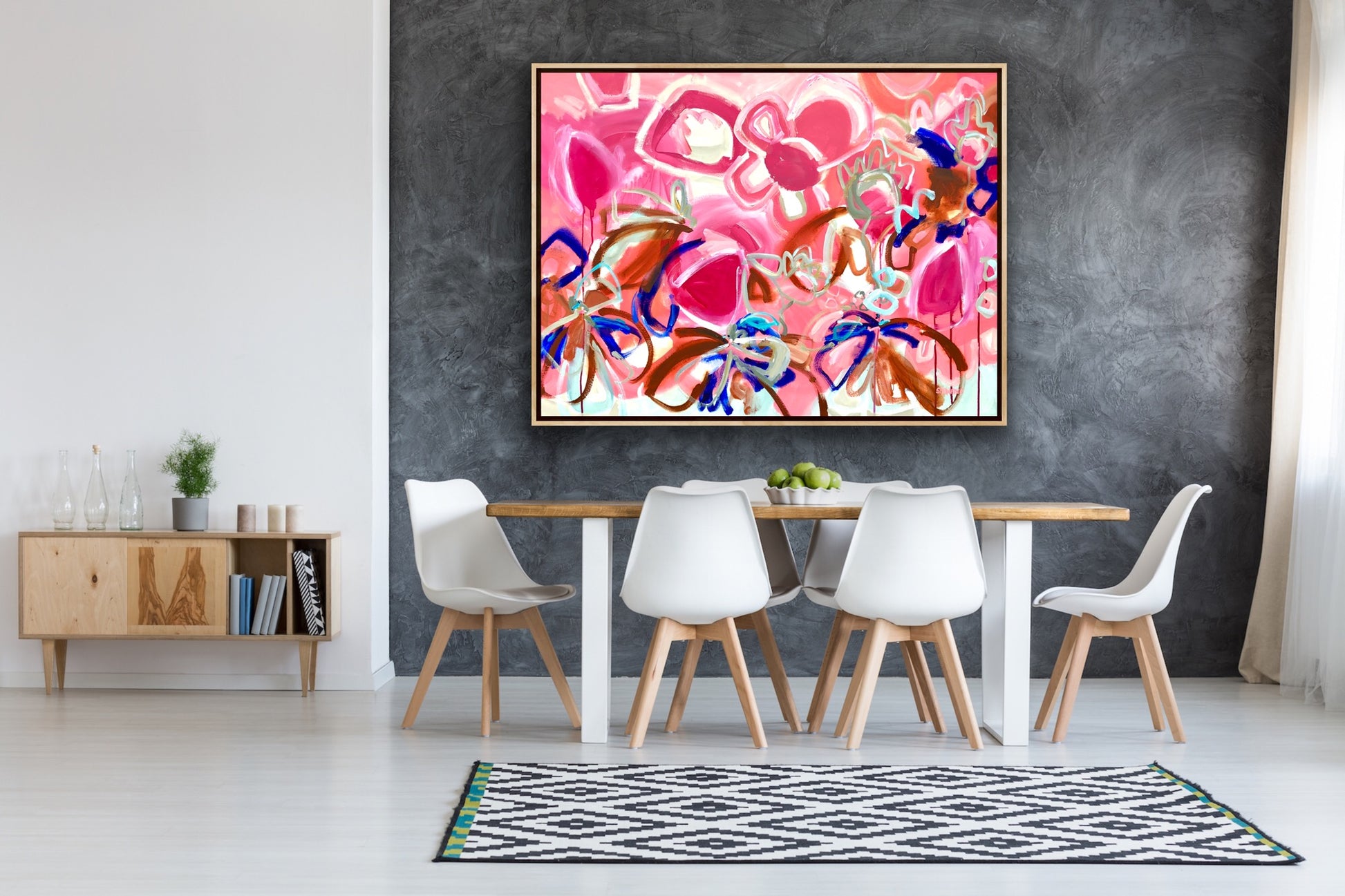 This colourful and dynamic artwork will definitely make a statement on your wall and bring a smile to your face every morning.