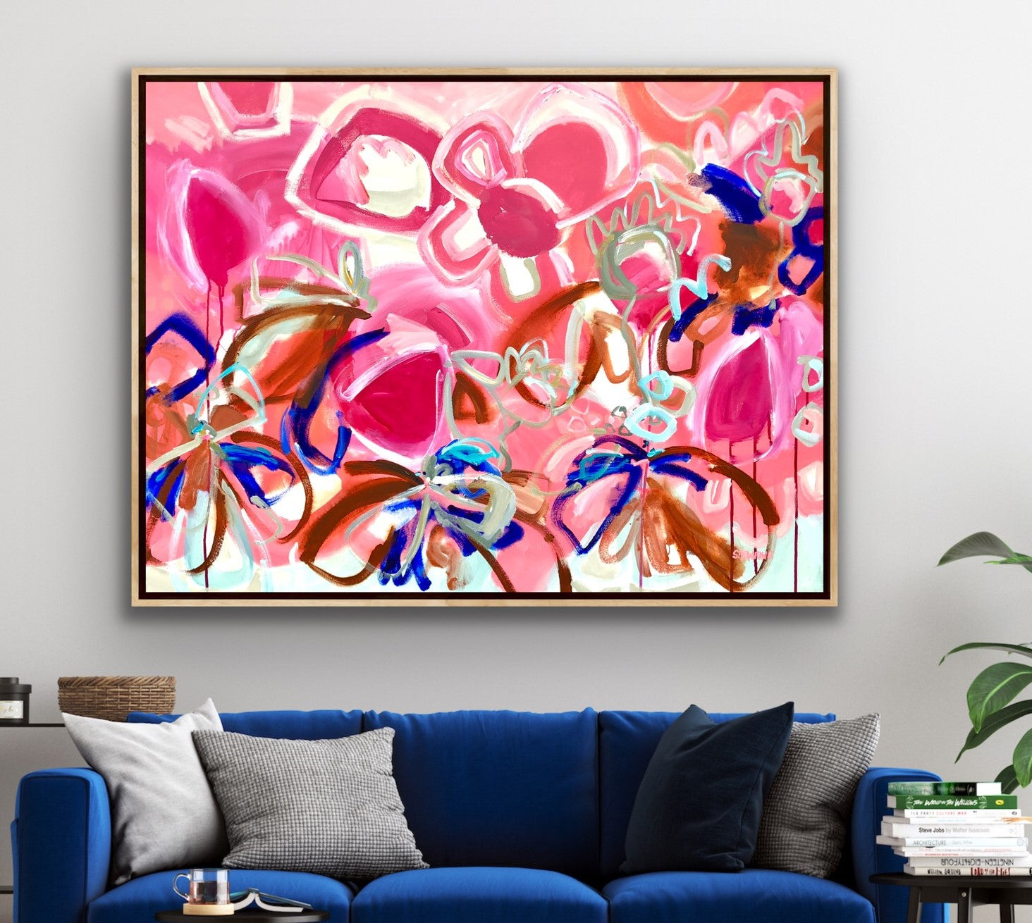 - The painted image continues around the edges of the canvas so looks great from all sides. If you prefer a frame, it would also look great framed in an oak timber, stained timber or white floating frame as shown in the photo.