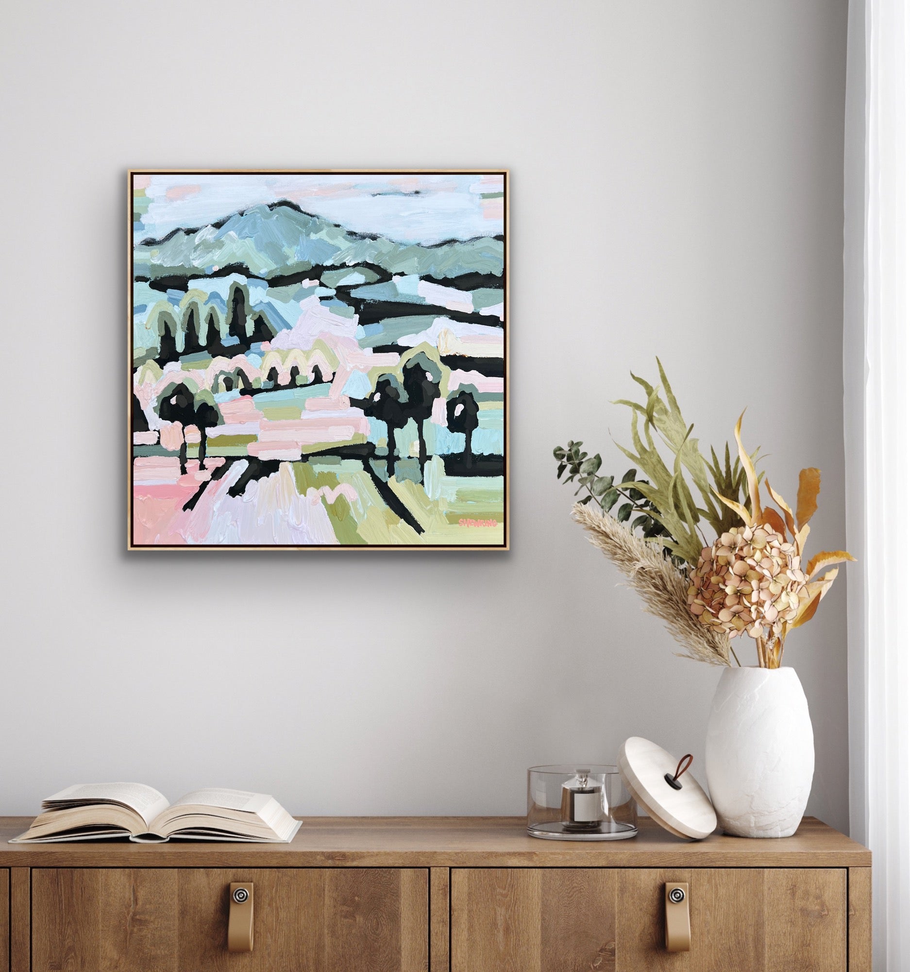 Capturing the warmth of the day and the peaceful feeling of immersing yourself into the countryside this artwork has been painted with expressive brushstrokes that bring it to life!