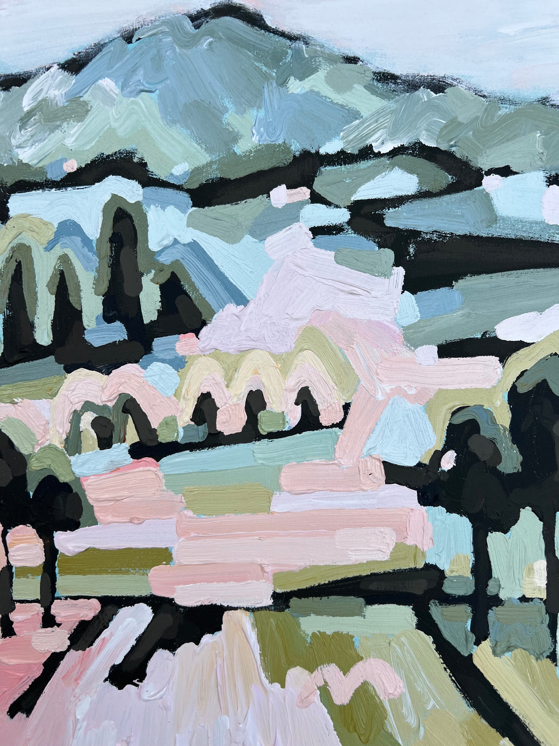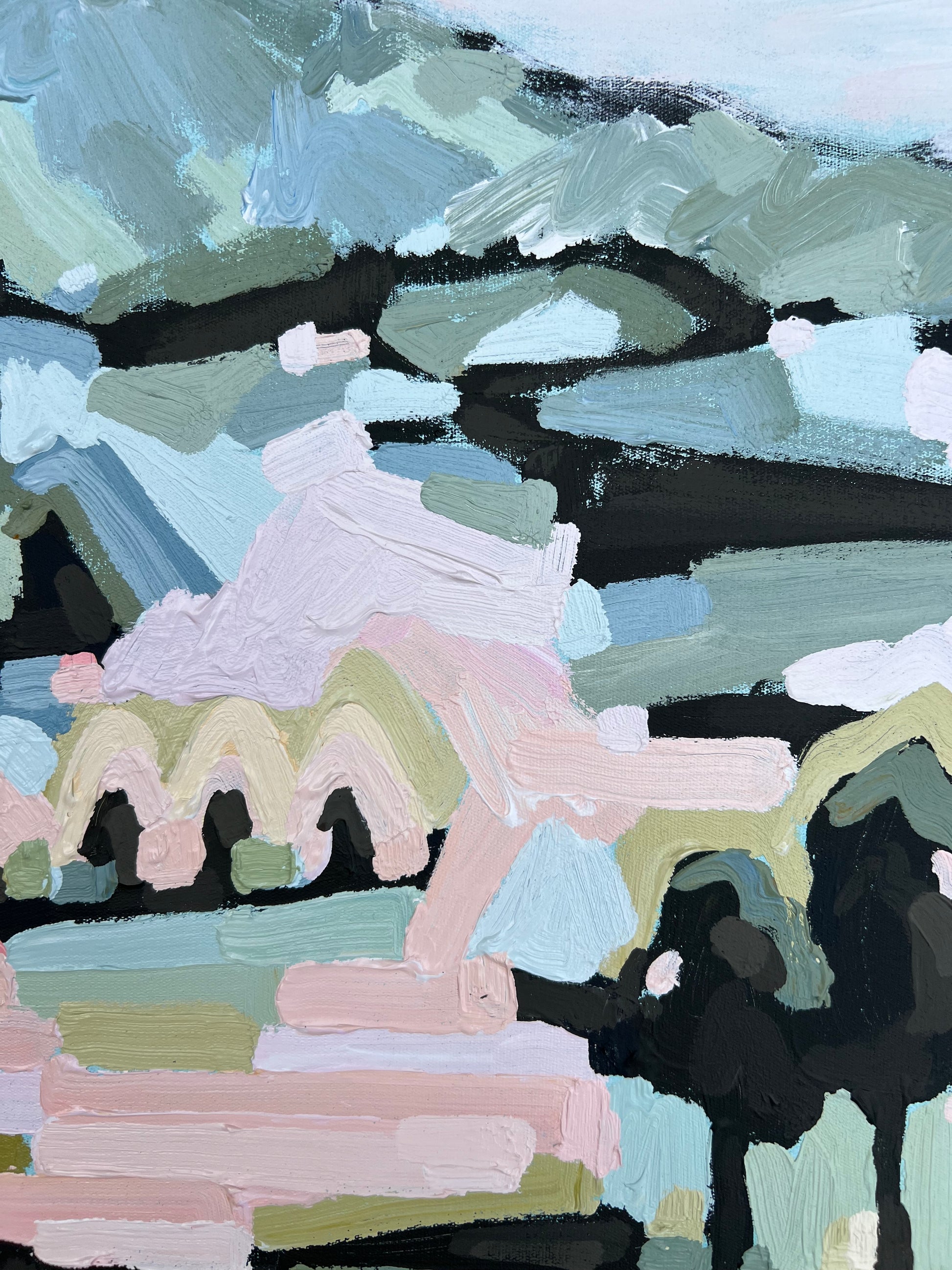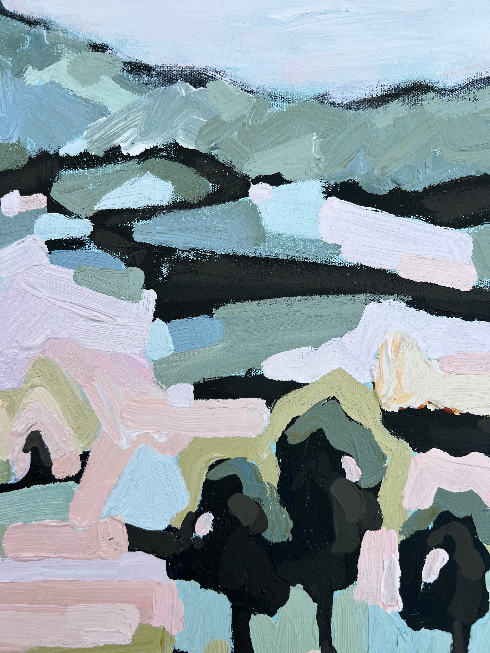 I am obsessed with colour and nature! Outside in the natural environment is where I spend my time sketching the organic forms that surround me. I take them back to my studio where I abstract the beauty and vibrancy of the experience into my paintings. What excites me is creating compositions using a luminous mix of rich colours and texture bringing the outdoors inside feeling happiness from connecting with nature.