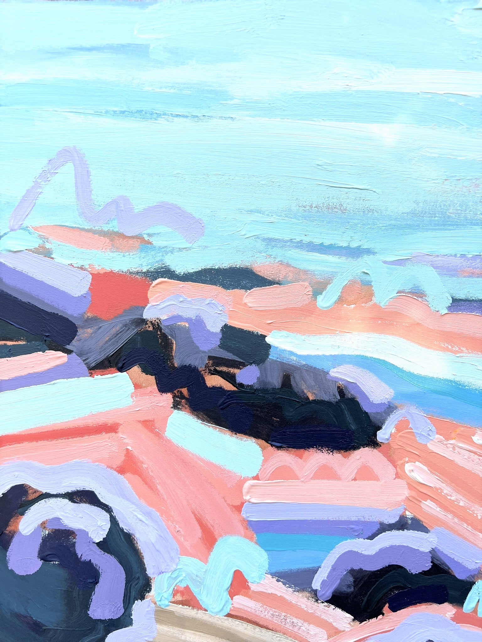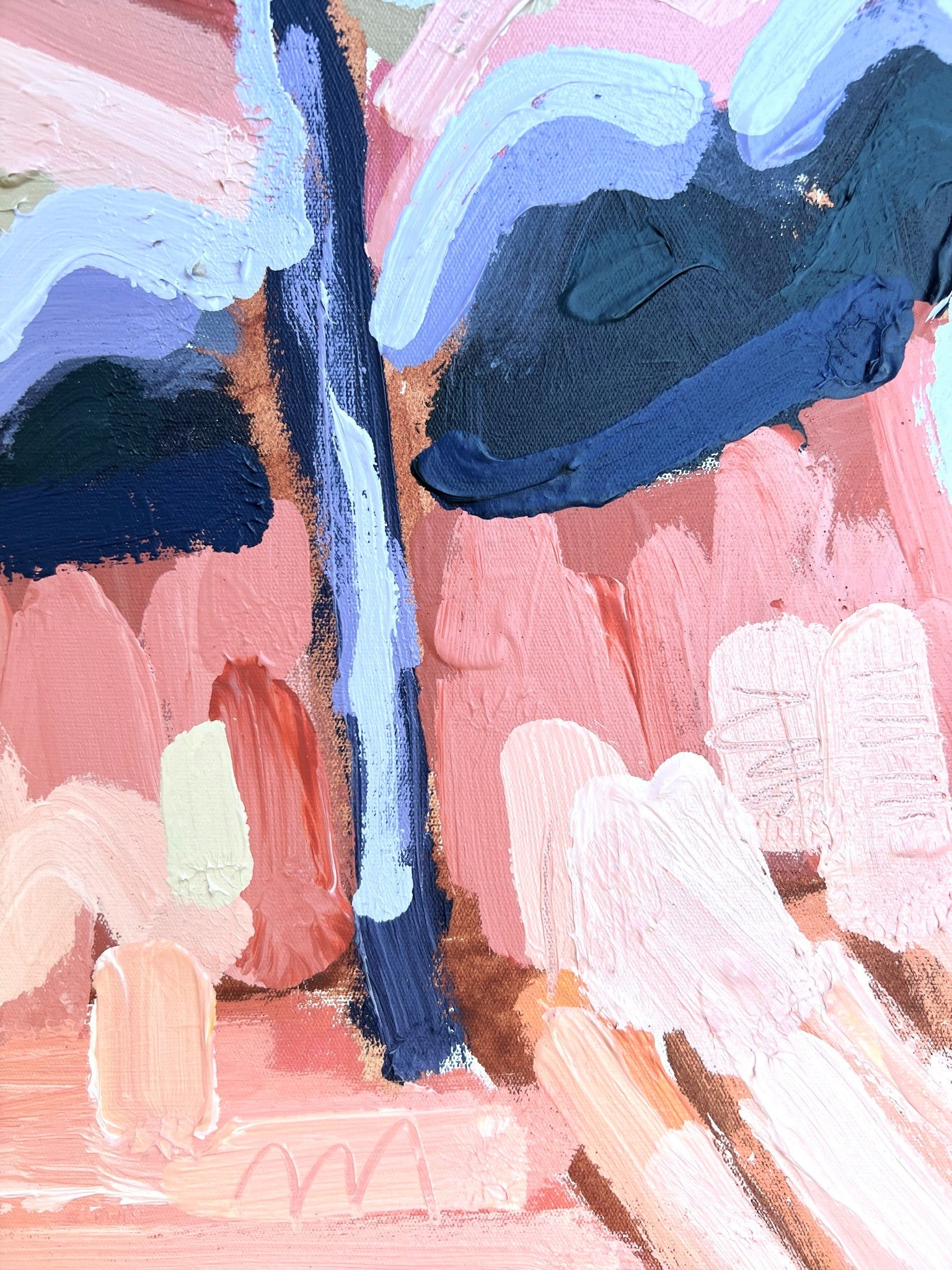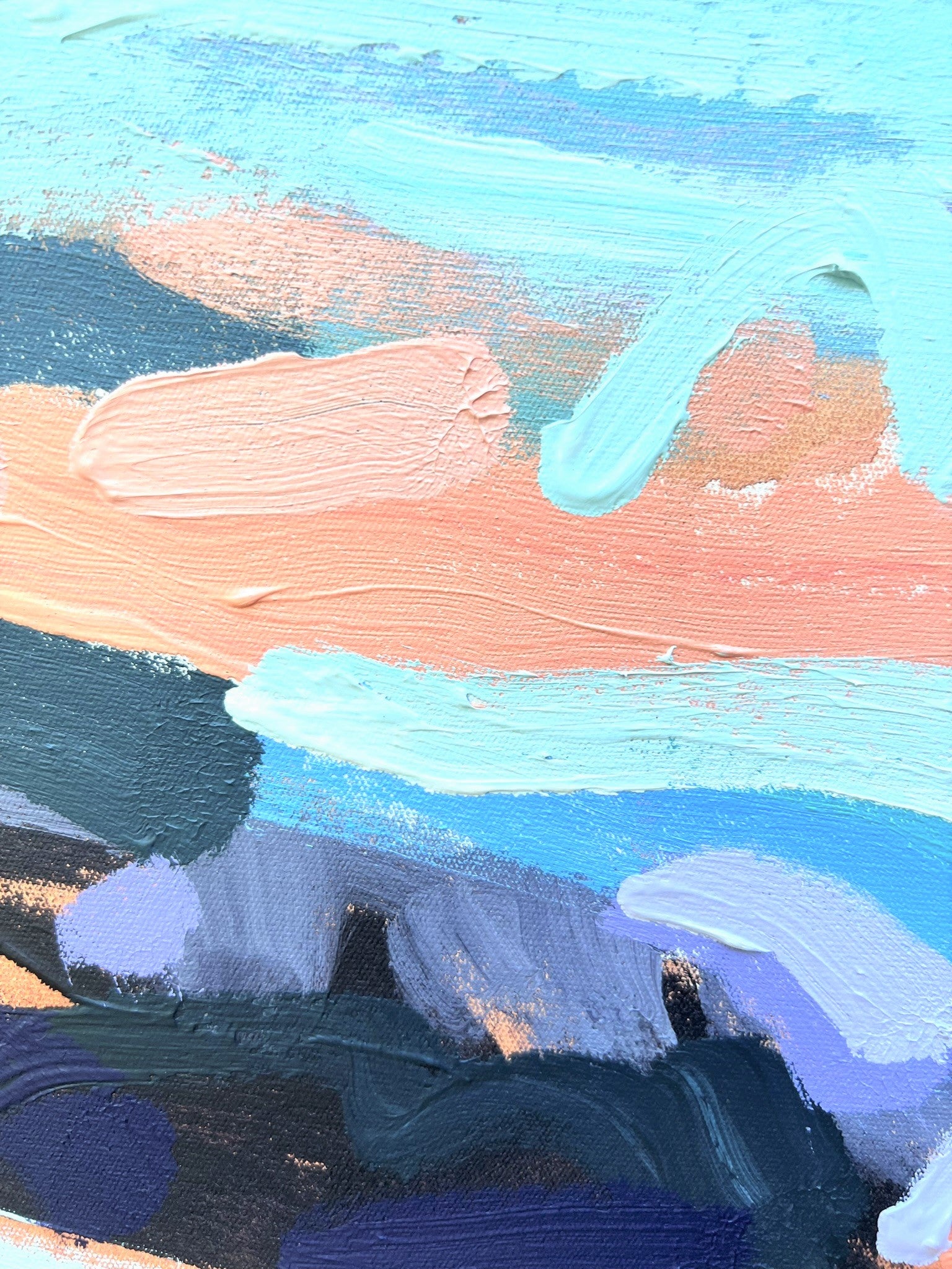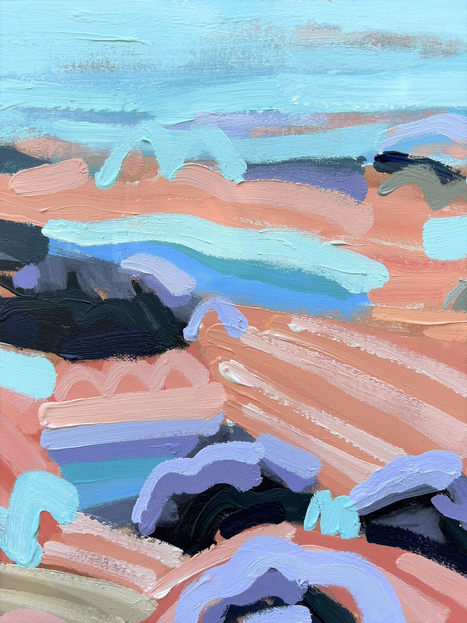 I am obsessed with colour and nature! Outside in the natural environment is where I spend my time sketching the organic forms that surround me. I take them back to my studio where I abstract the beauty and vibrancy of the experience into my paintings. What excites me is creating compositions using a luminous mix of rich colours and texture bringing the outdoors inside feeling happiness from connecting with nature.