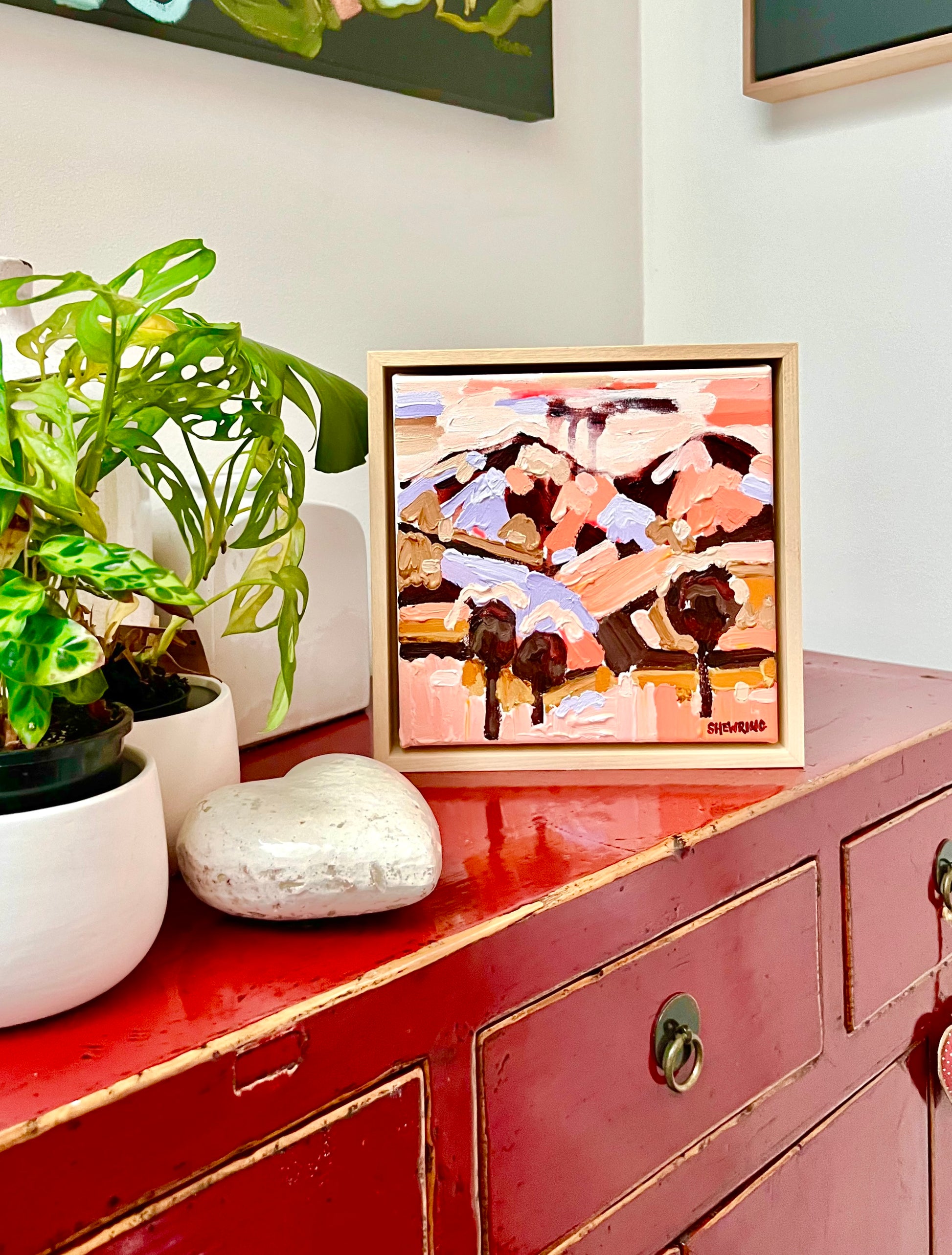 I am obsessed with colour and nature! Outside in the natural environment is where I spend my time sketching the organic forms that surround me. I take them back to my studio where I abstract the beauty and vibrancy of the experience into my paintings. What excites me is creating compositions using a luminous mix of rich colours and texture bringing the outdoors inside feeling happiness from connecting with nature.