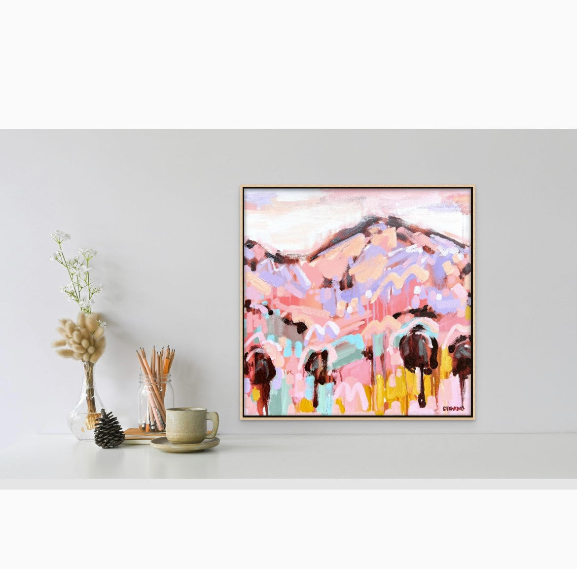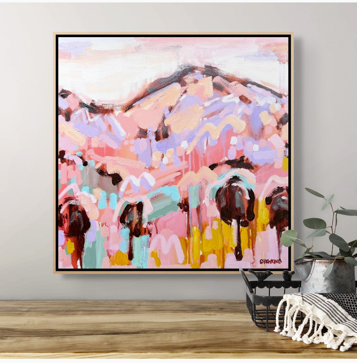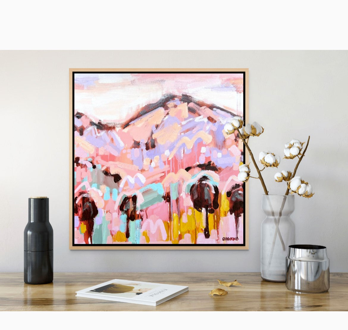 I am obsessed with colour and nature! Outside in the natural environment is where I spend my time sketching the organic forms that surround me. I take them back to my studio where I abstract the beauty and vibrancy of the experience into my paintings. What excites me is creating compositions using a luminous mix of rich colours and texture bringing the outdoors inside feeling happiness from connecting with nature.